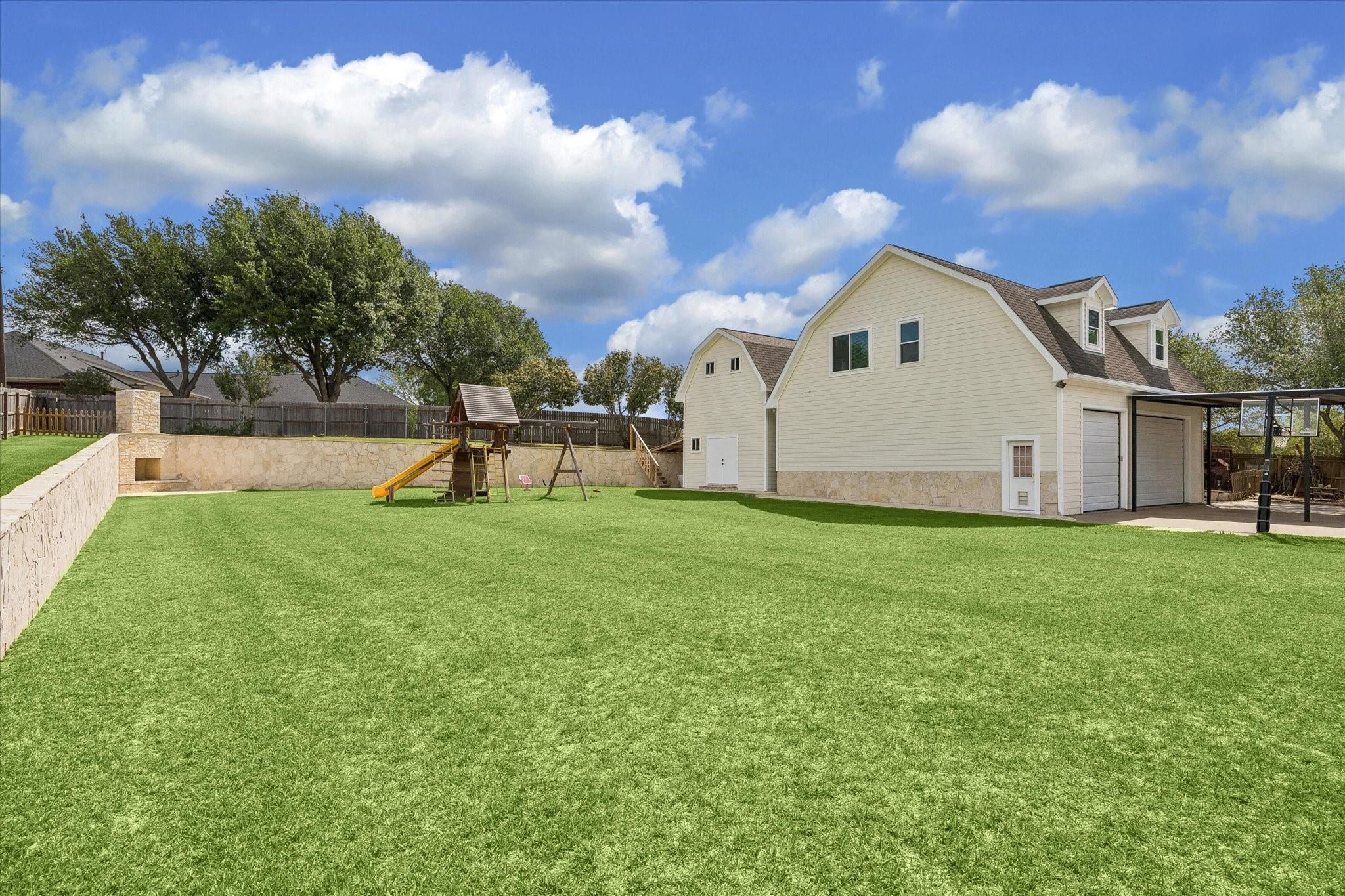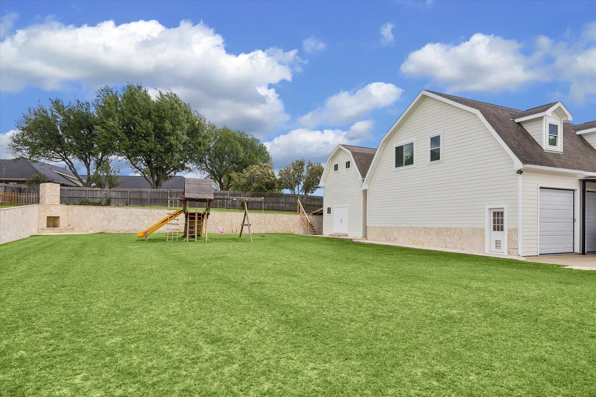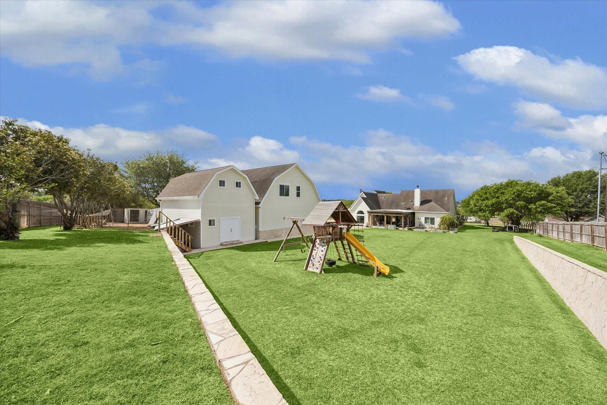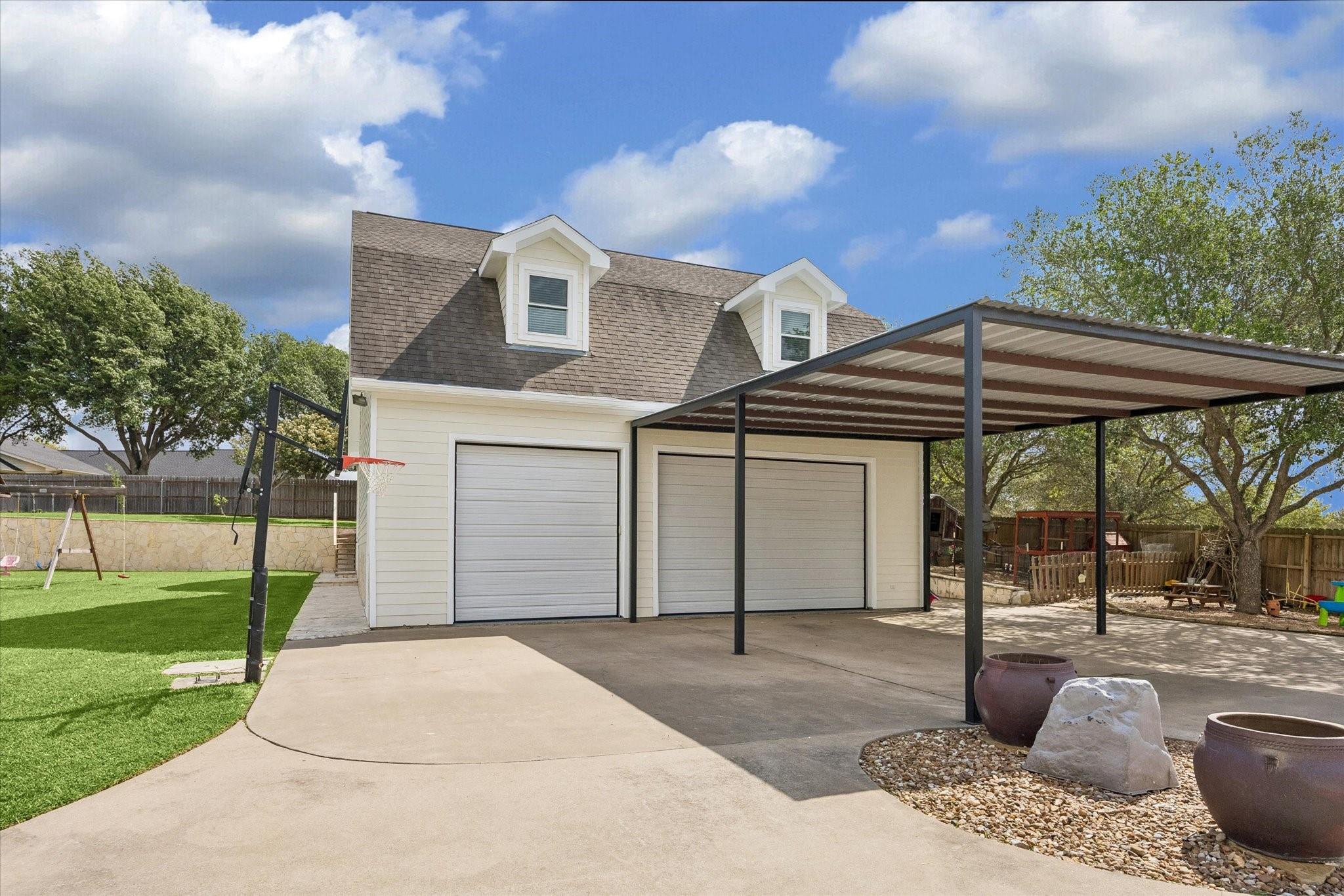 Gorgeous custom home on one acre in a small country neighborhood minutes from Brenham, offering peaceful surroundings with everyday convenience. Recently updated, this property has been thoughtfully improved inside and out. The home features 4 beds & 3 baths, including a downstairs primary suite and a private second-floor guest suite. The open-concept living, dining, and kitchen areas are bright and inviting with high ceilings, real oak wood flooring, updated cabinetry, granite countertops, & newer appliances. Fresh interior and exterior paint and updated windows, enhance the home’s appeal. Step outside to a fully fenced property with an electric gated entrance, surrounded by established herbs and fruit trees. Multiple outdoor seating areas create a relaxed setting. Additional improvements include irrigation, gutters, and a whole house generator. The property also offers an oversized garage with A/C, workshop space, covered carport, & a 936 sq ft garage apartment with 2 beds & 1 bath.