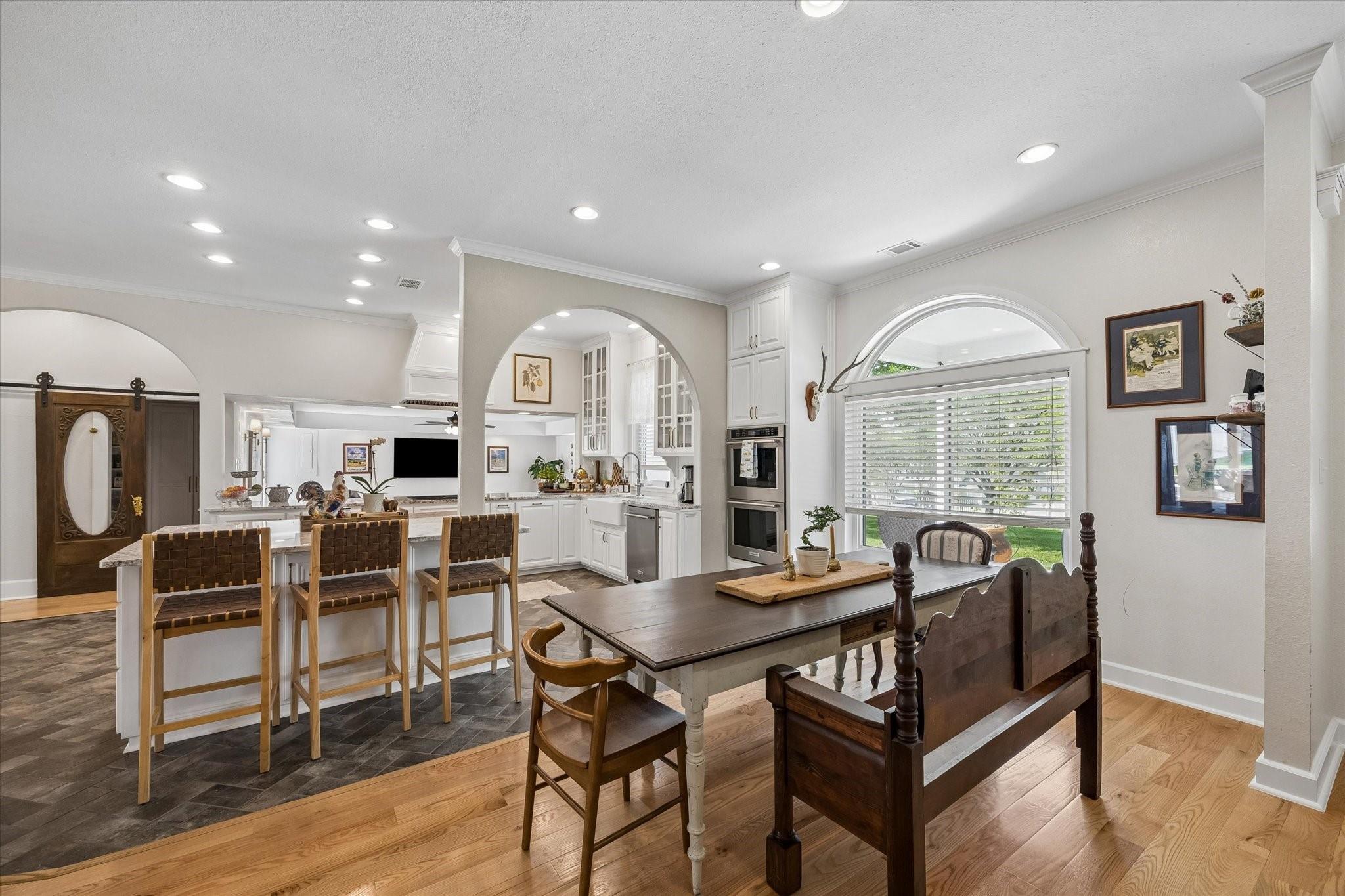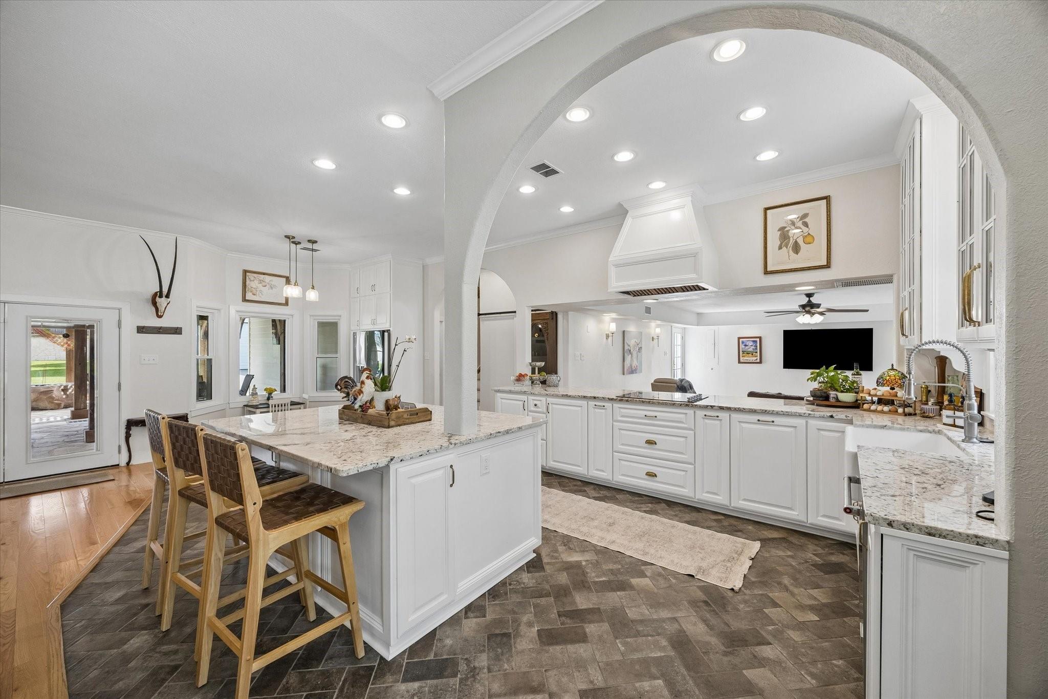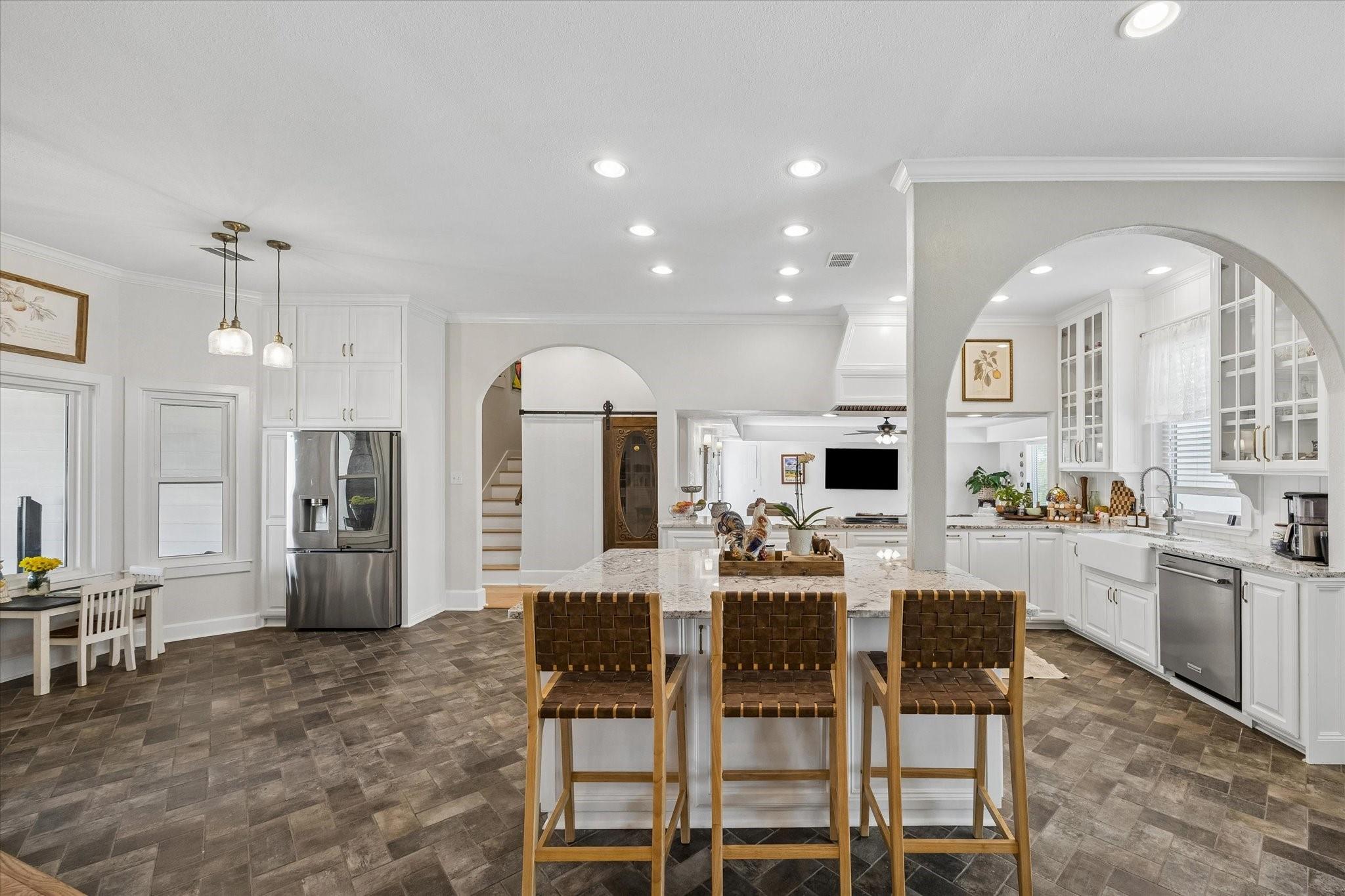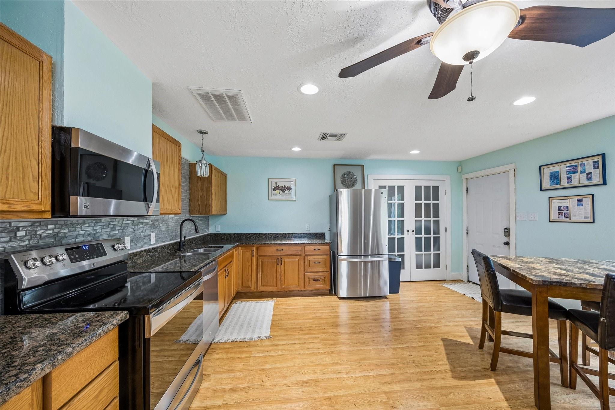 Gorgeous custom home on one acre in a small country neighborhood minutes from Brenham, offering peaceful surroundings with everyday convenience. Recently updated, this property has been thoughtfully improved inside and out. The home features 4 beds & 3 baths, including a downstairs primary suite and a private second-floor guest suite. The open-concept living, dining, and kitchen areas are bright and inviting with high ceilings, real oak wood flooring, updated cabinetry, granite countertops, & newer appliances. Fresh interior and exterior paint and updated windows, enhance the home’s appeal. Step outside to a fully fenced property with an electric gated entrance, surrounded by established herbs and fruit trees. Multiple outdoor seating areas create a relaxed setting. Additional improvements include irrigation, gutters, and a whole house generator. The property also offers an oversized garage with A/C, workshop space, covered carport, & a 936 sq ft garage apartment with 2 beds & 1 bath.