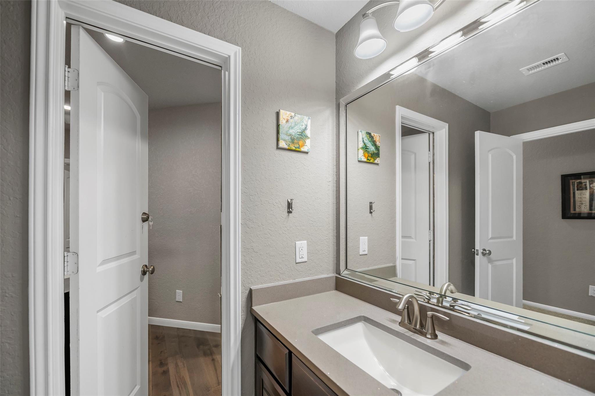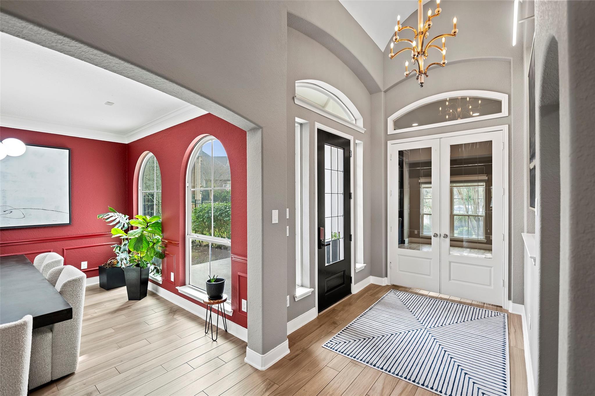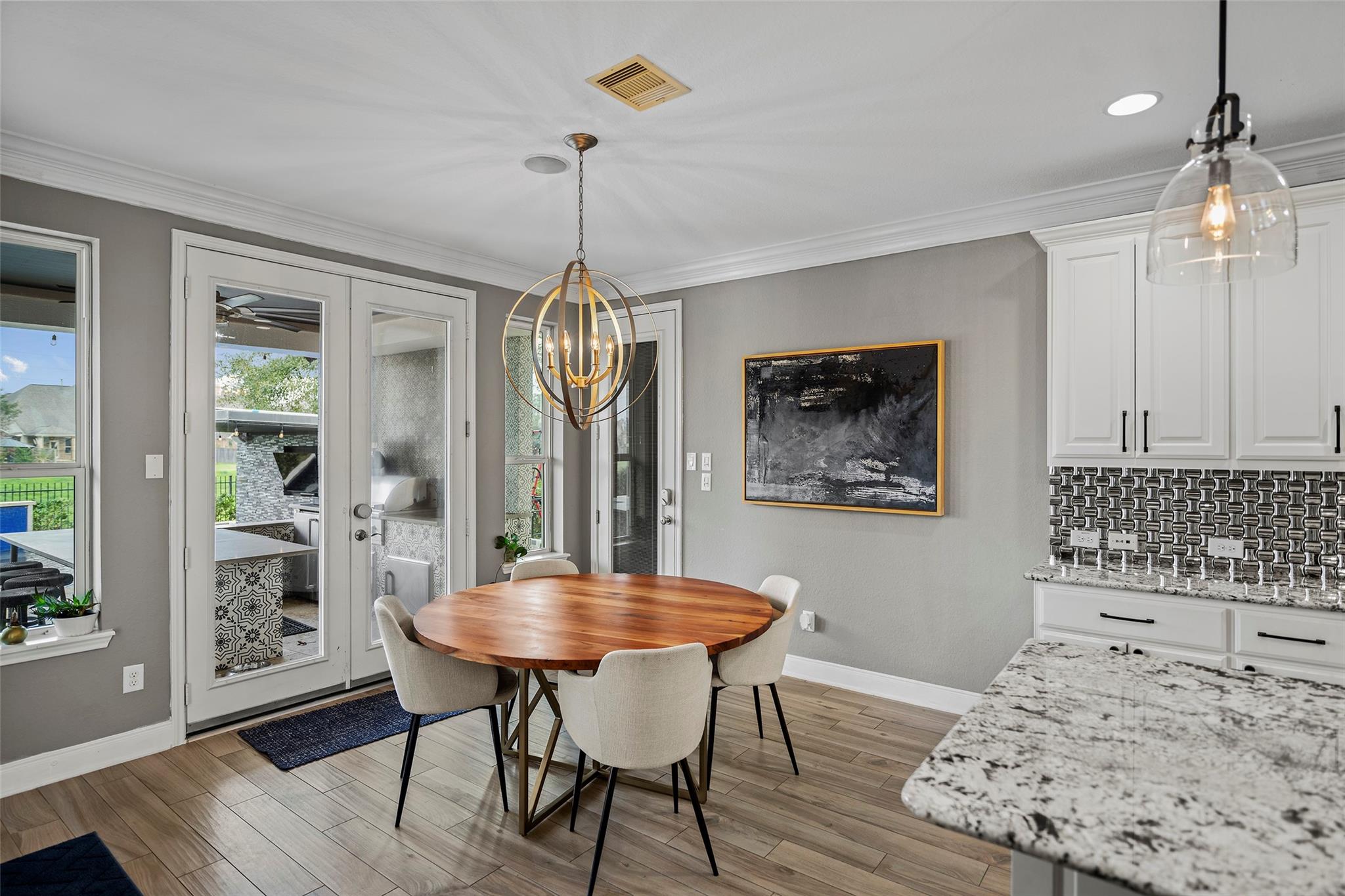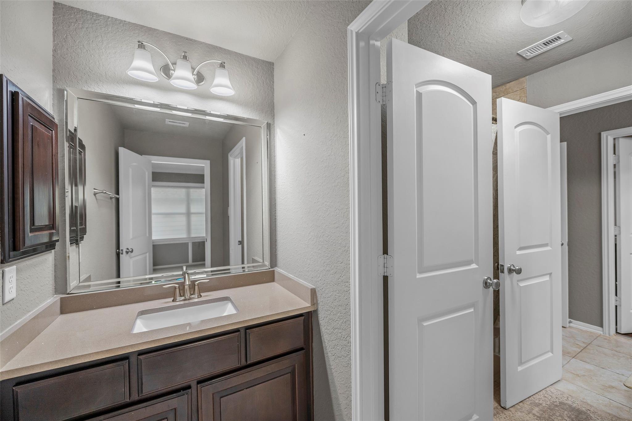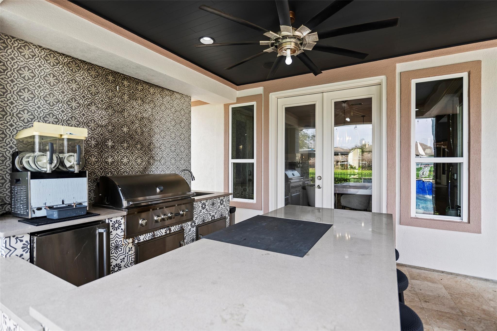 Gorgeous 2-story J. Patrick Home nestled on a greenbelt lot in Creekside West in The Woodlands! A charming gated courtyard welcomes you into a grand two-story entry flanked by a private study and elegant formal dining room. Soaring ceilings, abundant natural light, and crown molding highlight the open, entertainer’s floor plan. The spacious island kitchen features granite countertops, classic white cabinetry, stainless appliances, and flows seamlessly into the main living area. Offering 4–5 bedrooms (2 down), 5 full baths and 1 half bath, this home includes a serene primary suite with vaulted ceiling and spa-like bath with dual vanities, glass-enclosed shower, and freestanding tub. Upstairs boasts secondary bedrooms, media room, and game room, plus a Texas basement for added storage. Backyard retreat w/NO REAR NEIGHBORS features a covered patio with outdoor kitchen, raised deck, sparkling pool and spa, outdoor fireplace, and 340 sq ft guest quarters over the 3-car garage.