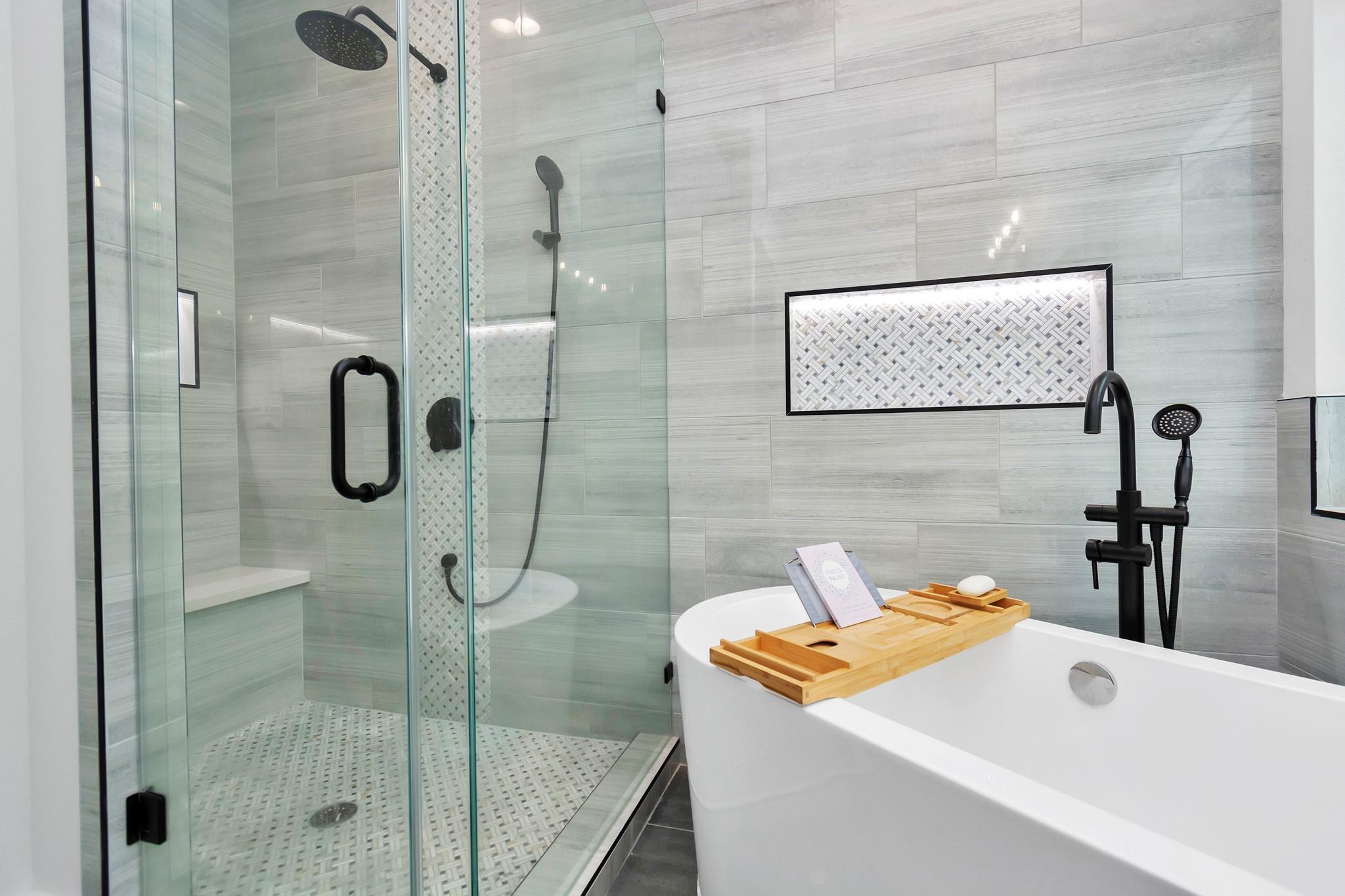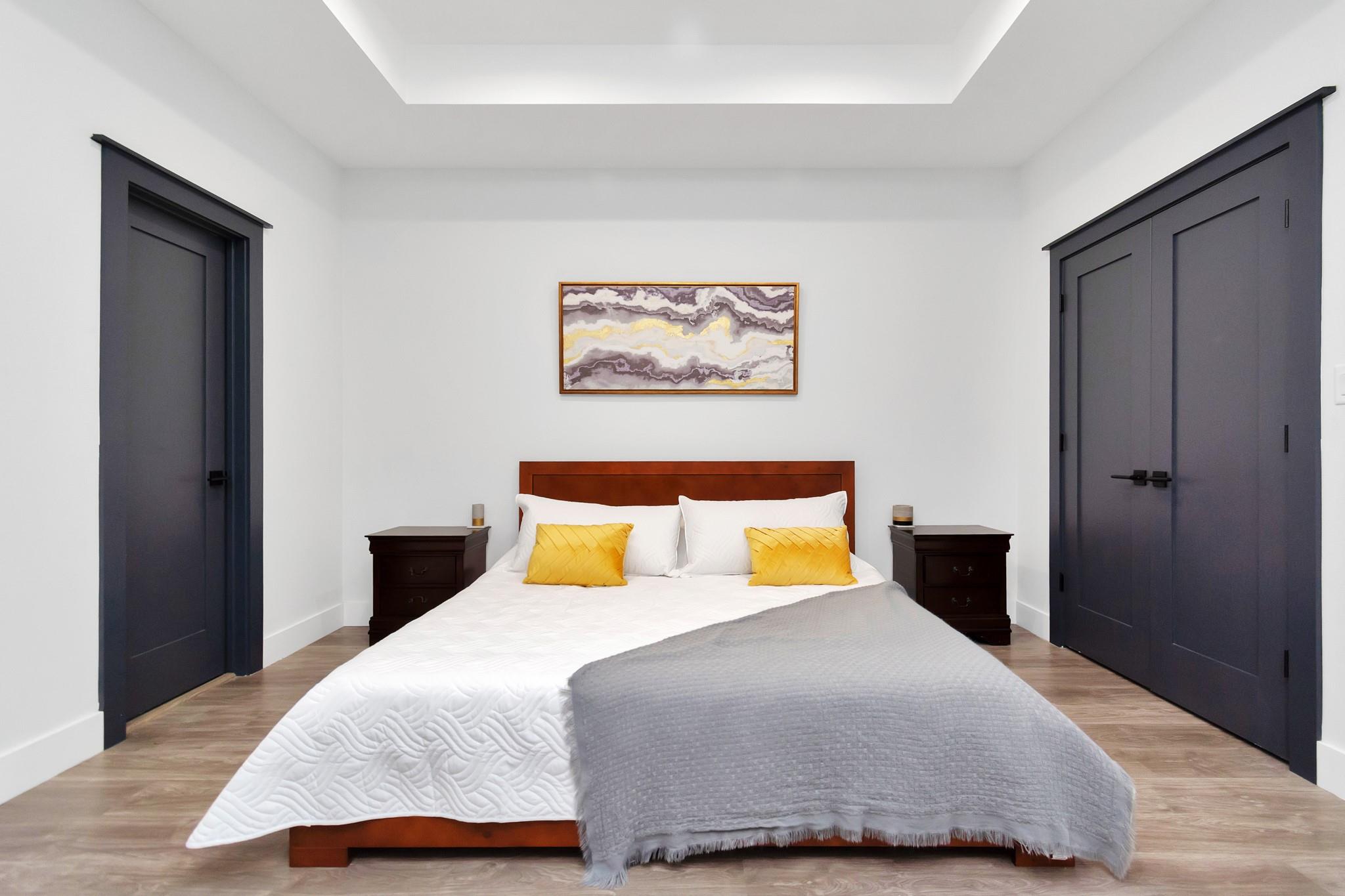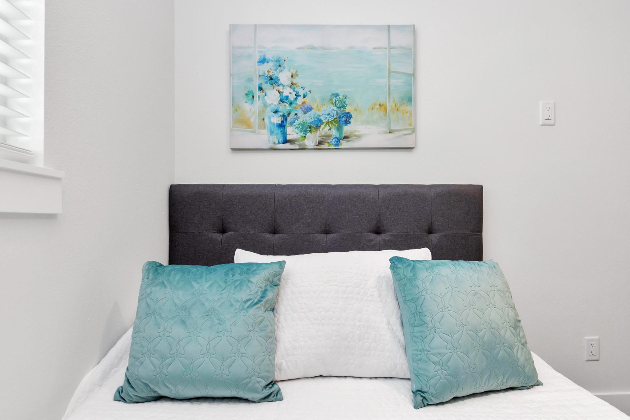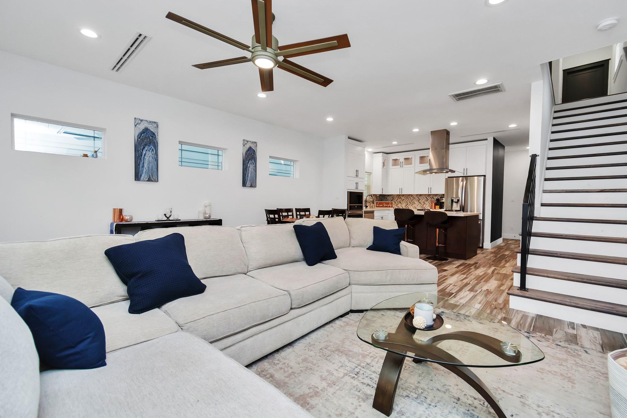/monthALL APPLIANCES INCLUDED. Ask about monthly rate for FULLY FURNISHED. Modern open-concept living, dining, and kitchen area with quartz countertops, stove on island counter, herringbone backsplash, ample cabinets, and recessed lighting. The primary bedroom features walk-in closets with custom shelves, built-in drawers, and French doors to a private balcony. The primary bath includes a soaking tub, dual vanities, and enclosed shower. Backyard patio offers a wooden pergola, outdoor seating, covered grill, and fenced lawn.