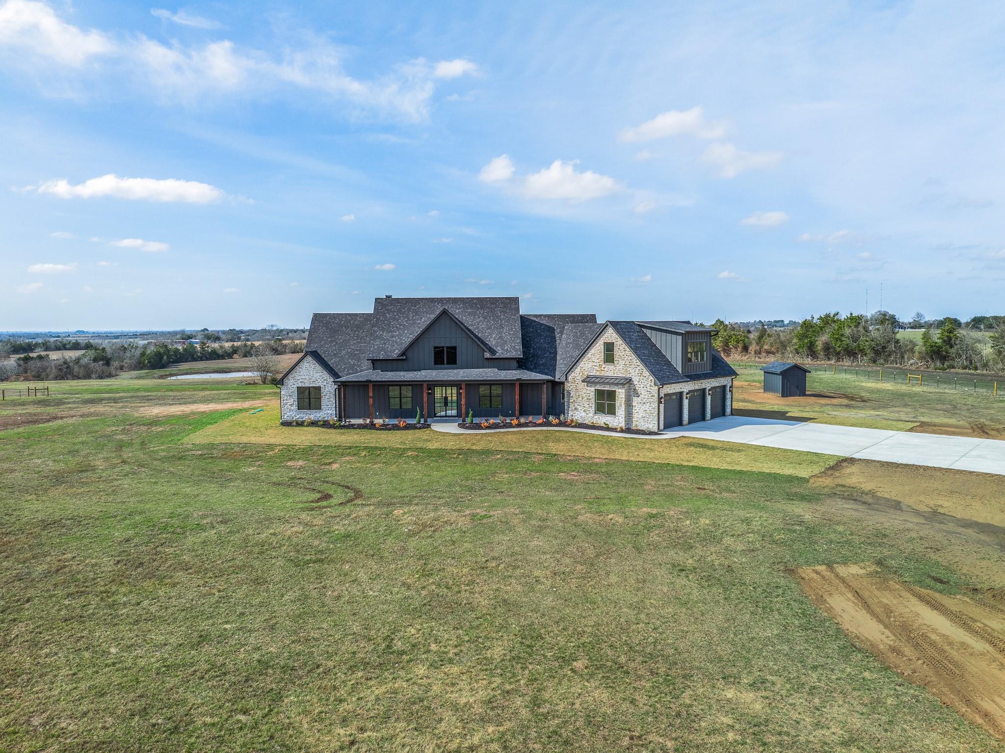 Experience modern country living at its finest in the latest spec home by Mercy Creek Homes! This newly completed, custom-built home is on 10.8 peaceful acres but less than 3 miles from Brenham's HEB. Designed with quality craftsmanship and attention to detail, this property combines luxurious comfort with serene natural beauty and offers scenic views to enjoy due to the rolling land. While it has 4 bedrooms downstairs, each with a dedicated bathroom, the upstairs Bonus Space can serve as an additional bedroom and has its own full bathroom. The Kitchen boasts custom inlay cabinetry, premium appliances--including 2 paneled dishwashers and a paneled Jenn-Air refrigerator, large white oak island, and hidden pantry! Truly, this home exudes great detail at every turn, each space being created on purpose and for a purpose with luxury + functionality in mind. From a mud space off the 3-car garage with a "drop zone" desk to double dishwashers to simplify life--come see for yourself!