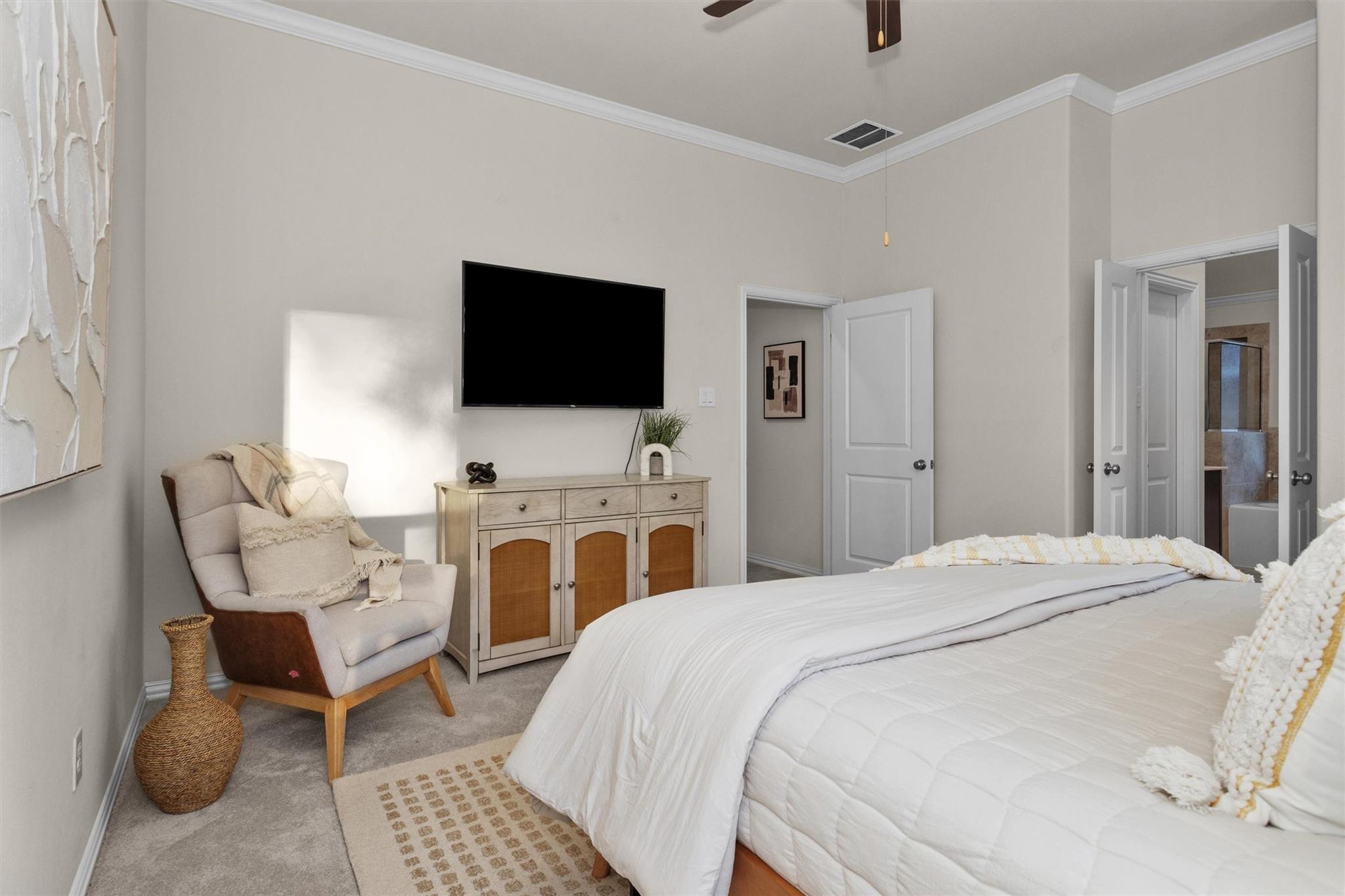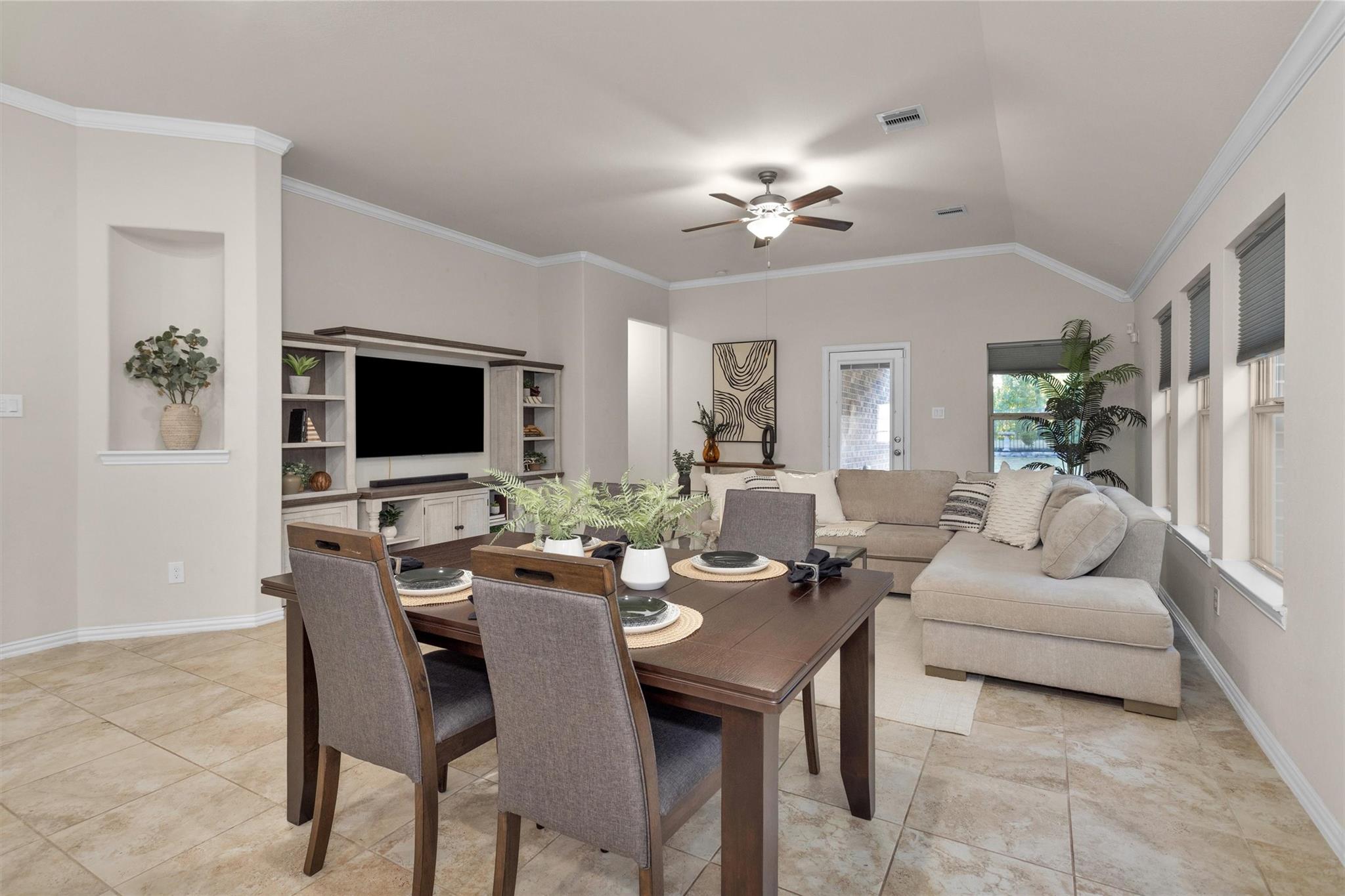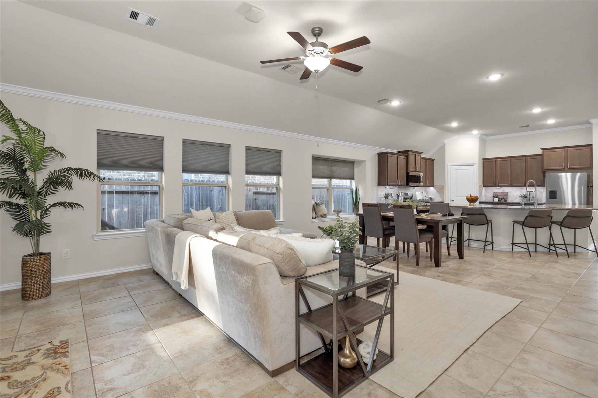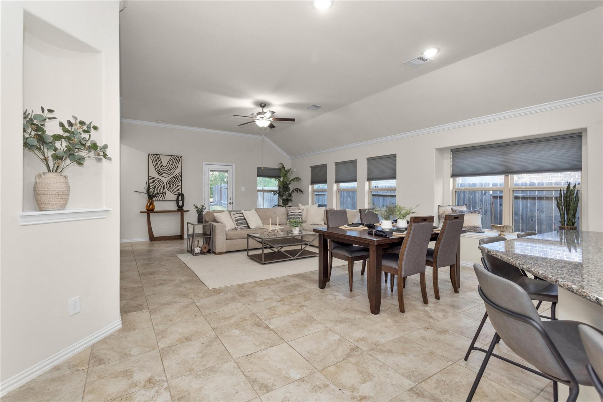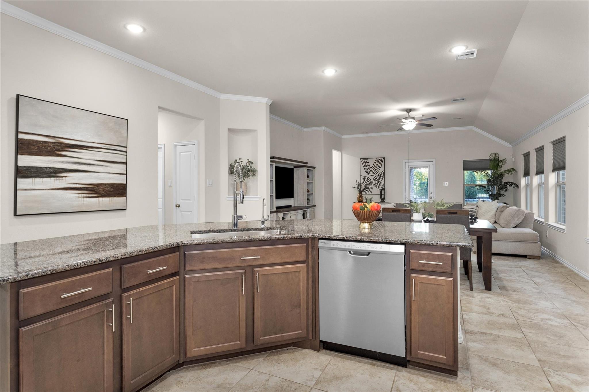InteriorFloors:Carpet,TileCountertop:GraniteBathroom Description:Primary Bath: Double Sinks,Primary Bath: Separate Shower,Primary Bath: Soaking Tub,Secondary Bath(s): Tub/Shower ComboBedroom Desc:All Bedrooms DownKitchen Desc:Breakfast Bar,Island w/o Cooktop,Kitchen open to Family Room,Pantry,Under Cabinet LightingRoom Description:Family Room,Home Office/Study,Kitchen/Dining Combo,Utility Room in HouseHeating:Central GasCooling:Central ElectricConnections:Electric Dryer Connections,Gas Dryer Connections,Washer ConnectionsDishwasher:YesDisposal:YesCompactor:NoMicrowave:YesRange:Gas RangeIce Maker:NoEnergy Feature:Ceiling Fans,Digital Program Thermostat,Radiant Attic BarrierInterior:Crown Molding,Fire/Smoke Alarm,High Ceiling