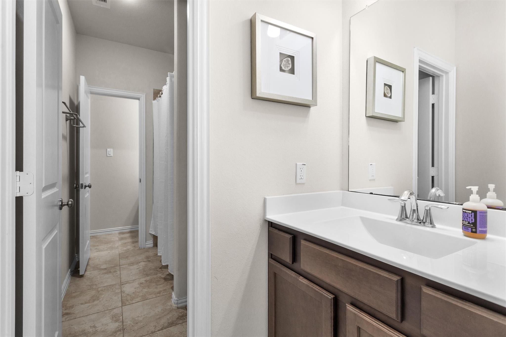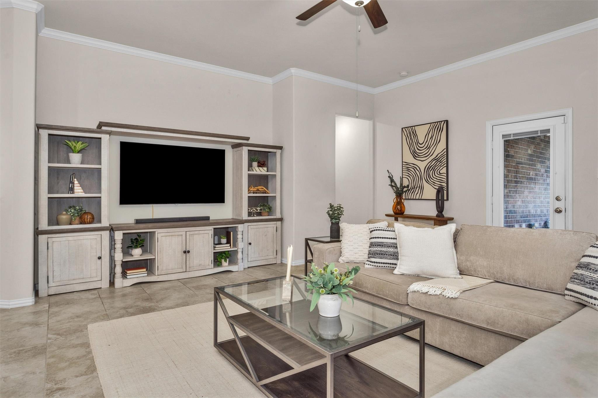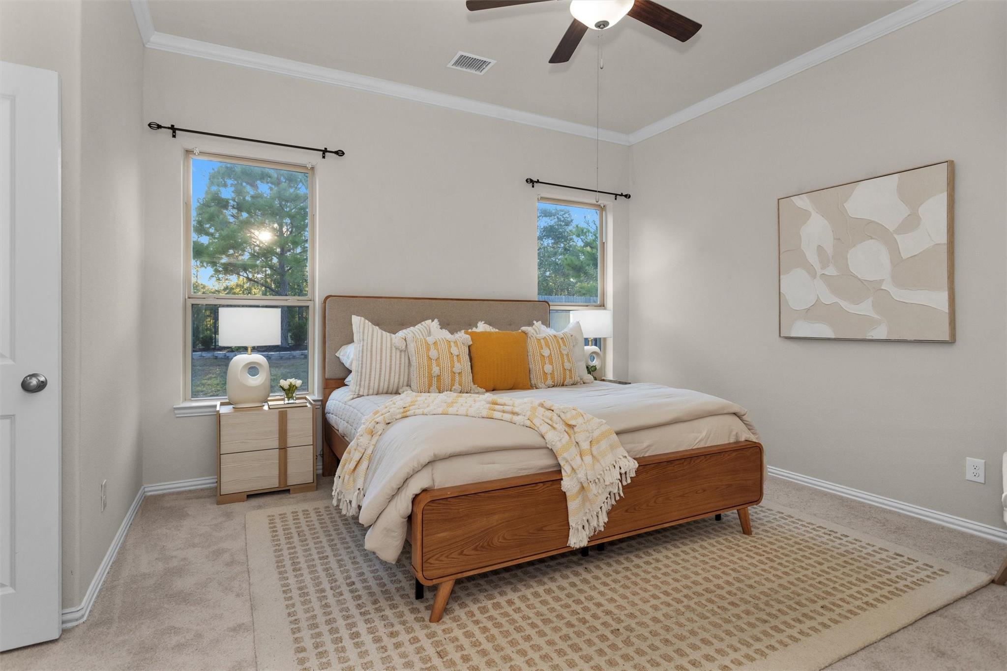 Discover this highly desired one-story floor plan located in the master-planned community of Woodforest. From the moment you arrive, you’ll be charmed by the home’s beautiful curb appeal. Enjoy peaceful views with no back neighbors through an elegant iron fence, creating a serene backdrop from the kitchen, living room, & primary bedroom. The home features a private study w/double doors, ideal for working from home, and an open-concept kitchen, dining, & living area--perfect for both everyday living & family gatherings. A thoughtfully designed flex room sits between the two secondary bedrooms—offering endless possibilities as a kids’ playroom, game room, homework space, or second office. Primary suite is privately tucked at the back of the home showcasing tranquil views of nature & featuring dual closets & separate vanity spaces. Wood-look ceramic tile flows throughout the home w/carpet only in bedrooms & Brand NEW Carpet installed. Rare combination of comfort, functionality, &