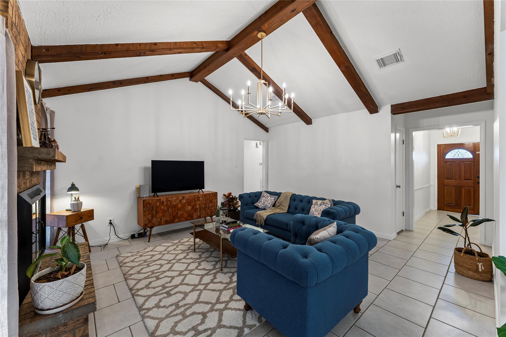 Charming single-story brick home located in an established Pasadena neighborhood with easy access to major roadways, shopping, and dining. Inside, the home features vaulted ceilings with exposed wood beams, a brick fireplace, and updated lighting, creating a warm, open living space. The kitchen offers quartz countertops, stainless steel appliances, painted cabinetry, and a functional layout that flows into the dining area. Spacious bedrooms, updated bathrooms, and neutral tile flooring throughout provide comfort and easy maintenance. The large, fully fenced backyard includes a covered patio and storage shed—perfect for outdoor enjoyment—and is conveniently located with quick access to Beltway 8, Fairmont Parkway, and nearby amenities.