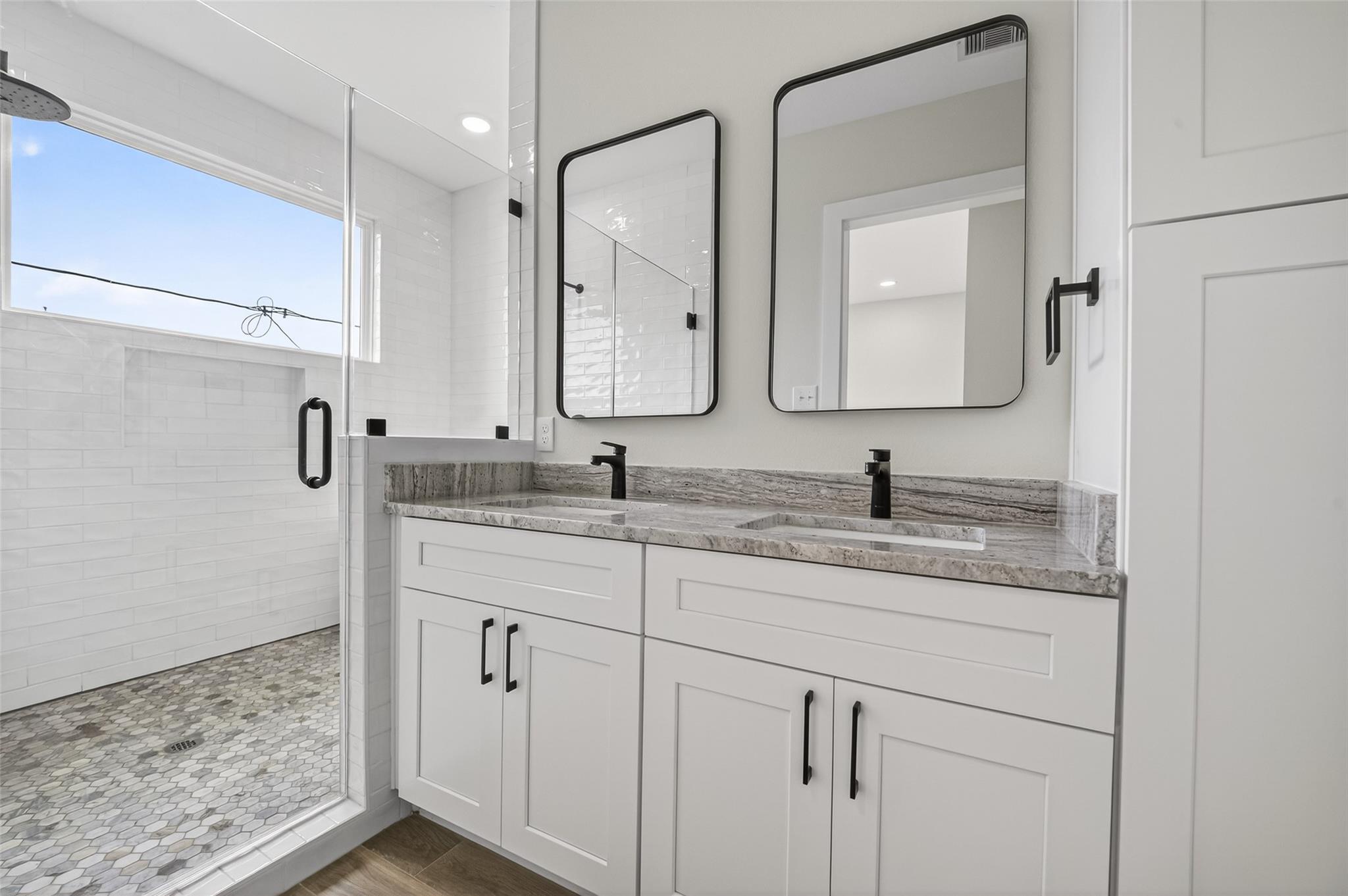 New construction duplex featuring two private units, each with 3 bedrooms, 2.5 baths, and an individual garage. Designed for both style and function, each unit includes a spa-inspired bathroom with a freestanding tub inside a walk-in shower, a luxurious retreat for everyday living. Carpeted bedrooms upstairs add a cozy touch. Ideal for house hacking, multigenerational use, or investment. No HOA and low property taxes. Prime location near NRG Stadium (FIFA World Cup 2026), University of Houston, and the Medical Center, offering strong rental demand and long-term potential.