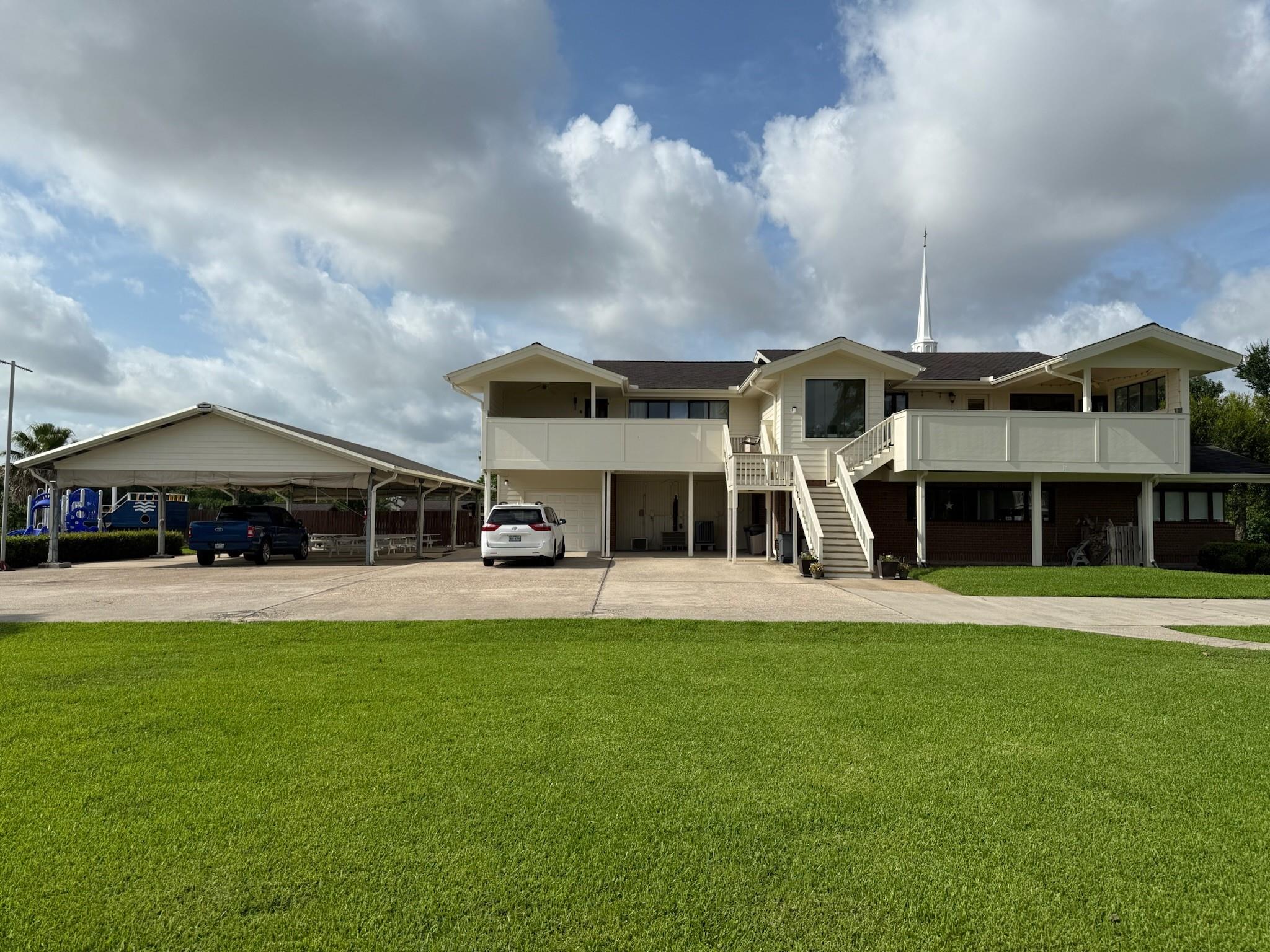 Property Highlights +-11,000 useable/rentable SF* *2 Apartments: 3 bed/1 bath and 2 bed/1 bath with attached garage +_1,300 SF each *2 Townhomes: 3 bed/1.5 baths +-1,450 SF each *5 bay garage structure (parking or storage) *5,700 SF auditorium with loft and storage *Commercial Kitchen with transferable bakery license, walk-in cooler *Oversized Pantry with walk-in Freezer *Mini Convenience Store *3 Offices *Inground Pool, Fenced in *Outdoor Tent: seats up to 200, weather-proof cover for 4 sides