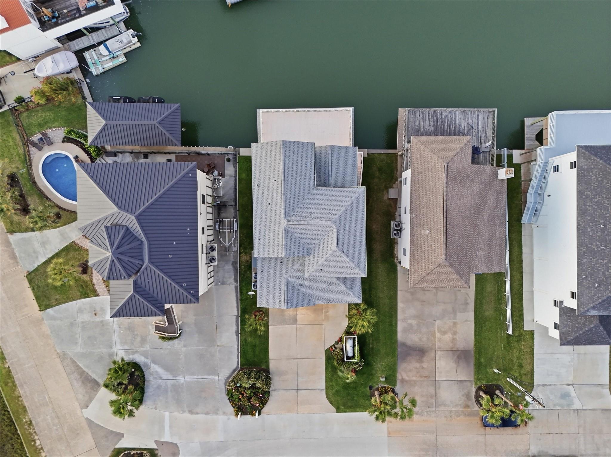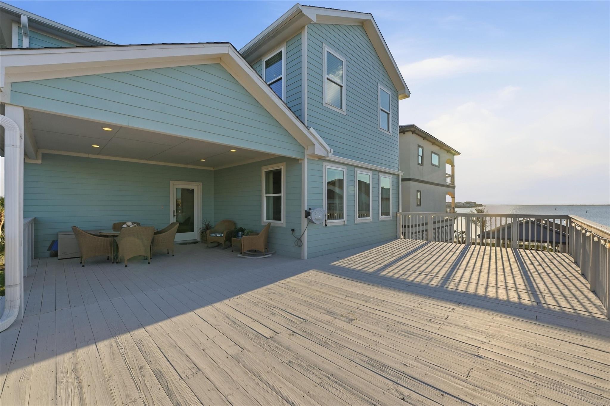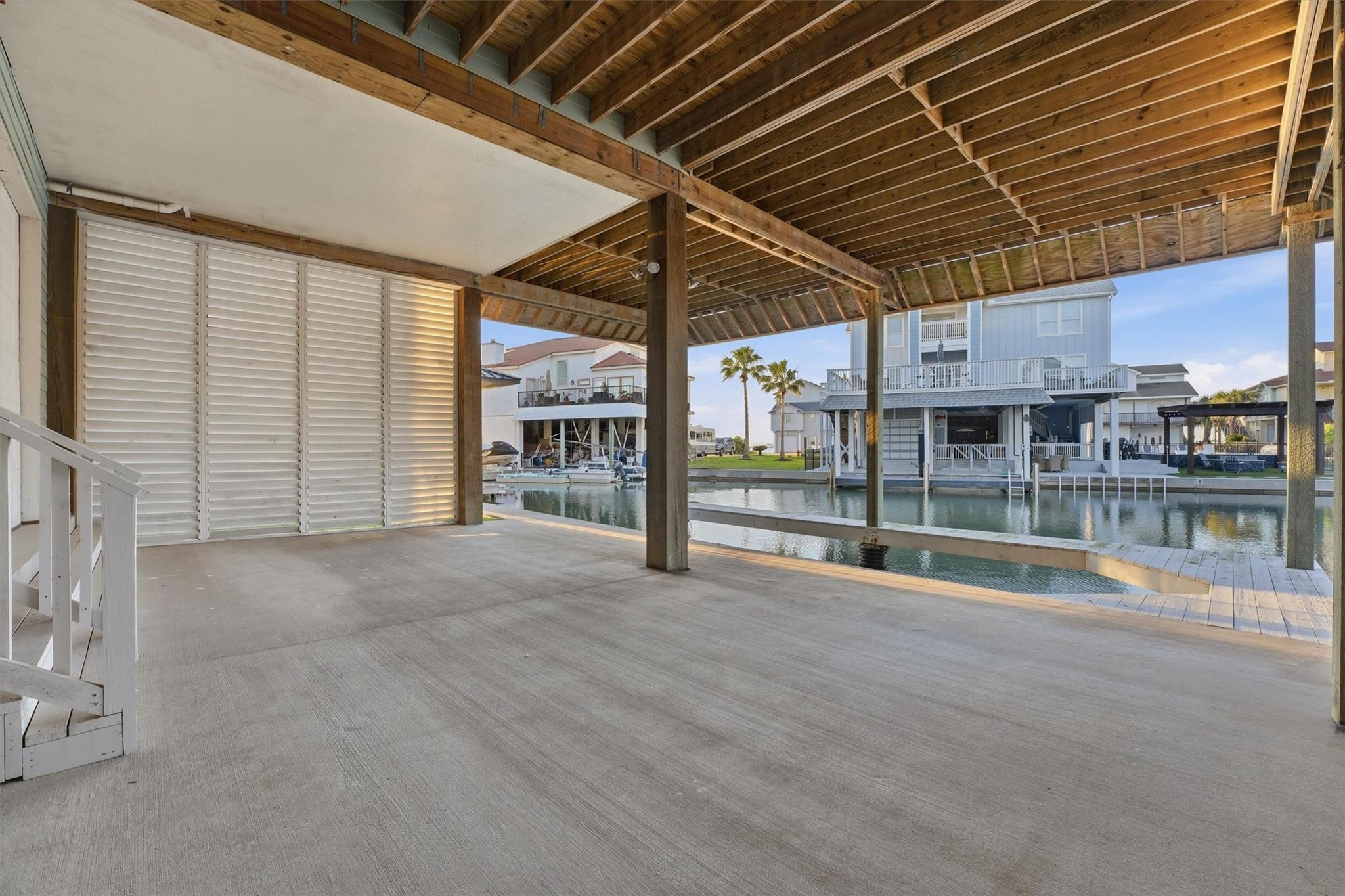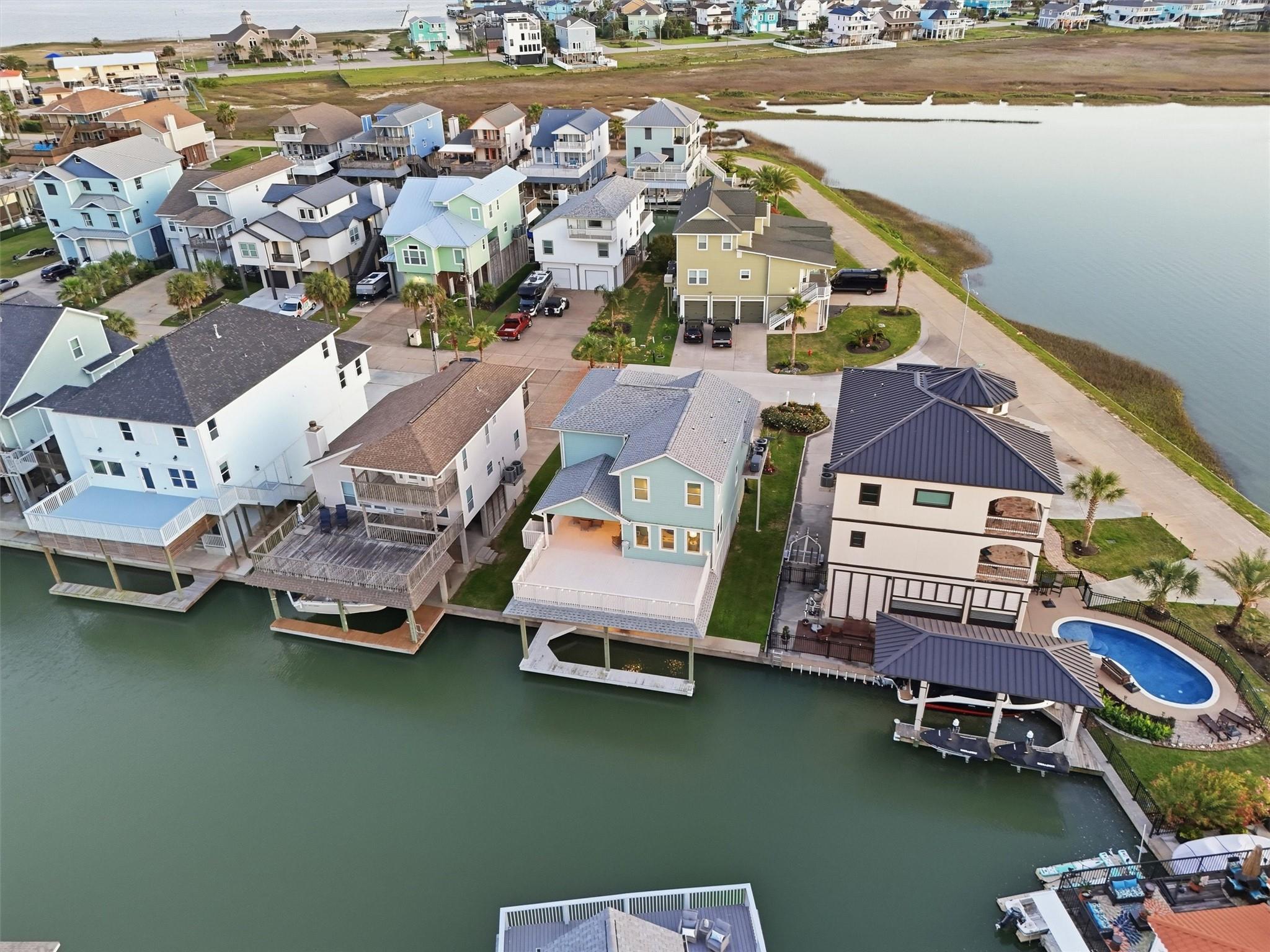 Stunning 2021-built canal-front home on coveted Tiki Island offering direct Jones Bay access and breathtaking sunset views. This impeccably maintained 4-bedroom, 3.5-bath two-story residence features a thoughtfully designed open floor plan with a spacious kitchen island, propane gas range, and stainless steel appliances. The elegant interior showcases an open concept with modern glass fixtures and a striking open-cord stairwell design. The primary suite is conveniently located on the main level, with three bedrooms upstairs. Expansive main level balcony and a ground-level outdoor living area adjacent to the boat dock and slip for seamless waterfront living. The oversized enclosed three-door garage provides exceptional bonus storage or flex entertainment space opening directly onto the boat slip and canal. Whether you're a boating enthusiast or sunset chaser, this waterfront gem delivers luxurious living in one of Galveston coveted communities. NO HOA fee.
