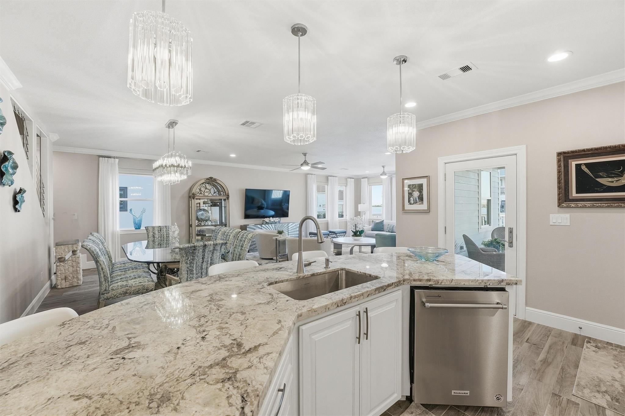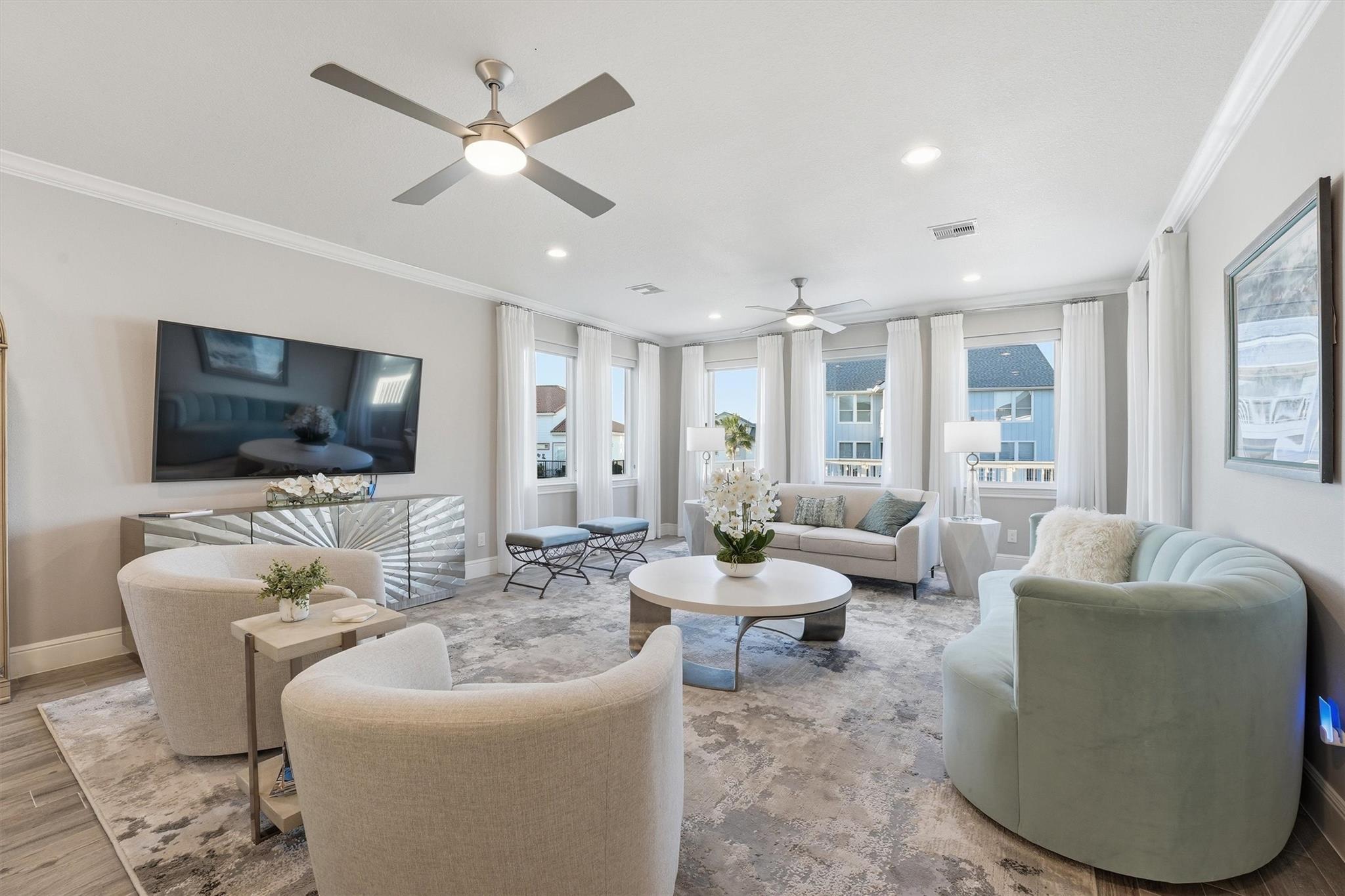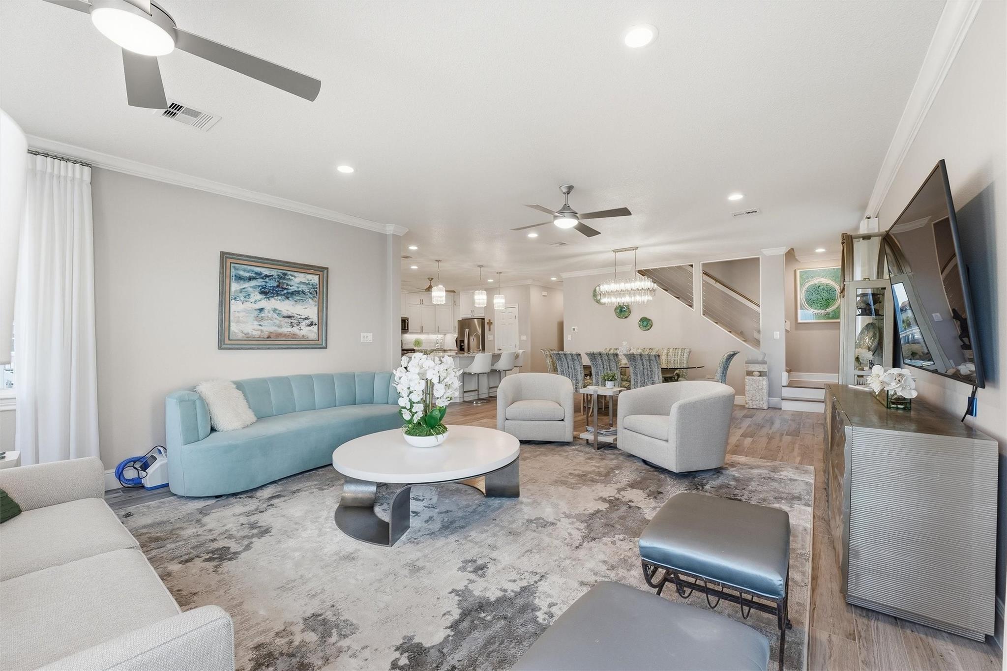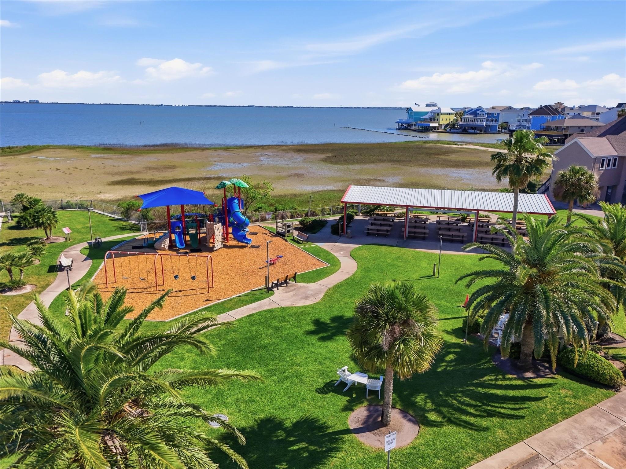 Stunning 2021-built canal-front home on coveted Tiki Island offering direct Jones Bay access and breathtaking sunset views. This impeccably maintained 4-bedroom, 3.5-bath two-story residence features a thoughtfully designed open floor plan with a spacious kitchen island, propane gas range, and stainless steel appliances. The elegant interior showcases an open concept with modern glass fixtures and a striking open-cord stairwell design. The primary suite is conveniently located on the main level, with three bedrooms upstairs. Expansive main level balcony and a ground-level outdoor living area adjacent to the boat dock and slip for seamless waterfront living. The oversized enclosed three-door garage provides exceptional bonus storage or flex entertainment space opening directly onto the boat slip and canal. Whether you're a boating enthusiast or sunset chaser, this waterfront gem delivers luxurious living in one of Galveston coveted communities. NO HOA fee.