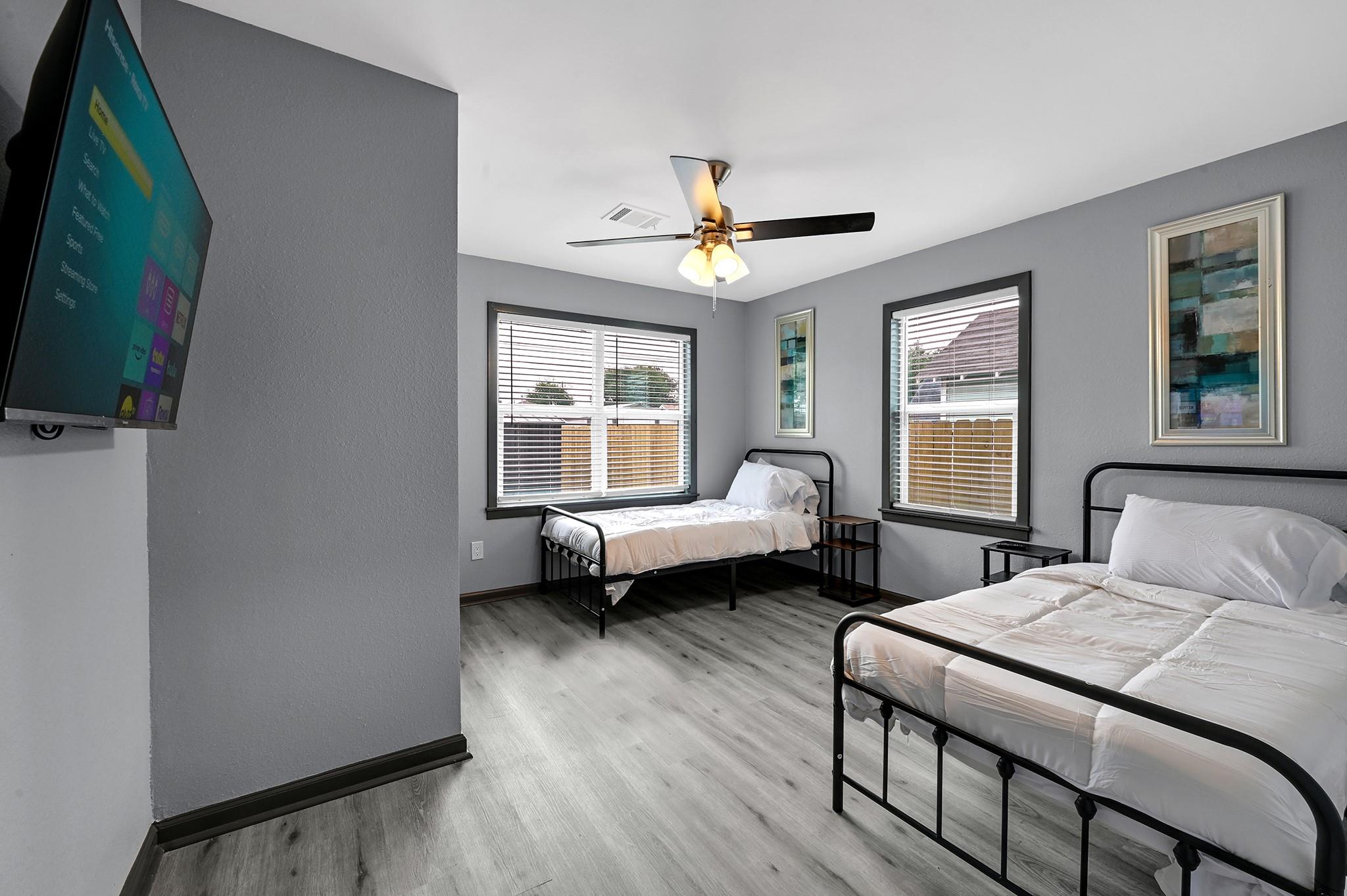 /monthFULLY FURNISHED ALL BILLS PAID. Welcome to this beautifully renovated 3-bedroom, 2-bathroom home in the heart of Houston! This charming residence features a modern and spacious interior, perfect for comfortable living and entertaining. The open-concept layout boasts a stunning kitchen with updated appliances, sleek countertops, and ample cabinet space. The bedrooms are generously sized, offering plenty of room for relaxation and rest. The bathrooms have been tastefully updated with stylish fixtures and finishes. Outside, you'll find a large backyard, ideal for outdoor gatherings or simply enjoying the Texas Updates( NEW ROOF, WINDOWS, HVAC,PEX PLUMBING, SEWER LINE, ELECTRICAL WIRING, 200AMP BREAKER BOX,BATHROOMS, QUARTZ, CABINETS, APPLIANCES, FOUNDATION REPAIRED.PAINTED THROUGH OUT INSIDE AND OUTSIDE,STOARAGE UNIT IN THE BACK, NEW PRIVACY FENCE.TWO CAR DRIVEWAY, CEDAR STAINED FENCE IN THE FRONT.)