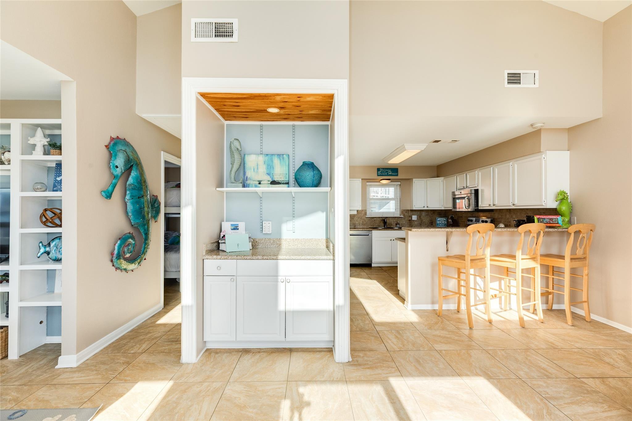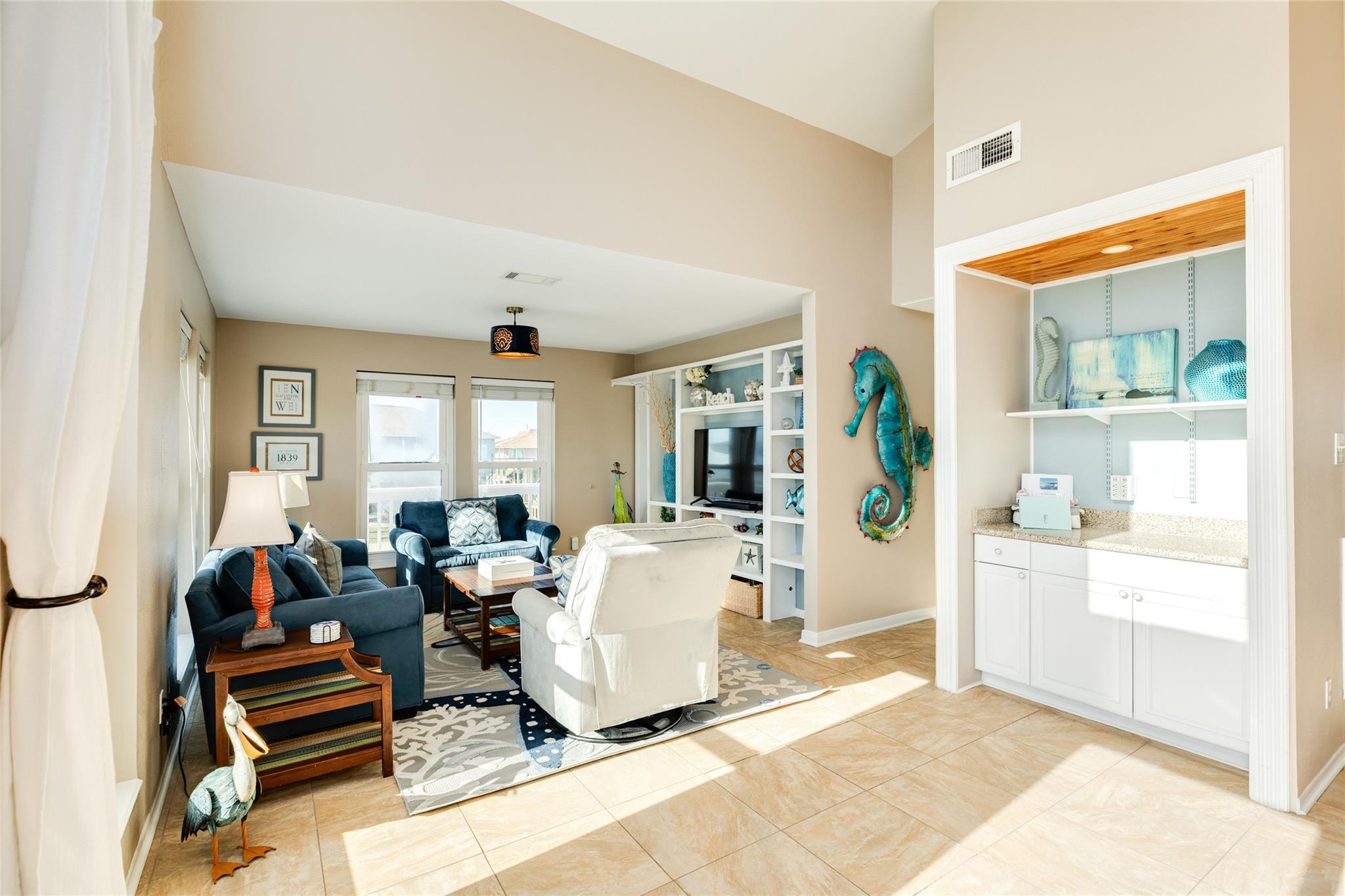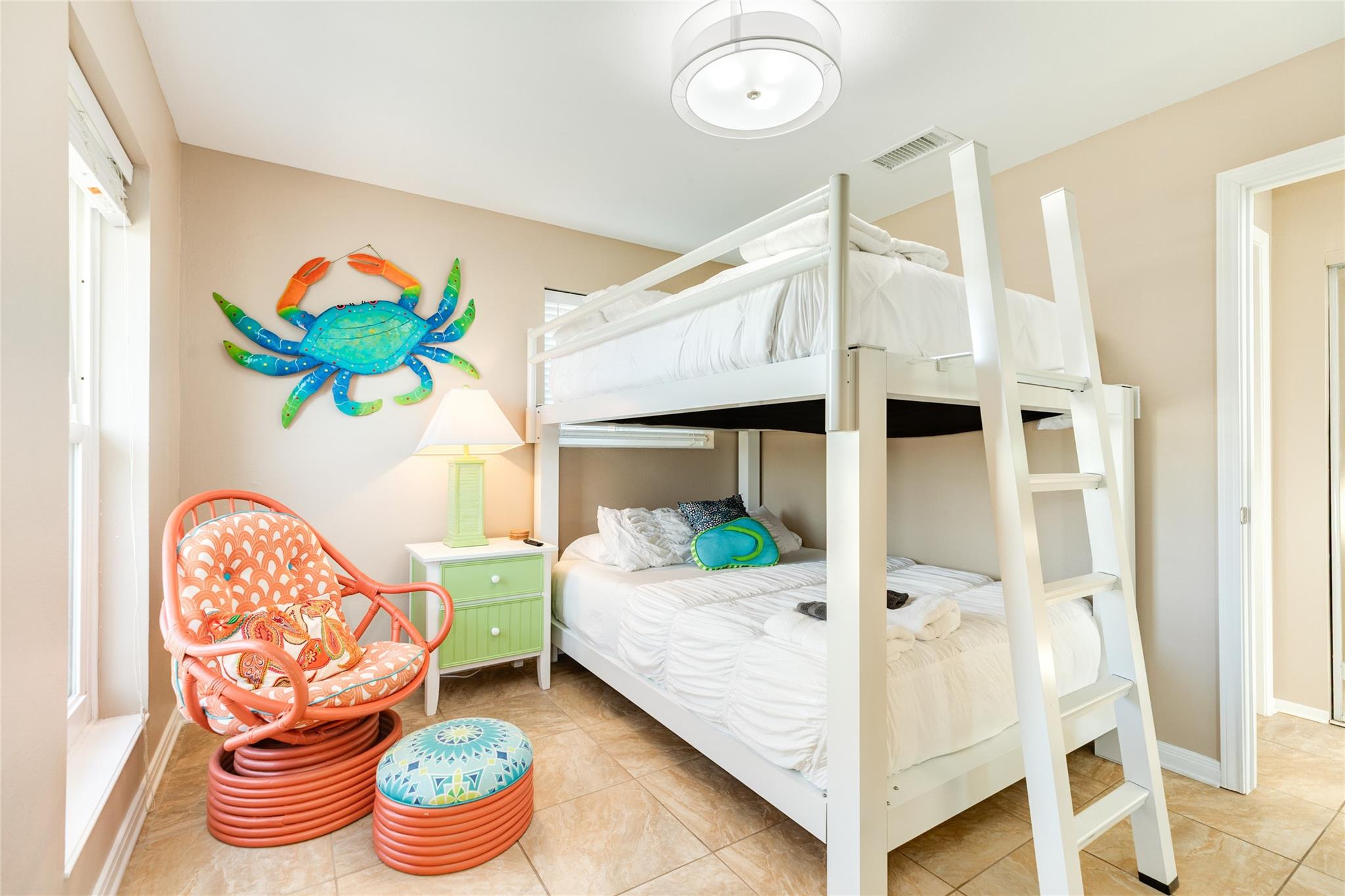This charming two-bedroom, two-bath beach house offers a third bedroom conversion option and has a recent HVAC, deck, paint, kitchen stove, and more! With stunning Gulf and beach views. Each bedroom provides private access to a spacious deck for soaking in the scenery. The second bedroom features queen-over-queen bunk beds, while the living room includes a sleeper sofa for extra guests. The primary bedroom boasts a king-sized bed and ample space. Throughout the home, low-maintenance tile flooring and high ceilings create an airy, open atmosphere. A wall of windows brings in abundant natural light and breathtaking water views. The modern kitchen seamlessly connects to the living and dining areas. Enjoy a covered outdoor space for dining, relaxing, and entertaining, too. Don’t miss the opportunity to own this perfect beach house tucked decidedly away from "it all" on your own private beach, just for neighborhood residents. Schedule a tour today.