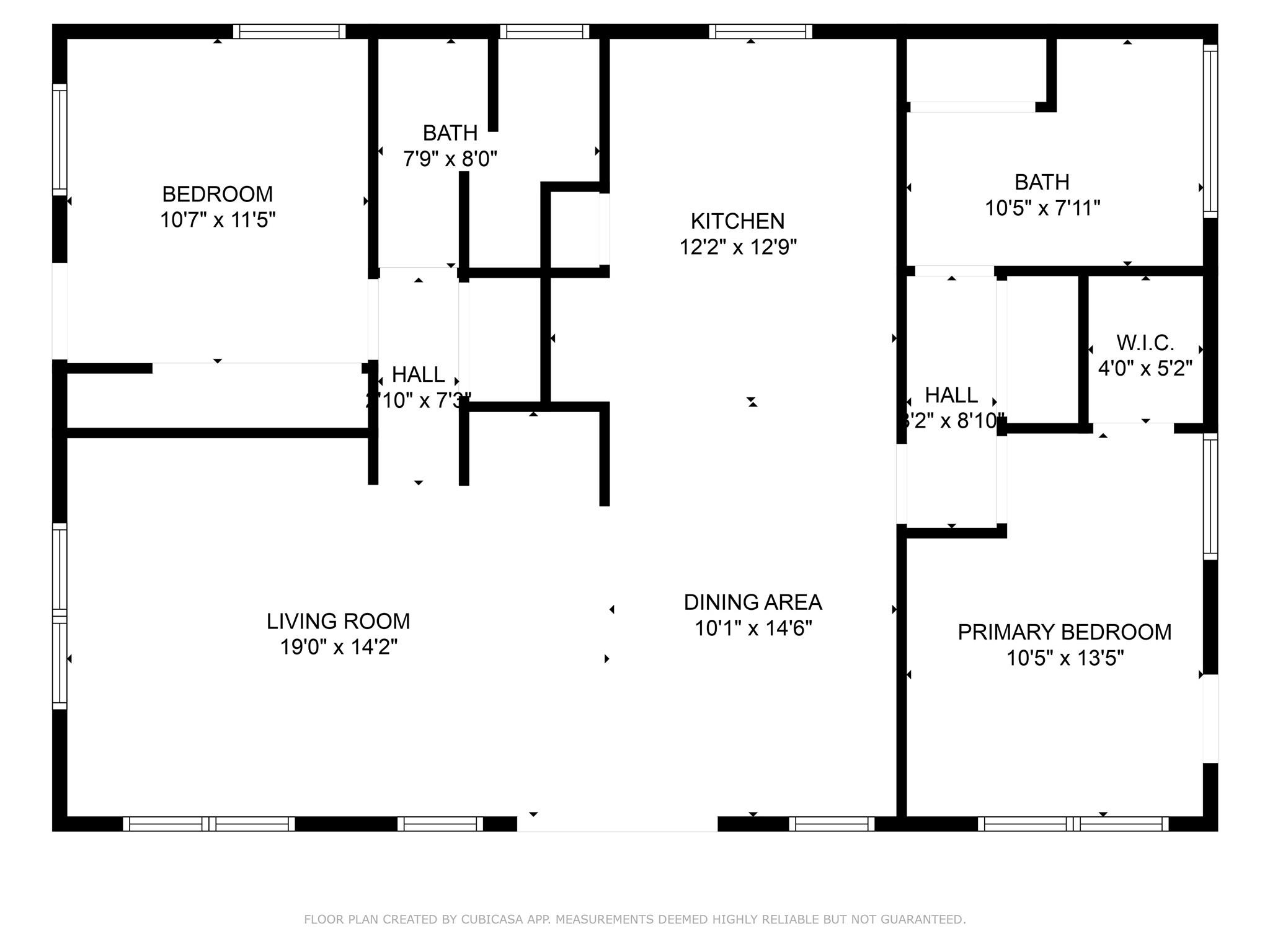 First FloorLiving:19x14.2Dining:10.1x14.6Kitchen:12.2x12.9Primary Bedroom:10.5x13.5Bedroom:10.7x11.5