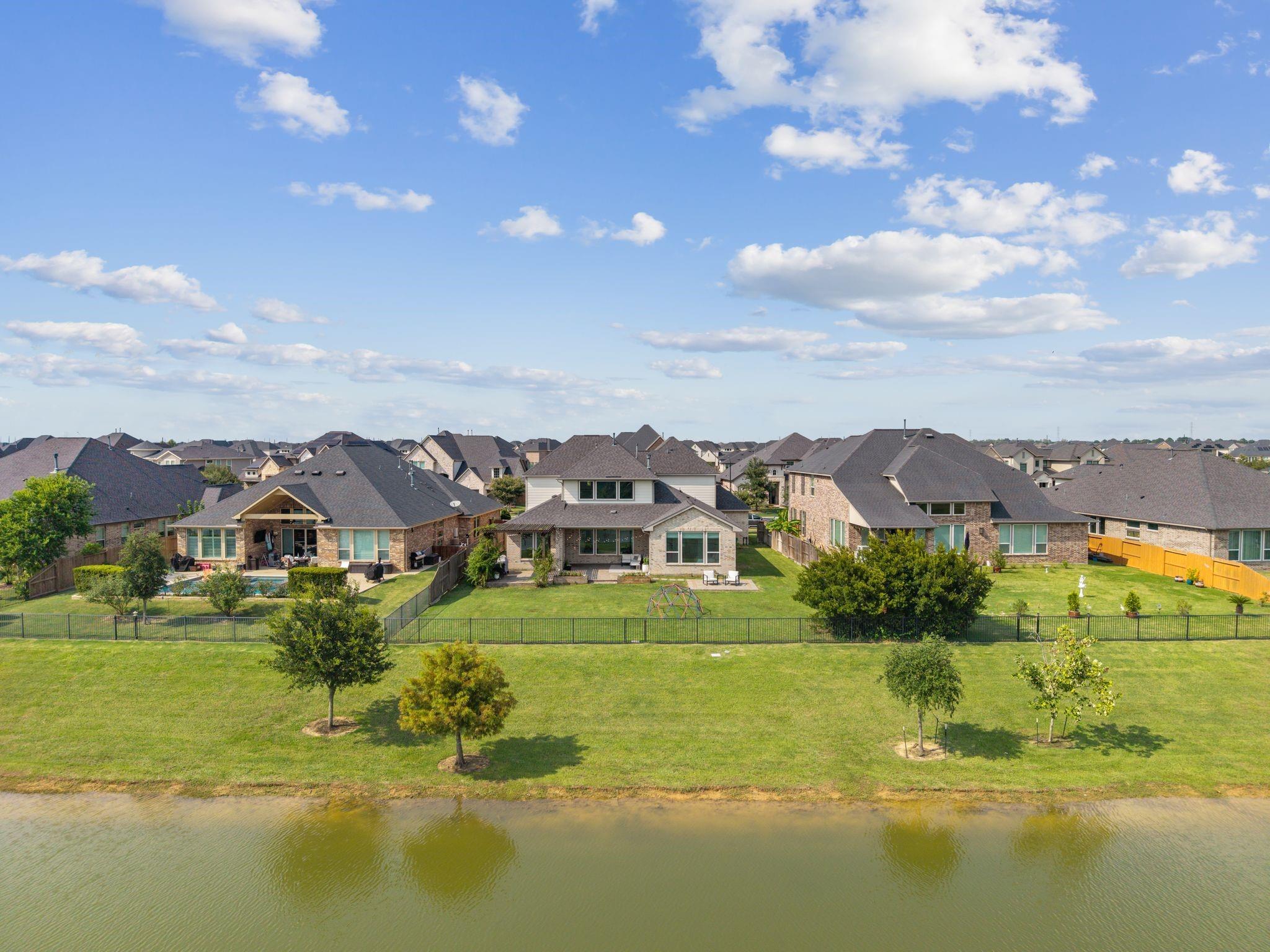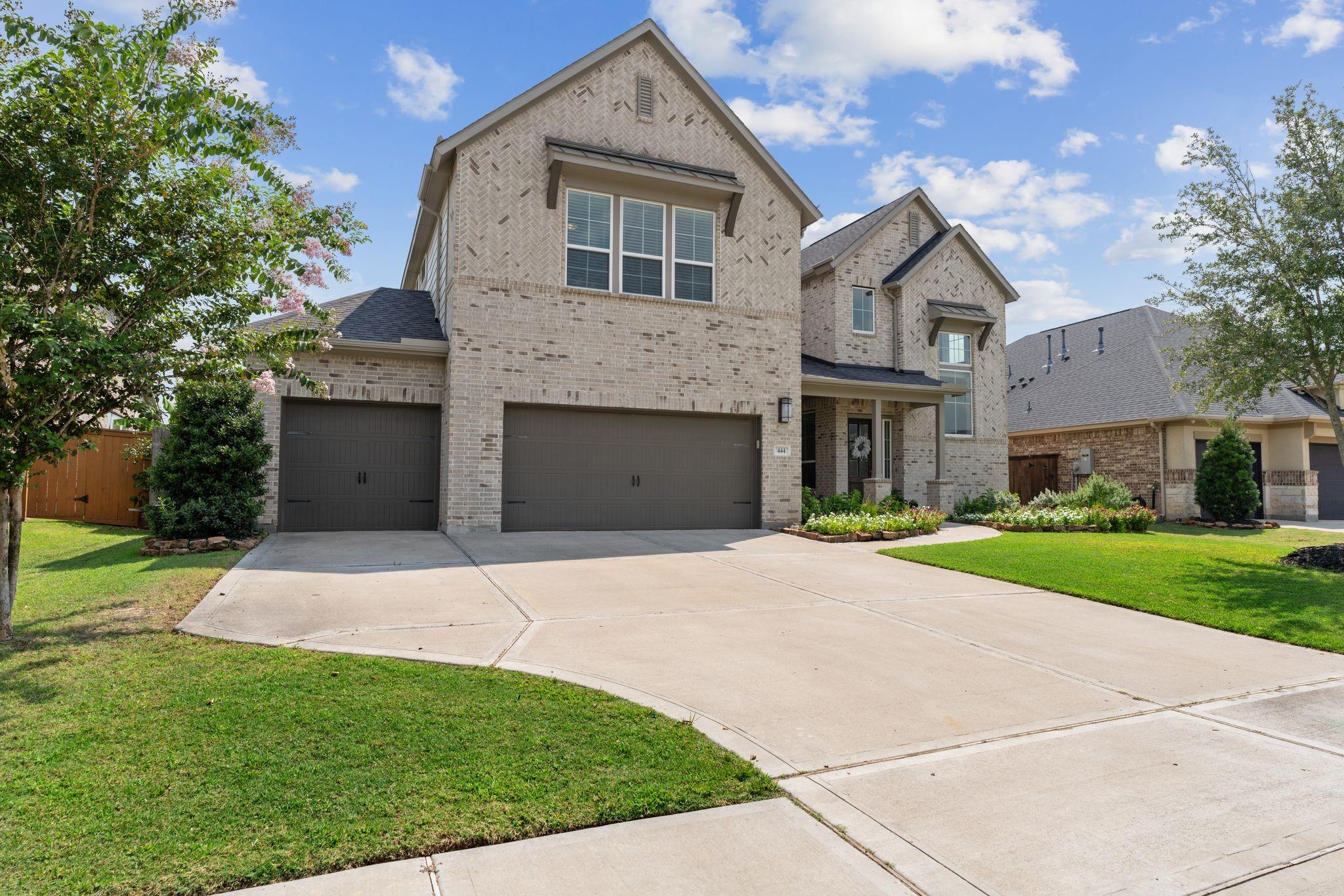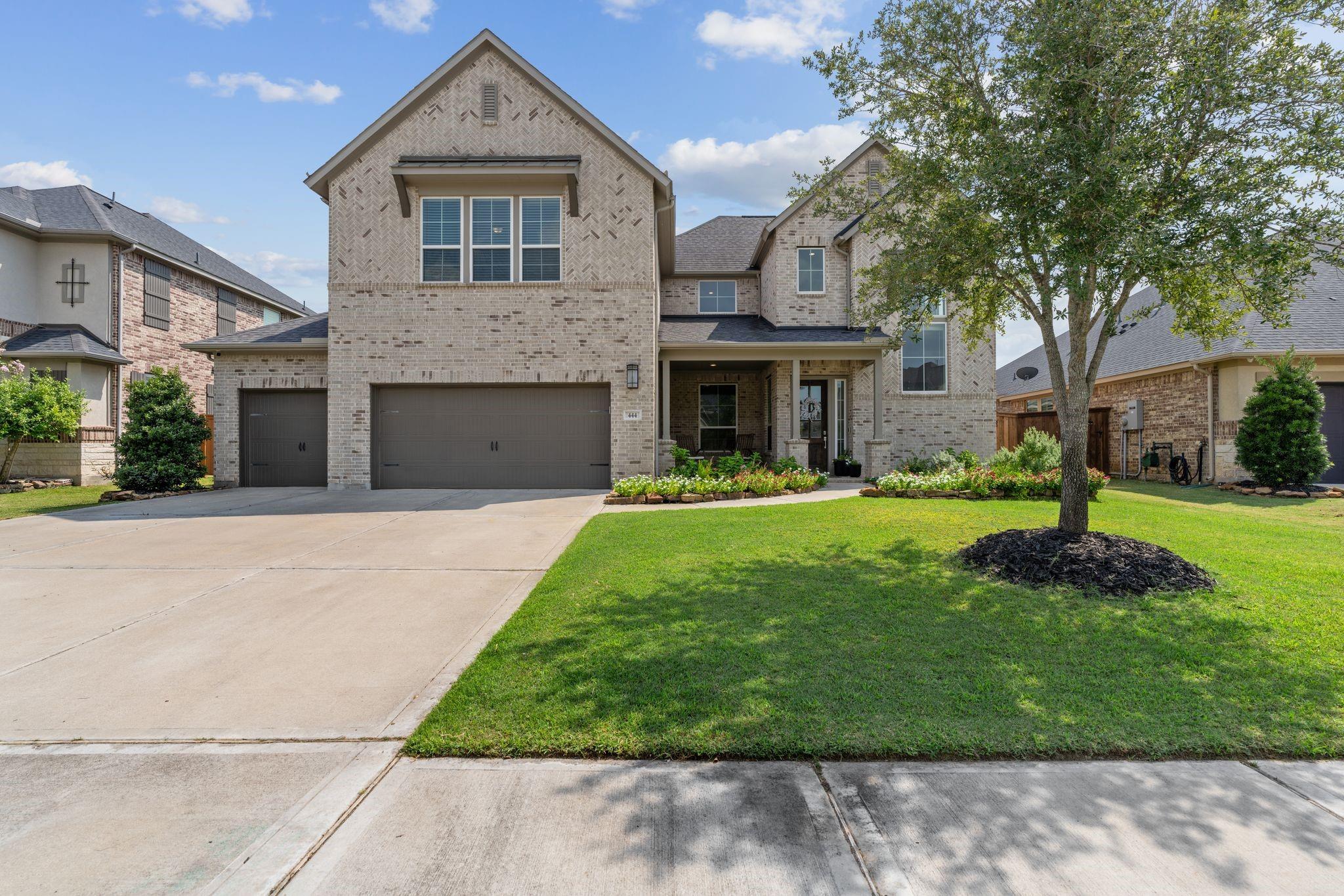 1.7% TAX RATE in KATY ISD! Welcome to 444 Ripple Edge Court in the desirable gated Lake House community of Katy, TX! This stunning two-story brick home sits on a lakefront lot and offers 4 bedrooms, 3.5 baths, a 4-car garage, a front porch, and an open-concept floor plan perfect for entertaining. The gourmet kitchen features a large island with breakfast bar, granite countertops, crisp white cabinetry, designer backsplash, double ovens and a gas cooktop. Spacious breakfast area encompassed by windows and a spacious living room with fireplace and picture windows overlooking the lake! The primary suite offers a spa-inspired ensuite bathroom and lakeviews from your window. Guest bedroom located downstairs with ensuite! Enjoy a spacious game room, media room, a full bath, and two secondary bedrooms upstairs. Outdoor living shines with a covered patio, extended pavers, and gazebo, all with plenty of green space for play or pets.