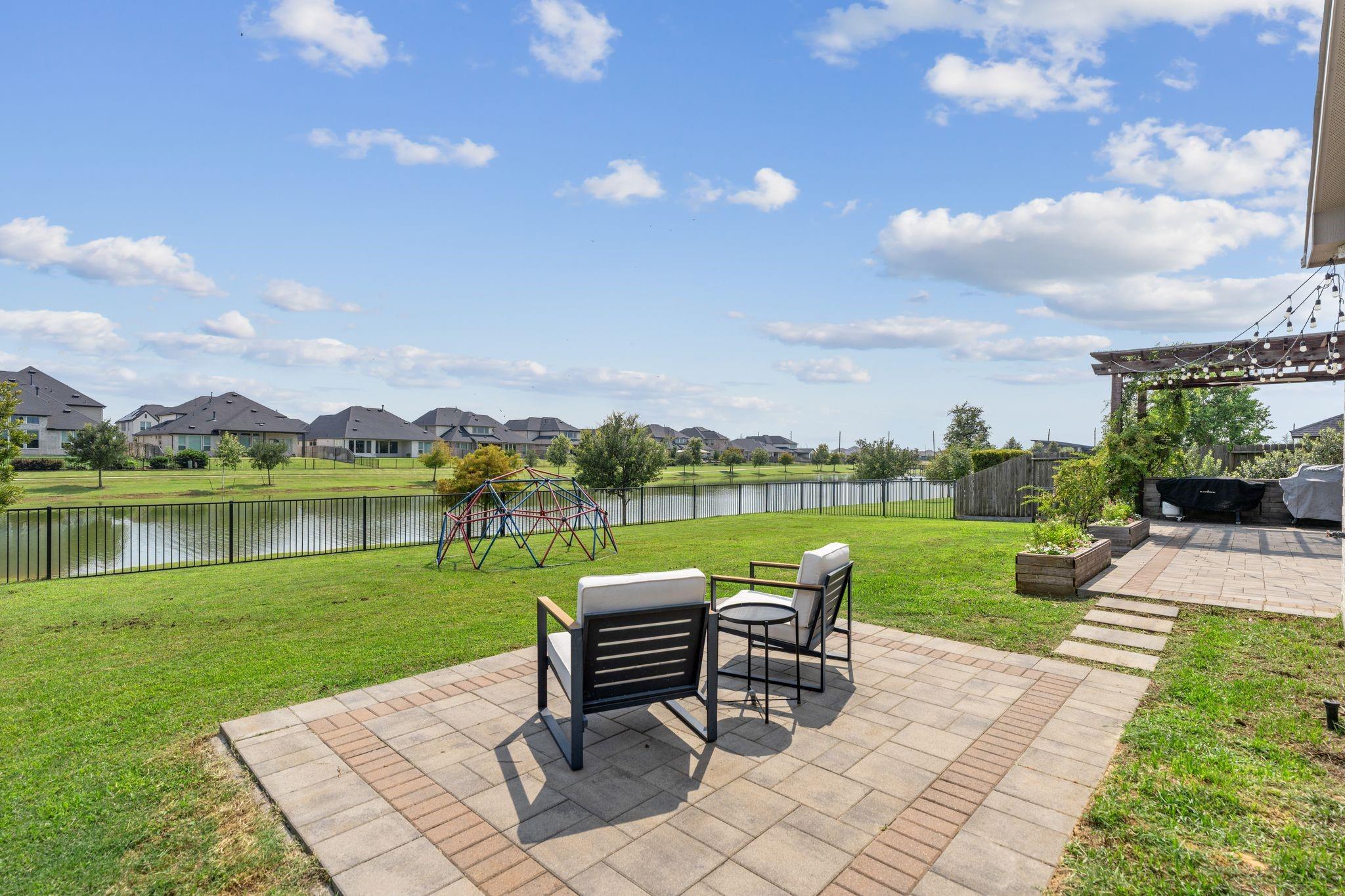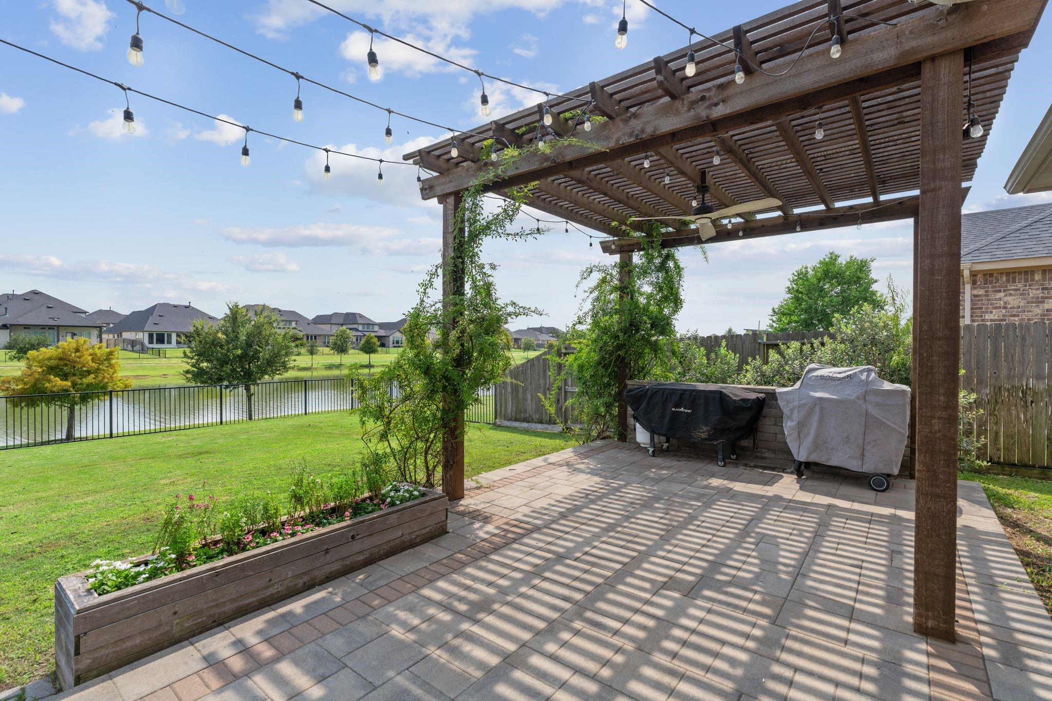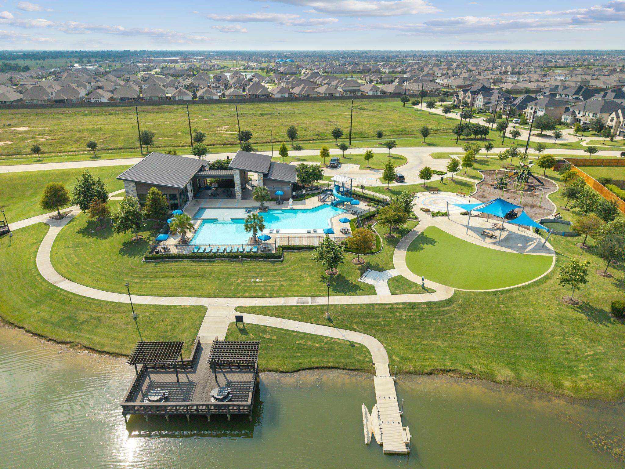 1.7% TAX RATE in KATY ISD! Welcome to 444 Ripple Edge Court in the desirable gated Lake House community of Katy, TX! This stunning two-story brick home sits on a lakefront lot and offers 4 bedrooms, 3.5 baths, a 4-car garage, a front porch, and an open-concept floor plan perfect for entertaining. The gourmet kitchen features a large island with breakfast bar, granite countertops, crisp white cabinetry, designer backsplash, double ovens and a gas cooktop. Spacious breakfast area encompassed by windows and a spacious living room with fireplace and picture windows overlooking the lake! The primary suite offers a spa-inspired ensuite bathroom and lakeviews from your window. Guest bedroom located downstairs with ensuite! Enjoy a spacious game room, media room, a full bath, and two secondary bedrooms upstairs. Outdoor living shines with a covered patio, extended pavers, and gazebo, all with plenty of green space for play or pets.