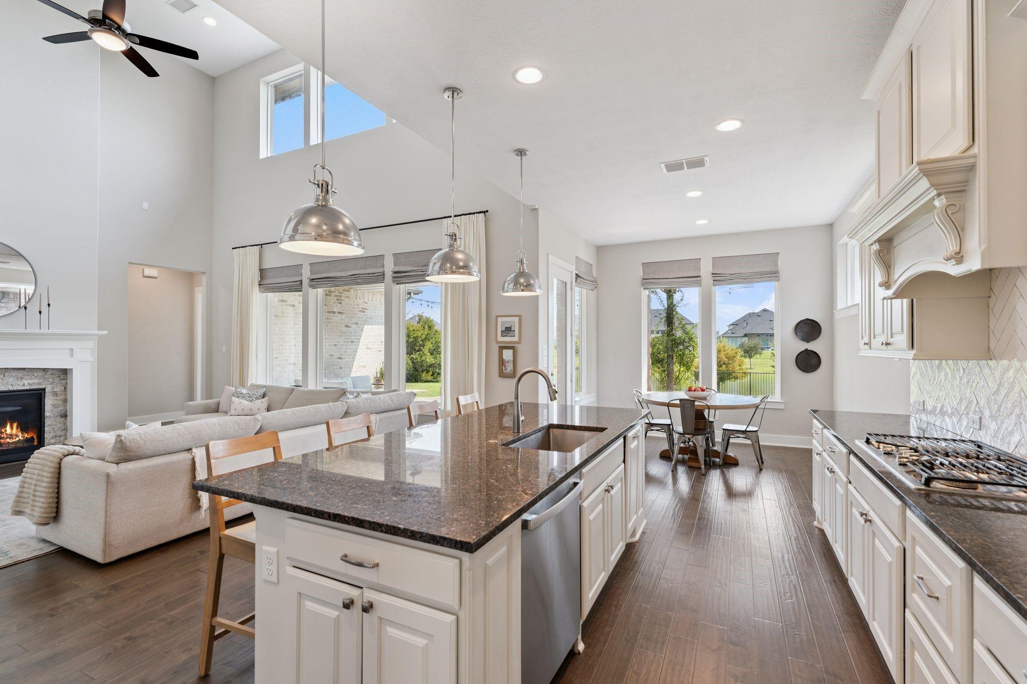 InteriorFireplace:1/Gaslog FireplaceFloors:Carpet,Engineered Wood,TileCountertop:GraniteBathroom Description:Full Secondary Bathroom Down,Half Bath,Primary Bath: Double Sinks,Primary Bath: Separate Shower,Primary Bath: Soaking Tub,Secondary Bath(s): Double Sinks,Secondary Bath(s): Shower Only,Secondary Bath(s): Tub/Shower Combo,Vanity AreaBedroom Desc:2 Bedrooms Down,En-Suite Bath,Primary Bed - 1st Floor,Walk-In ClosetKitchen Desc:Breakfast Bar,Butler Pantry,Island w/o Cooktop,Kitchen open to Family Room,Walk-in PantryRoom Description:Breakfast Room,Butlers Pantry,Entry,Family Room,Formal Dining,Gameroom Up,Home Office/Study,Living Area - 1st Floor,Media,Utility Room in HouseHeating:Central Gas,ZonedCooling:Central Electric,ZonedConnections:Electric Dryer Connections,Washer ConnectionsDishwasher:YesDisposal:YesCompactor:NoMicrowave:YesRange:Gas CooktopOven:Double Oven,Electric OvenIce Maker:NoEnergy Feature:Attic Vents,Ceiling Fans,Digital Program Thermostat,Energy Star Appliances,Energy Star/CFL/LED Lights,Energy Star/Reflective Roof,High-Efficiency HVACInterior:Alarm System - Owned,Crown Molding,Dry Bar,Formal Entry/Foyer,High Ceiling,Window Coverings