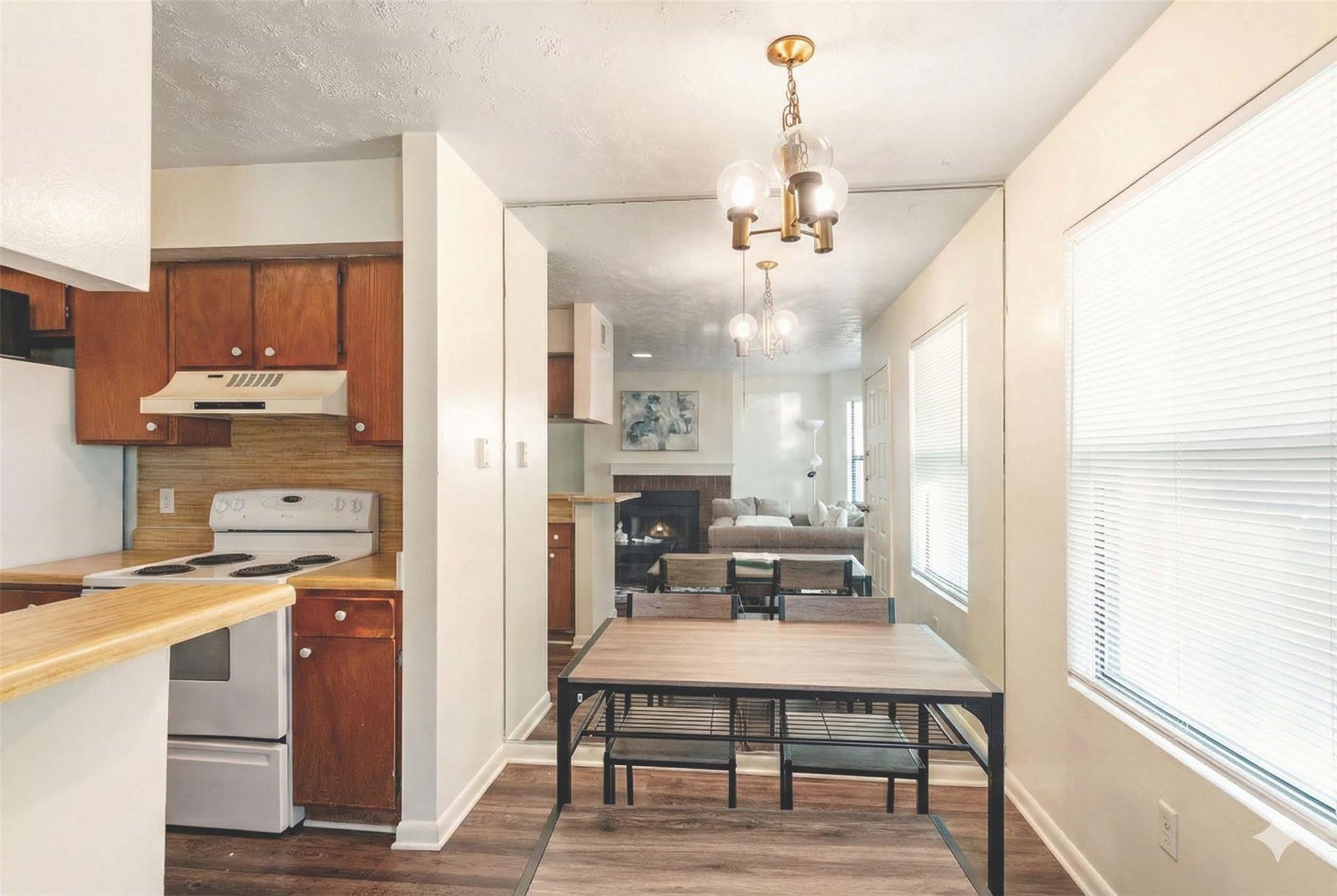 FIRST-FLOOR 1 bed / 1 bath Village on the Creek condo with approx. 586 sq ft, in a location that stays in demand near Texas A&M and the bus route. Inside, you’ll find wood-look flooring, a comfortable living area with a wood-burning fireplace, and a functional kitchen layout with an eating bar flowing into the dining space. The oversized bedroom includes a walk-in closet, and the bathroom has washer/dryer connections for easy in-unit laundry setup. Step outside to your private covered patio overlooking the community courtyard/greenspace — a peaceful little spot to decompress (or pretend you’re the main character). This condo is nestled in the heart of the B/CS area, conveniently located for whatever your day brings.