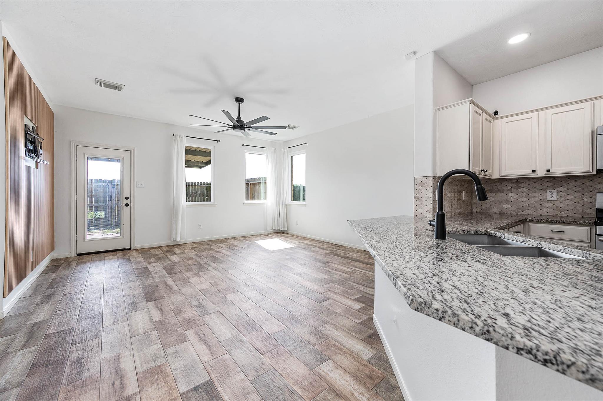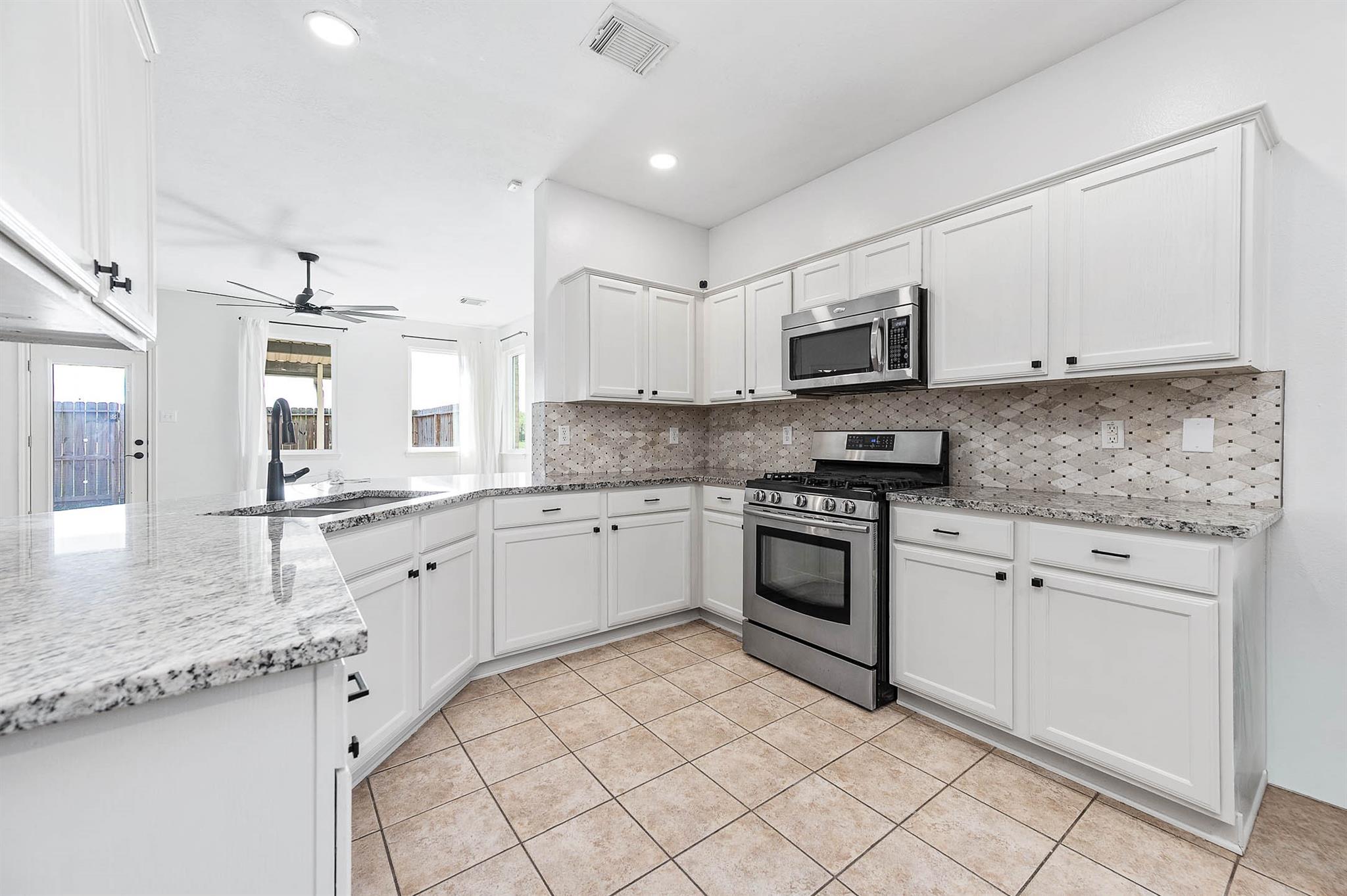 Welcome to this recently updated townhouse with no back neighbors! Enjoy the serene surroundings close to walking trails where deer and wildlife roam. The large kitchen features granite countertops and an oversized pantry, with appliances included. This 4-bed, 3-bath home boasts over 2200 sqft, with a private backyard and covered patio for relaxation. Easy access to Beltway 8 and 146 for a convenient commute. The primary bedroom offers a tray ceiling, walk-in closet, and a luxurious bath with separate shower and tub. Don't miss out on this gem with gate access to walking trails!