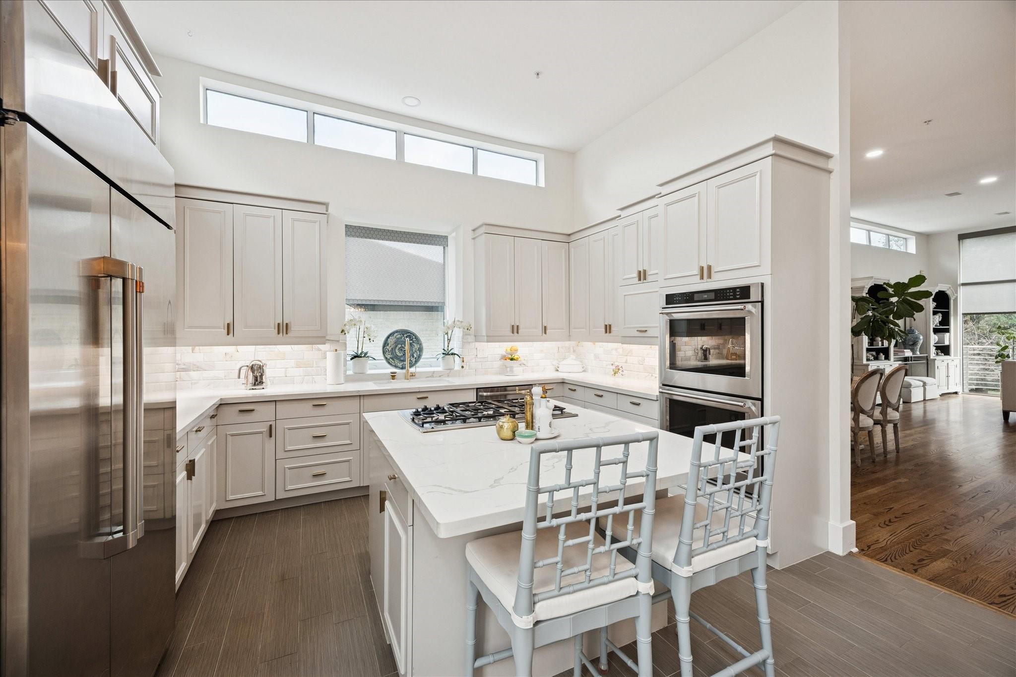 InteriorFireplace:1/Gaslog Fireplace,Wood Burning FireplaceFloors:Marble Floors,Tile,WoodCountertop:QuartzBathroom Description:Full Secondary Bathroom Down,Half Bath,Primary Bath: Separate Shower,Primary Bath: Soaking TubBedroom Desc:1 Bedroom Down - Not Primary BR,2 Bedrooms Up,En-Suite Bath,Primary Bed - 3rd Floor,Walk-In ClosetKitchen Desc:Island w/o CooktopRoom Description:1 Living Area,Breakfast Room,Entry,Family Room,Formal Dining,Guest Suite,Living Area - 2nd Floor,Utility Room in HouseHeating:Central GasCooling:Central ElectricWasher/Dryer Conn:YesDishwasher:YesDisposal:YesCompactor:NoMicrowave:YesRange:Gas CooktopOven:Double Oven,Electric OvenIce Maker:YesAppliances:Dryer Included,Electric Dryer Connection,Gas Dryer Connections,Refrigerator,Washer IncludedEnergy Feature:Ceiling Fans,North/South ExposureInterior:2 Staircases,Alarm System - Owned,Balcony,Central Vacuum,Elevator,Fire/Smoke Alarm,High Ceiling,Intercom System,Window Coverings