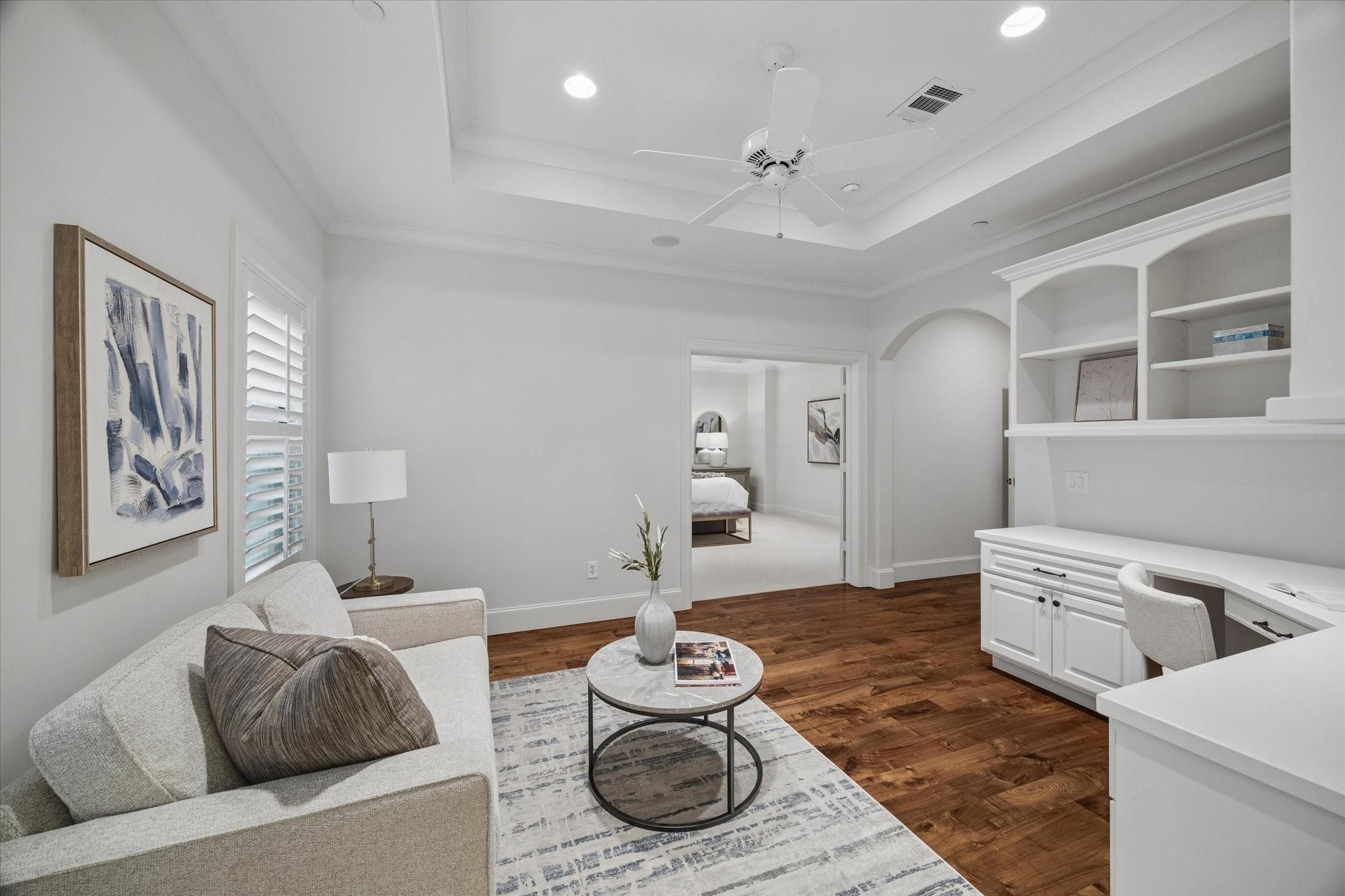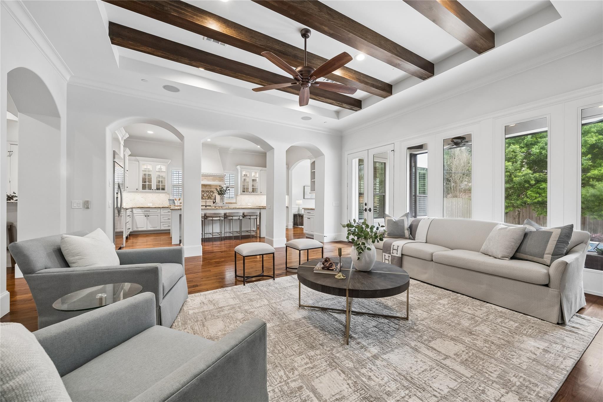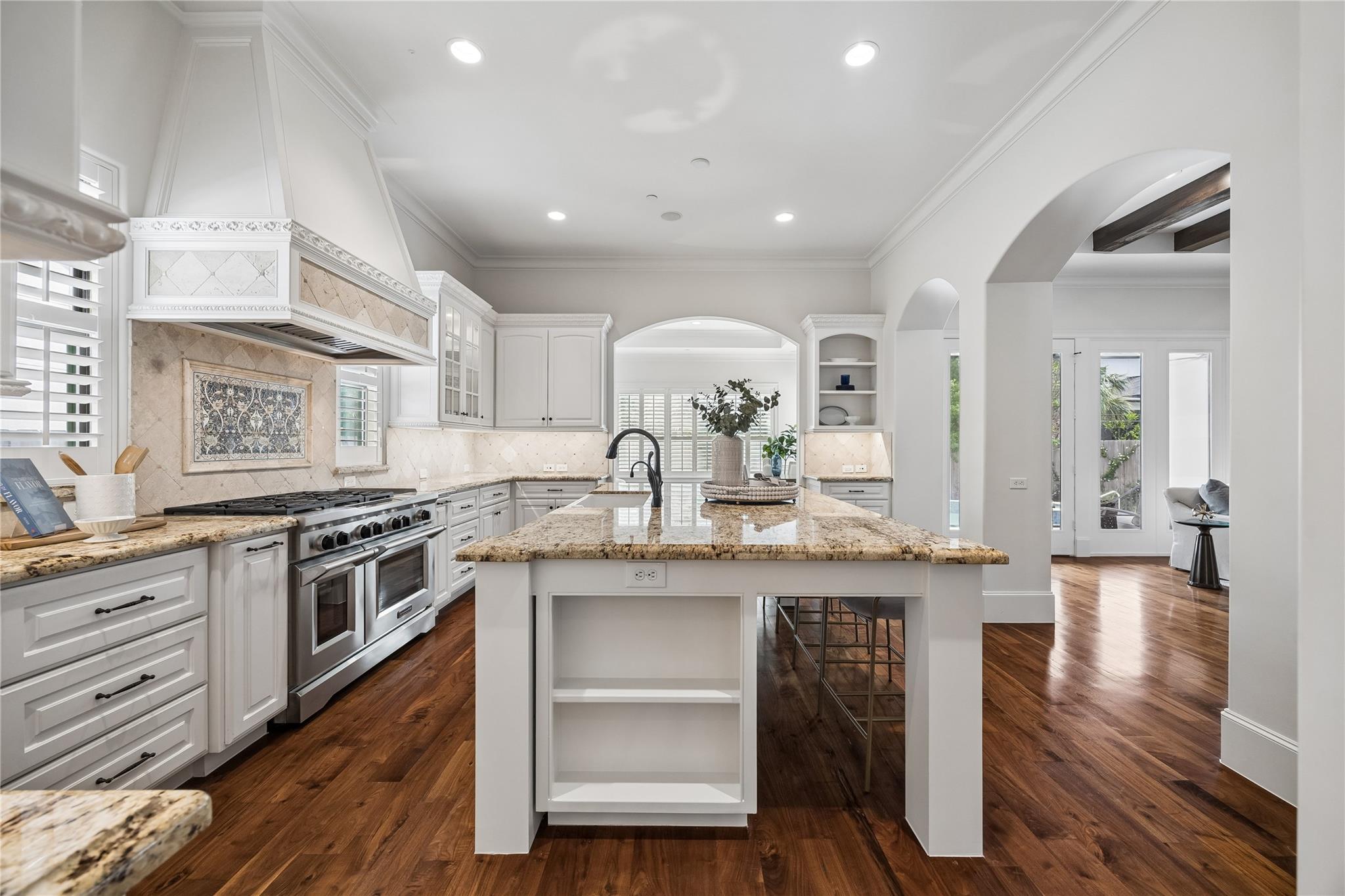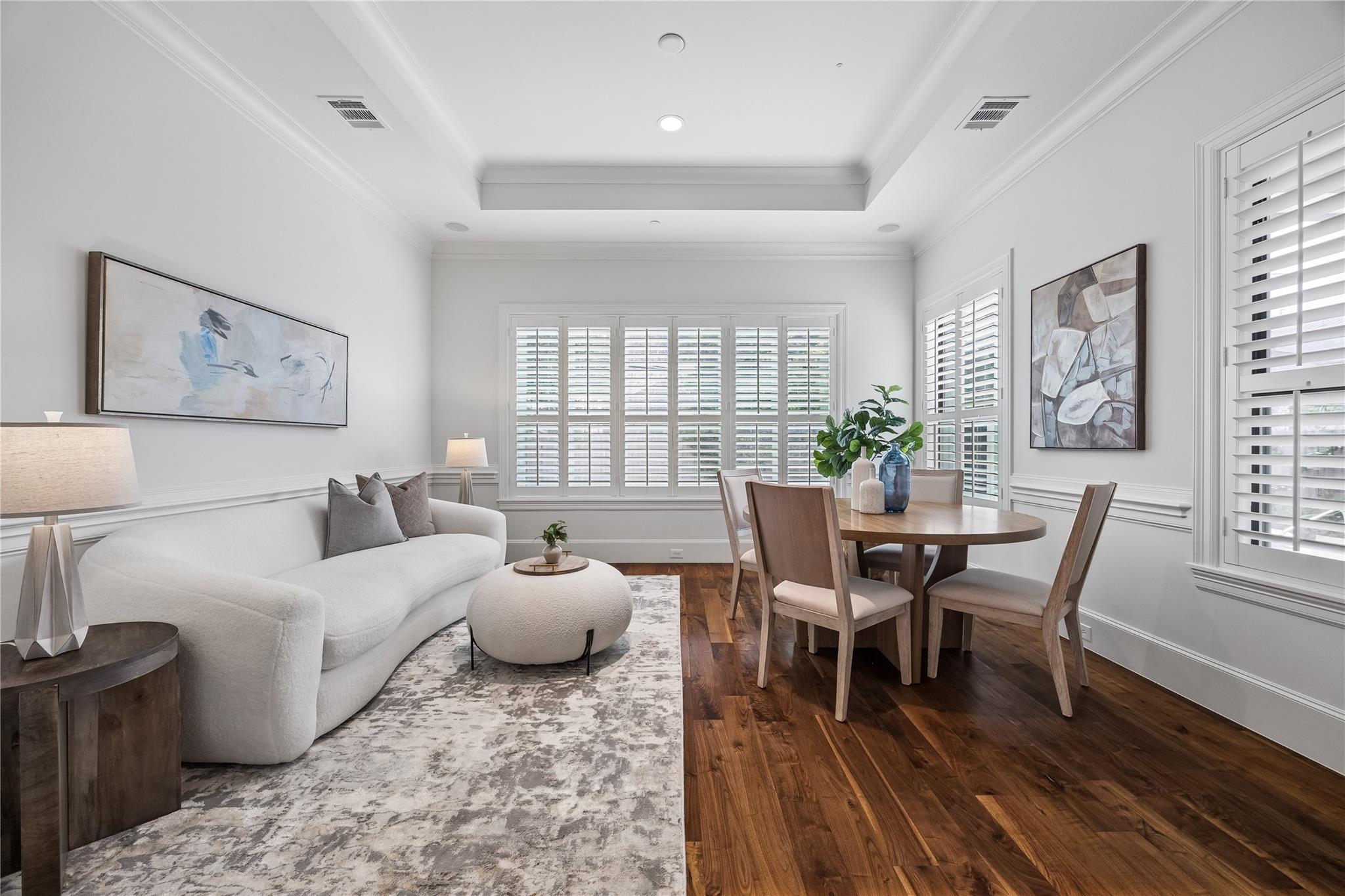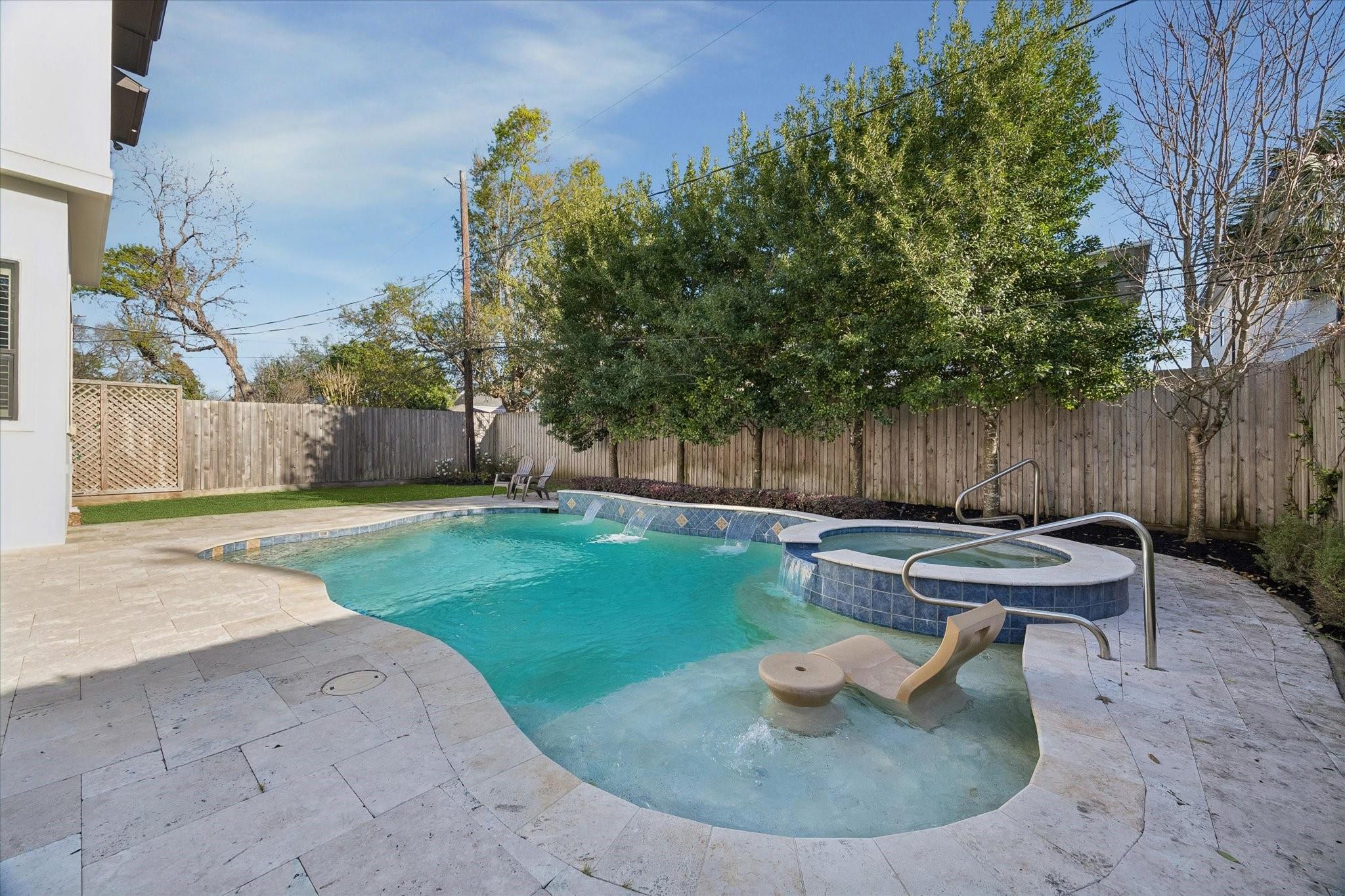 Custom built in the coveted 4500 block of Bellaire, this beautifully maintained home blends refined design with thoughtful functionality. A dramatic 2-story foyer welcomes you inside, where walnut floors extend throughout the living areas. Recent lighting updates enhance multiple spaces, while the freshly painted study & refreshed kitchen island add a current feel. Elegant entertaining spaces include a formal dining room, oversized breakfast room, & screened porch. The chef’s kitchen features a large island, 48” pro range, generous prep space, & wet bar. A custom staircase leads to a game room, half-bath, ample cabinetry, & dedicated media room. All bedrooms are upstairs, including the spacious primary suite with private sitting area, expansive bath, & walk-in closet. The screened porch overlooks the saltwater pool & creates a seamless indoor-outdoor setting. With its elevated craftsmanship, upgraded specs, & prime location, this home offers a rare combination of luxury & livability.