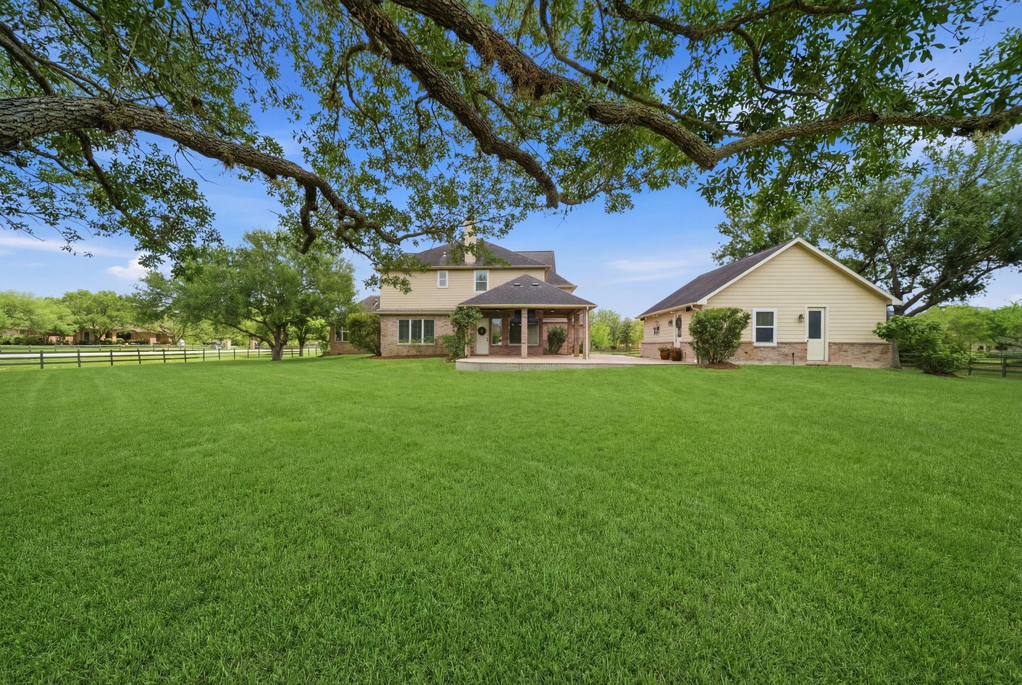 Nestled in the sought-after Fulbrook community, this impressive two-story home perfectly blends space, comfort, and privacy behind a fully fenced yard with electronic gate entry. Offering 6 bedrooms and 5.5 baths, the layout is ideal for both everyday living and entertaining. The inviting living area off the kitchen and breakfast nook features a beautiful stone fireplace, while the kitchen delights with white cabinetry, granite countertops, stainless steel appliances, and double gas ovens. The first-floor primary suite includes a spacious ensuite bath and a large walk-in closet with built-ins. Upstairs are five bedrooms—three with ensuite baths—plus a game room and separate study. The ensuite bathroom in fifth bedroom remains unfinished, with plumbing, framing, and sheetrock in place for a future full bath. Additional highlights include an oversized 21x12 laundry room, a detached garage with a 25x12 home gym, and a tree-shaded backyard ideal for outdoor gatherings or quiet relaxation!