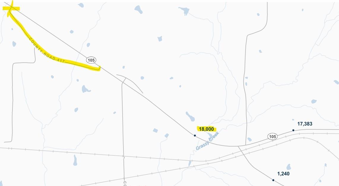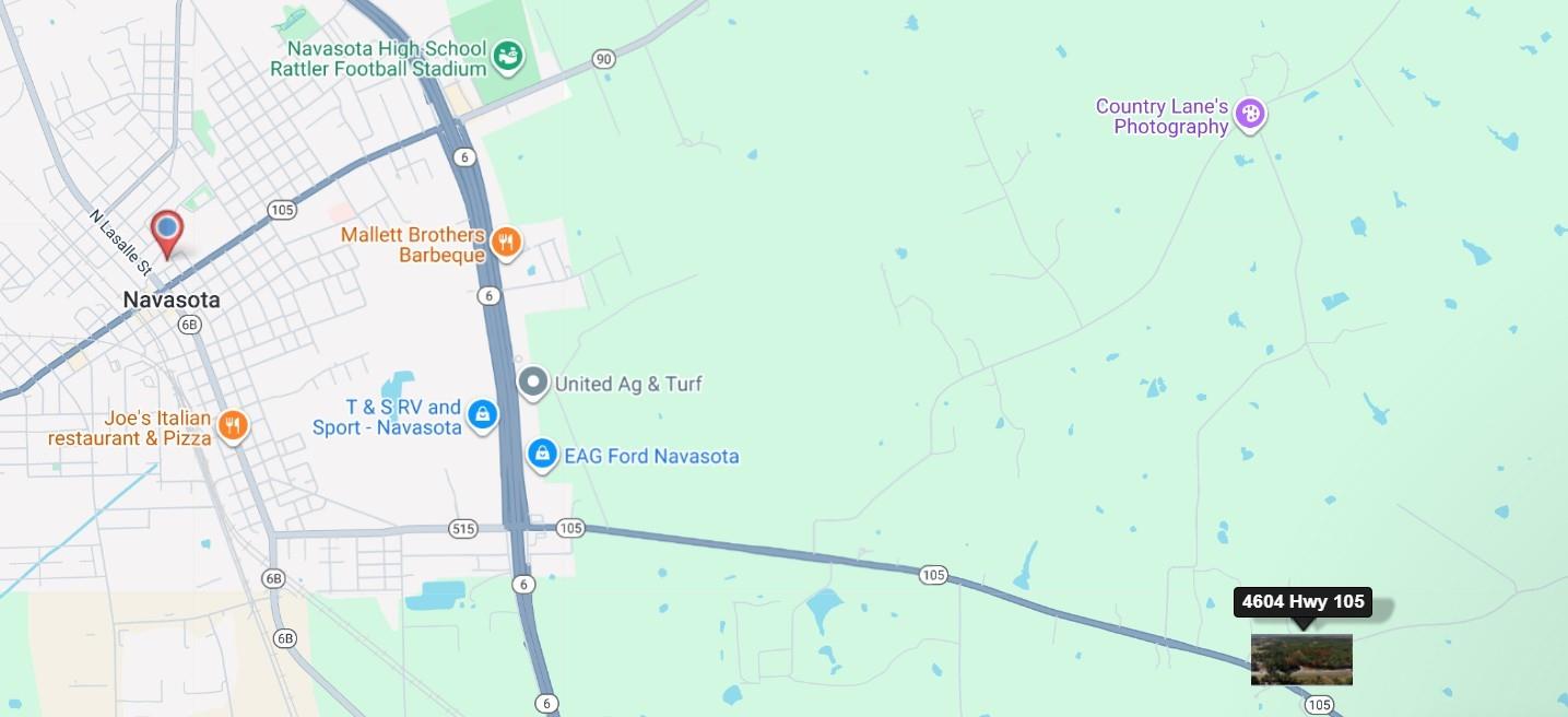 Rare location, 5.2 +/- acres located 2.5 miles east of Navasota at the Hwy 105 & CR 417 intersection! Property has approx. 520' of frontage on County Rd 417, is unrestricted and has mixed-use potential. Located minutes from Navasota and approx. 3.5 miles west of the Aggie Expressway...18,000 Average Annual Daily Traffic. Mid-South Electric and Fiber Internet, public water. Beautiful property with rolling topography, mixed species of mature trees and sandy soils. Frontage along two thoroughfares, ideally suited for mixed-use including, residential, commercial, housing or multi-family housing, tiny house community, RV park, storage facilities, warehousing or general business use. A contiguous 16 acre tract is also available Close commute to Navasota, Bryan/College Station, Brenham, Montgomery, Houston & George Bush Intercontinental Airport. Minutes from Shopping, Meals & Entertainment, lodging & Texas A&M University!