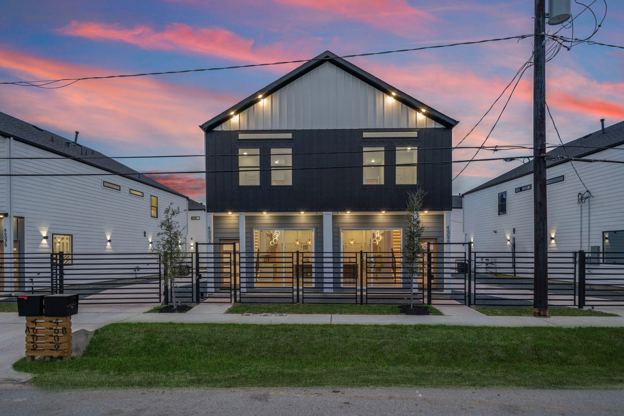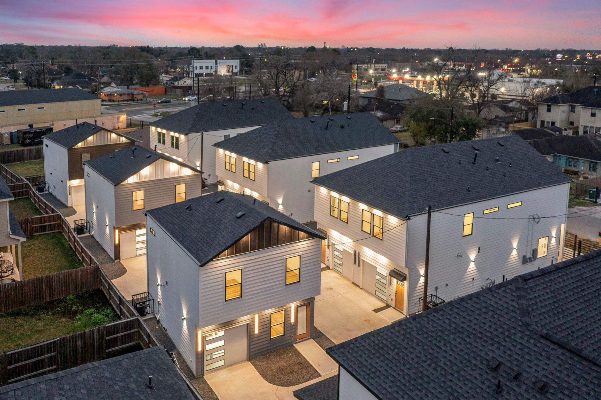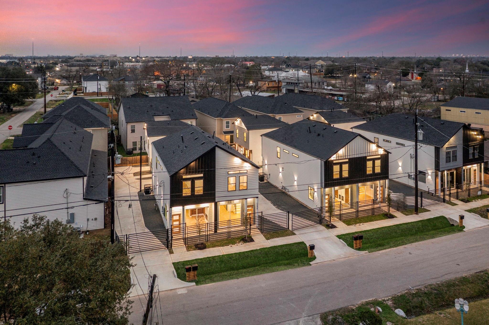 Welcome to the Ritz-Carlton of Luxury Triplex in the Houston Medical Center Opportunity Zone. First-of-its-kind luxury triplex features a duplex + ADU on one lot (single HCAD #) for the low low low listed price. Each duplex unit: 3 beds, 2.5 baths, 1-car garage; ADU: 2 beds, 1.5 baths, 1-car garage; a grand total of 8 bedrooms & 7 bathrooms. Professionally designed interiors floor plan and exterior landscaping. Features: All rooms & bathrooms wired for audio, smart electric fireplace w/ quartz wall surround in the living room, 4ft x 8ft porcelain slab tile walls, 2" wrought iron gates, quartz countertops & backsplash, herringbone flooring, gas tankless water heaters, upgraded epoxy finished garage floors, spray foam exterior wall insulation, high ceilings, custom cabinets, extensive smart security pkg, smart lighting, & more. This is perfect for 1st time investor. See attached brochure & schedule your tour today. Price is negotiable depending selections & upgrades packages selected.