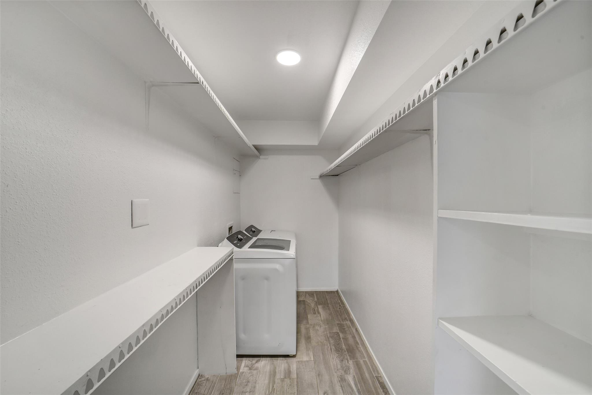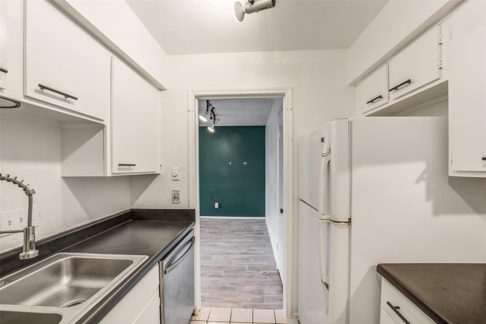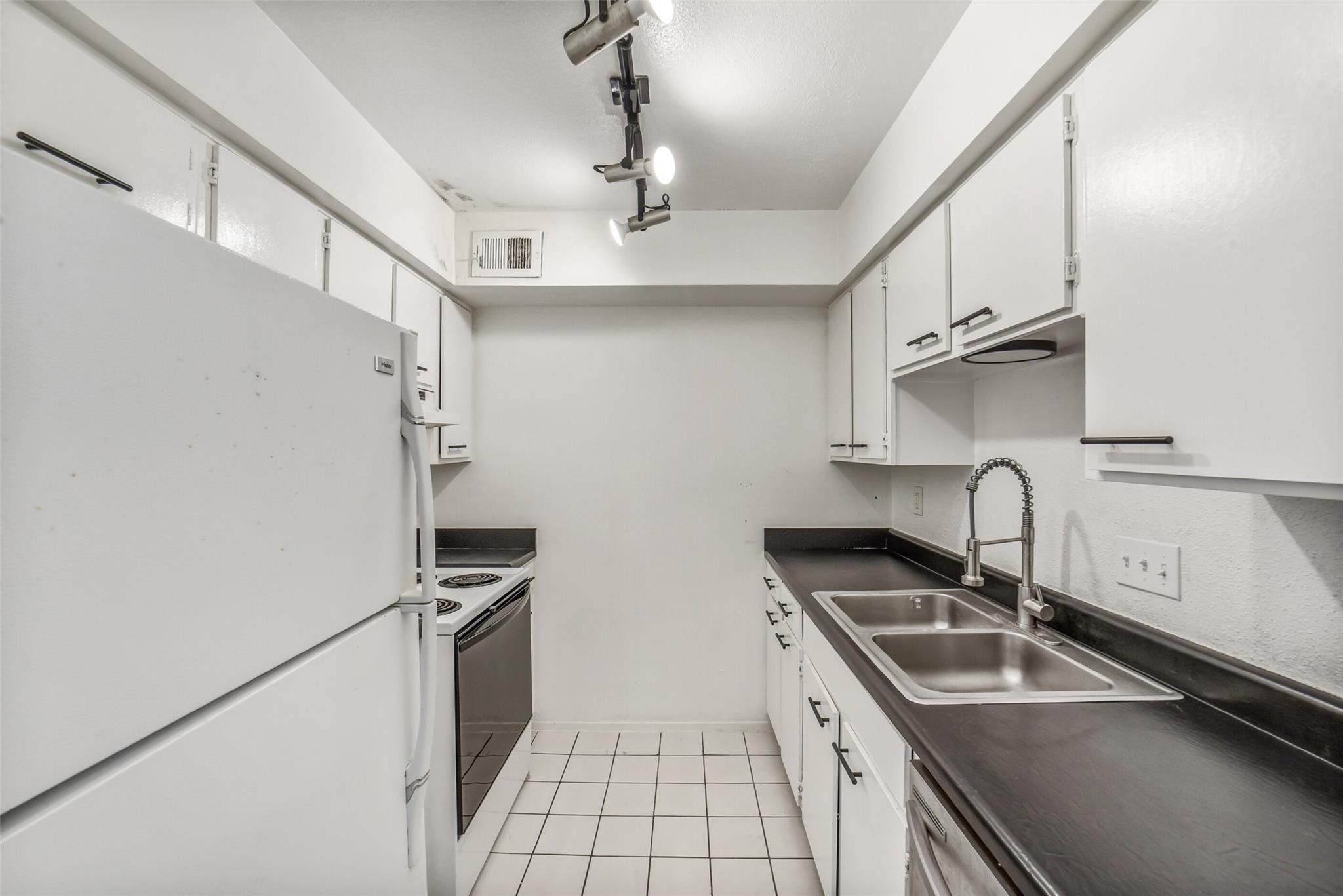 Charming 1 bedroom, 1 bath condo located in a quiet, well-maintained community. This 3rd floor unit boasts open-concept living/dining rooms, wood-look tile flooring, a cozy fireplace, large windows, and a walk-in closet. The refrigerator, washing machine and dryer are included! Residents enjoy two swimming pools and assigned, covered parking. Ideally situated with easy access to Downtown, the Med Center, premier shopping and dining, and major thoroughfares for a convenient commute. The HOA fee includes all utilities.