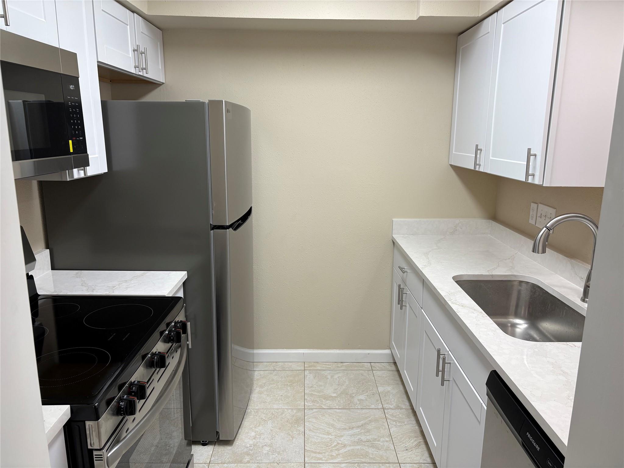 Charming 1-bedroom, 1-bath first-floor condo with a private patio, freshly updated from top to bottom. Updates include tile flooring, sleek doors, modern kitchen cabinets, elegant countertops, updated bathroom vanities, and all stainless steel appliances. A perfect blend of style and comfort, ready for you to move in!