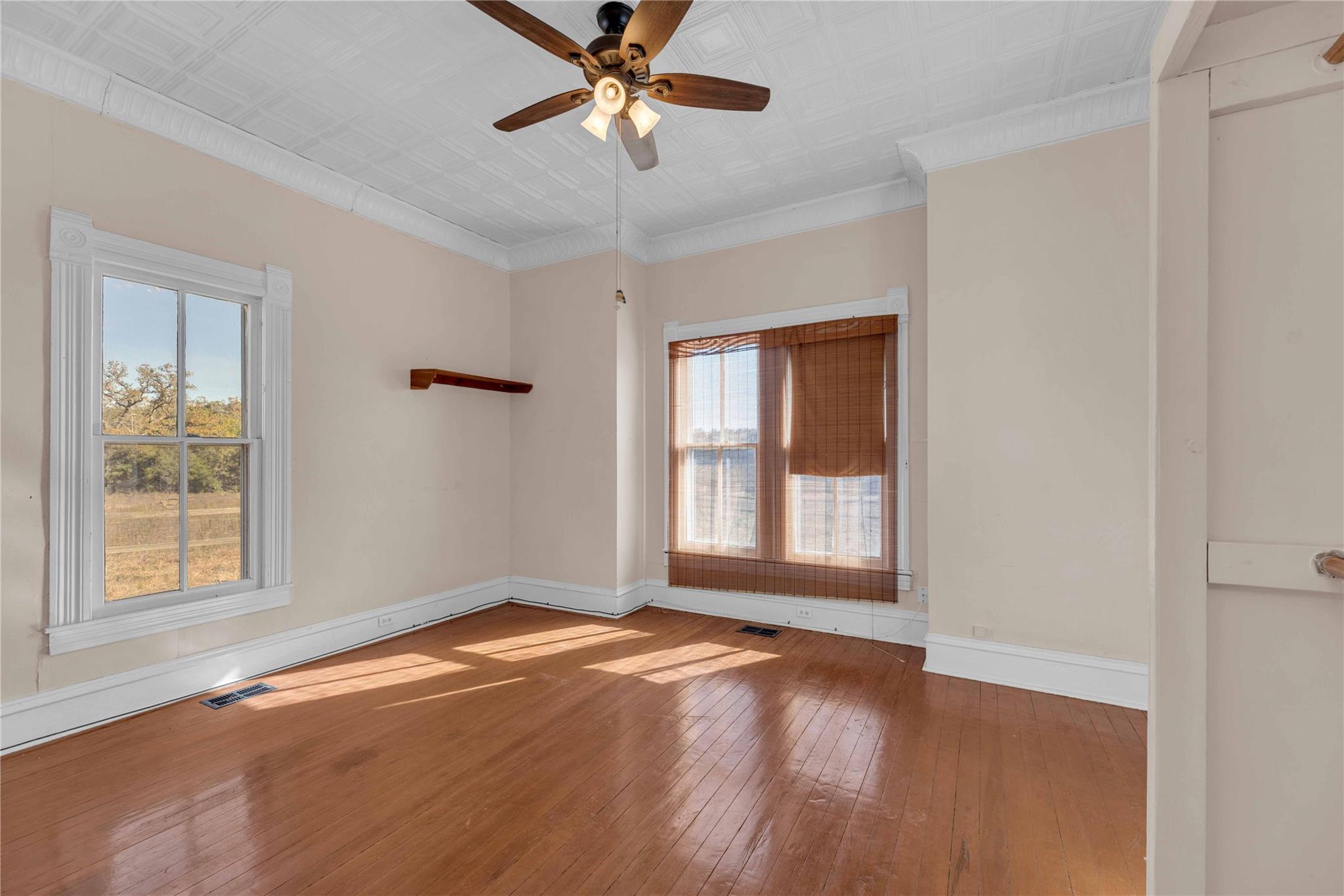 The bluff area of La Grange features +/- 100 acres of mostly raw land. This rolling land behind the bluff's edge sits at 390 feet in elevation and is a much sought after. Fantastic views, the road frontage is approximately +/- 1,800 feet. An 1846 Victorian home (1,328) square feet per FCAD), ornate-wooden front and back doors and original long-leaf pine flooring await you. High ceilings, central air and heat, two bedroom/one bath and a centrally located pot-belly wood-burning stove. Lots of light throughout the home and rooms are large. Numerous ponds and many massive Live Oaks, this property has outstanding views and is a Wildlife Corridor. Fenced and cross-fenced pastures of Agricultural Exemption is in good standing via a cattle/hay lease/healthy barn (55’ x 60’). The electric runs from the front pasture area to the back hay meadow. Reasonable restrictions exist for review to protect your investment. This is an estate and is pending a survey. The mineral estate is negotiable