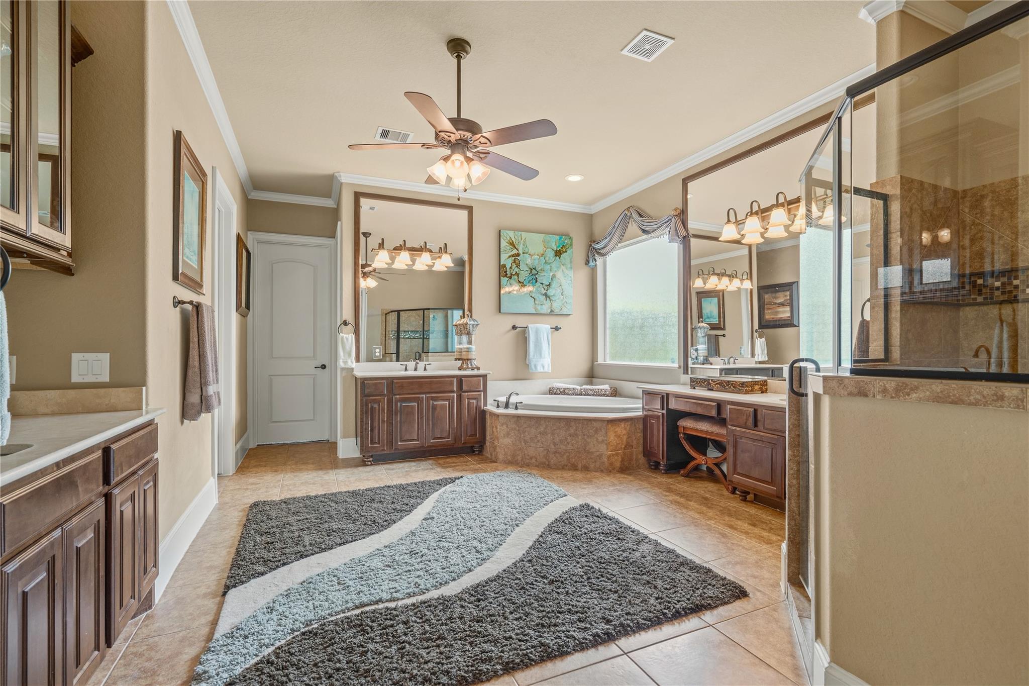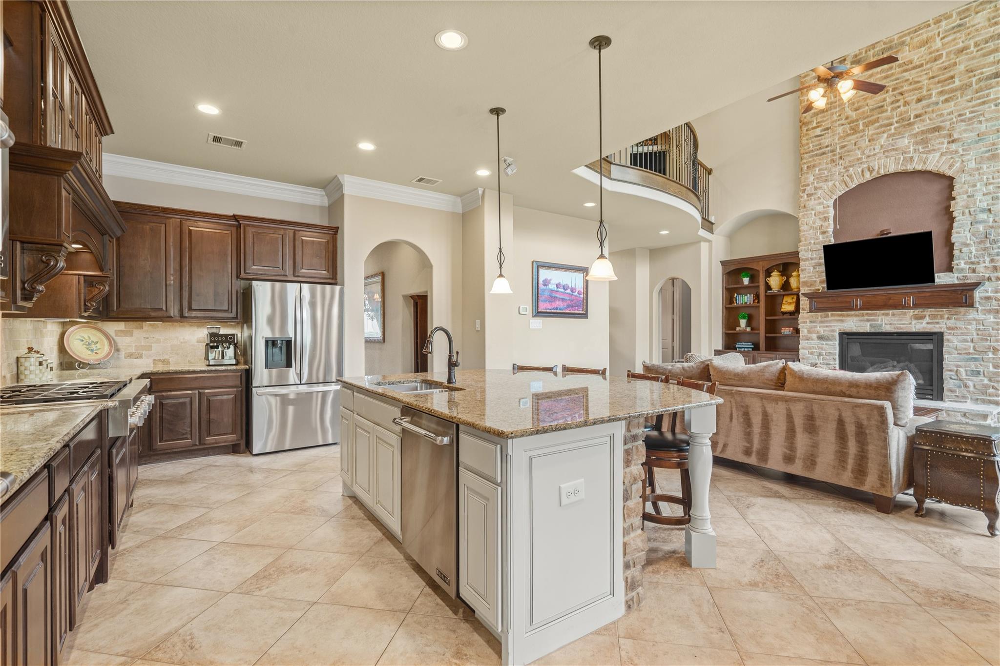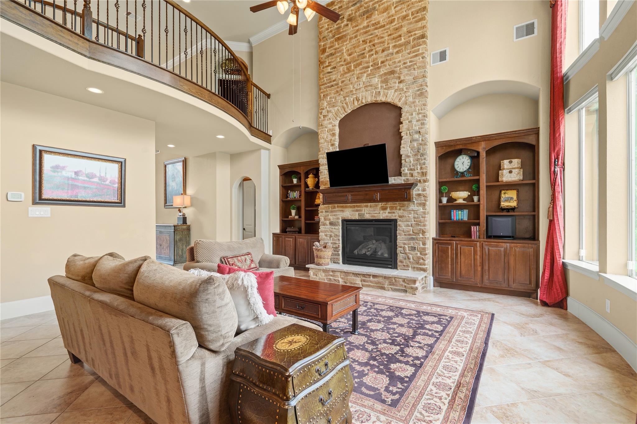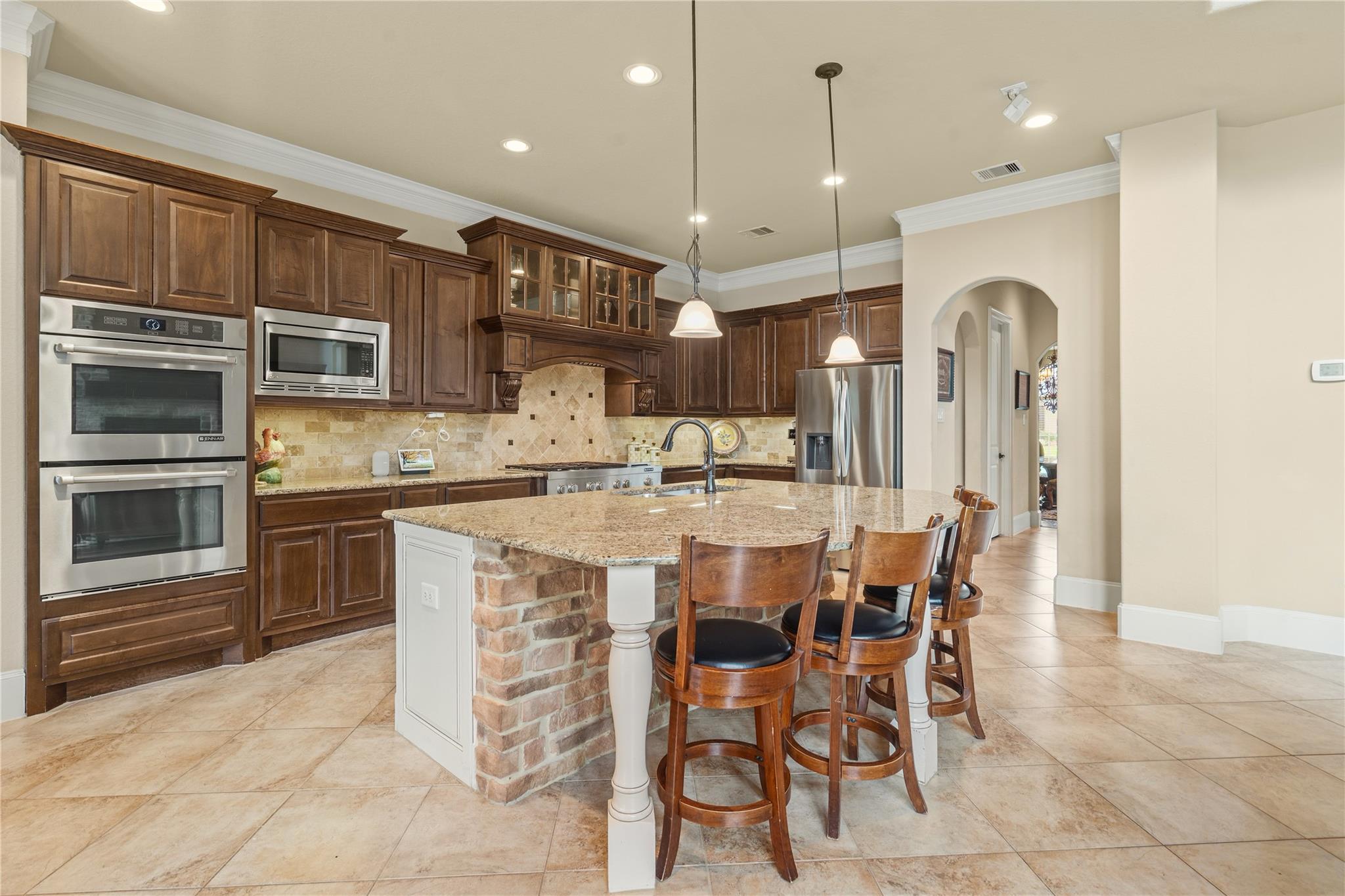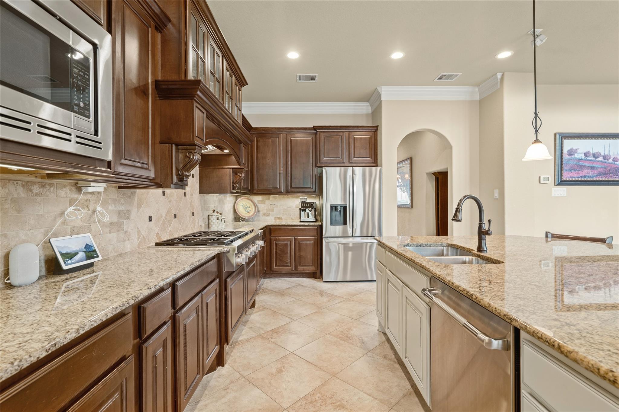 InteriorFireplace:1/Freestanding,Gas Connections,Gaslog FireplaceFloors:Carpet,Tile,WoodCountertop:GraniteBathroom Description:Full Secondary Bathroom Down,Half Bath,Primary Bath: Double Sinks,Primary Bath: Separate Shower,Primary Bath: Soaking Tub,Secondary Bath(s): Shower Only,Secondary Bath(s): Tub/Shower Combo,Vanity AreaBedroom Desc:2 Bedrooms Down,Primary Bed - 1st Floor,Sitting Area,Walk-In ClosetKitchen Desc:Breakfast Bar,Butler Pantry,Island w/o Cooktop,Kitchen open to Family Room,Pantry,Pots/Pans Drawers,Soft Closing Cabinets,Under Cabinet Lighting,Walk-in PantryRoom Description:Breakfast Room,Butlers Pantry,Entry,Family Room,Formal Dining,Gameroom Up,Home Office/Study,Living Area - 1st Floor,Media,Utility Room in HouseHeating:Central GasCooling:Central ElectricConnections:Electric Dryer Connections,Washer ConnectionsDishwasher:YesDisposal:YesCompactor:NoMicrowave:YesRange:Gas CooktopOven:Double Oven,Electric OvenIce Maker:NoEnergy Feature:Attic Vents,Ceiling Fans,Digital Program Thermostat,High-Efficiency HVAC,Insulated/Low-E windowsInterior:Alarm System - Owned,Crown Molding,Fire/Smoke Alarm,Formal Entry/Foyer,High Ceiling,Window Coverings
