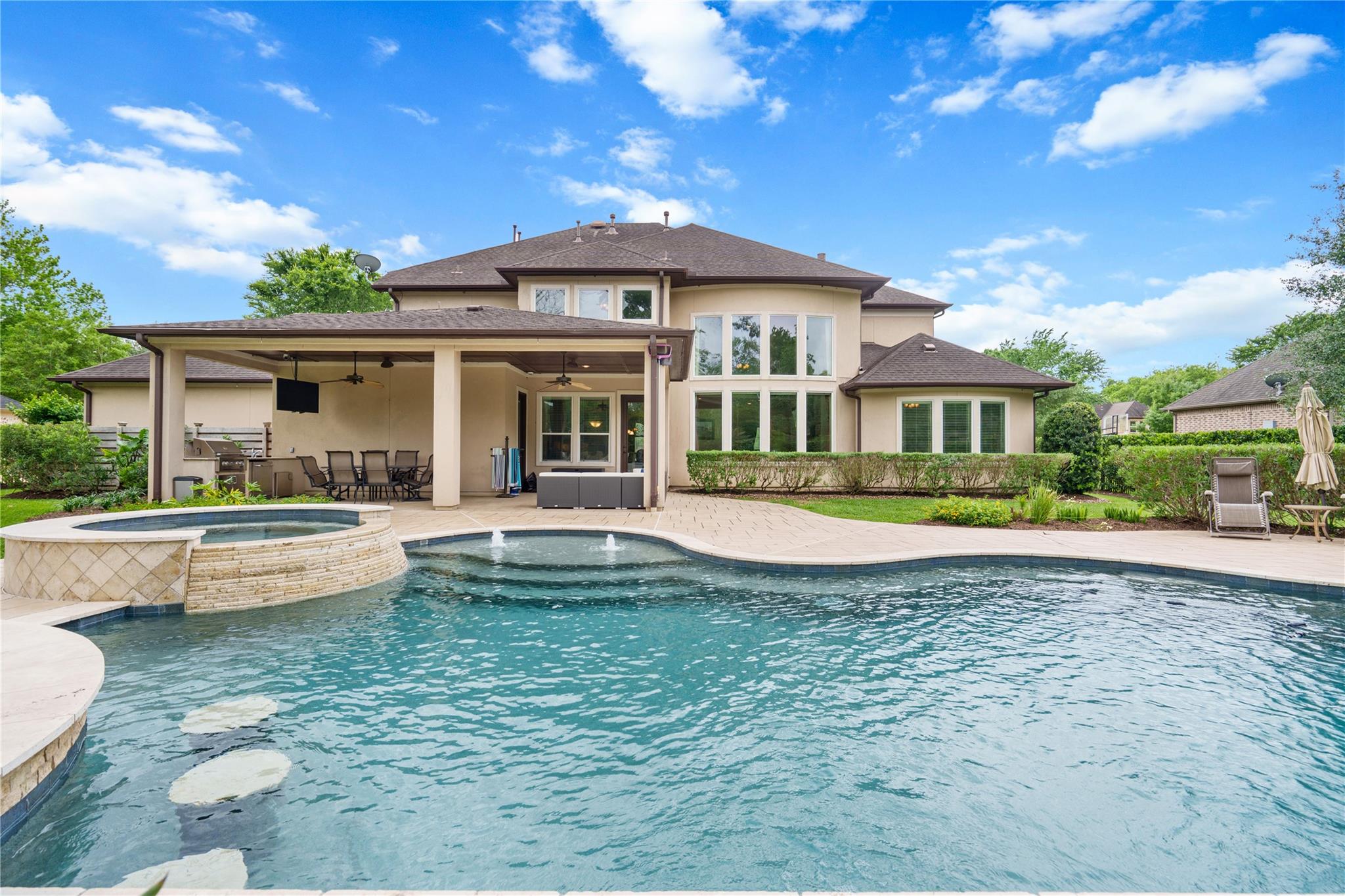 ExteriorRoof:CompositionFoundation:SlabPrivate Pool:YesPrivate Pool Desc:Gunite,Heated,In Ground,Pool With Hot Tub AttachedExterior Type:Stone,StuccoLot Description:In Golf Course Community,Subdivision LotGarage Carport:Auto Garage Door Opener,Double-Wide DrivewayWater Sewer:Public Sewer,Public Water,Water DistrictArea Pool:YesExterior:Back Yard,Back Yard Fenced,Covered Patio/Deck,Outdoor Kitchen,Patio/Deck,Side Yard,Spa/Hot Tub,Sprinkler System,Subdivision Tennis Court