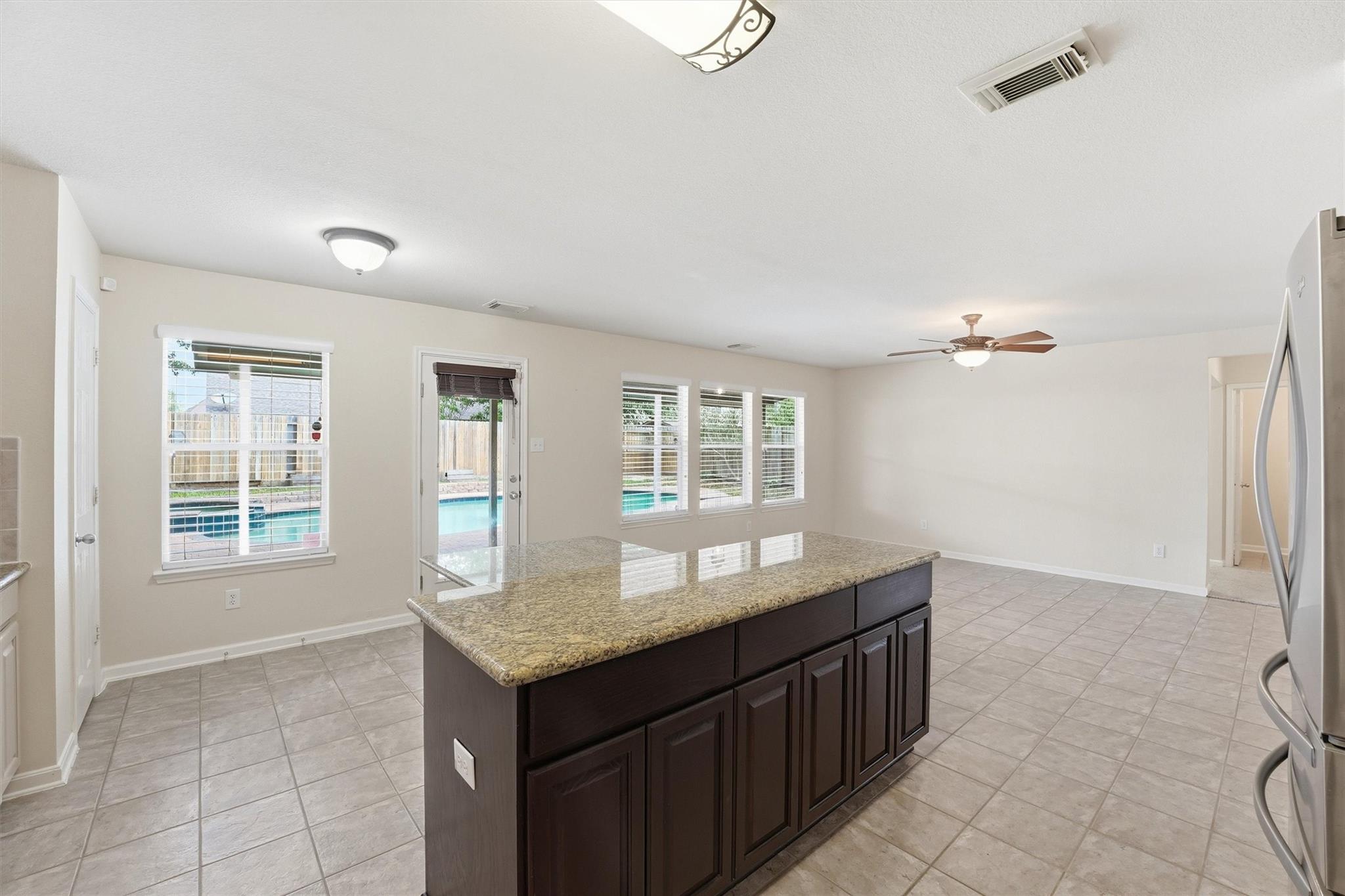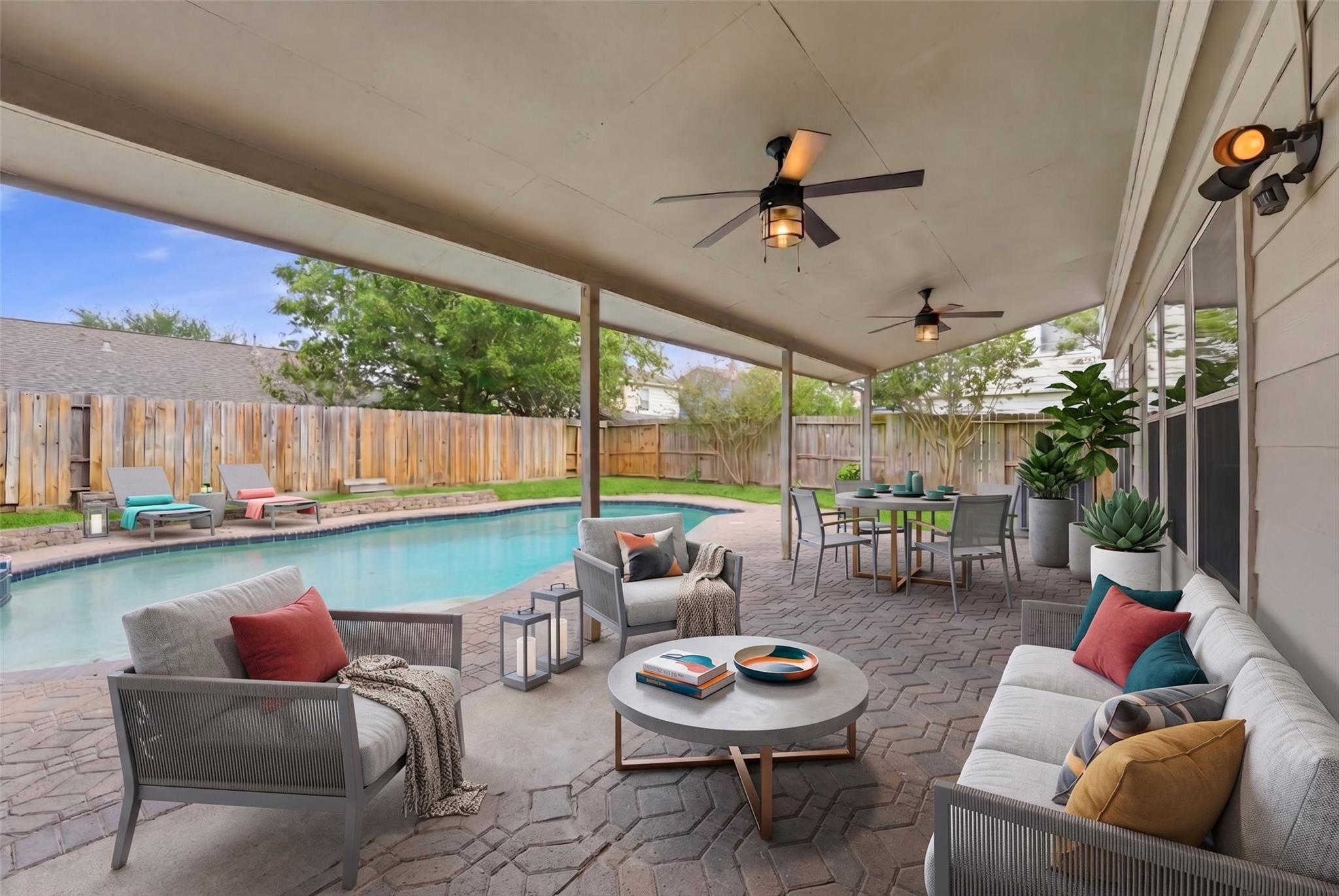 Welcome to this spacious 4-bedroom, 2.5-bath home designed for comfort and entertaining in mind. Nestled in an established neighborhood this beautiful house offers granite countertops, big master suite and a thoughtful layout great for everyday living. Reverse Osmosis water filter located at the kitchen sink. This beautiful house features a dedicated home office/study, formal living room and a big kitchen perfect for work and gatherings. Enjoy the inviting back patio and sparkling pool perfect for entertaining guests or simply relaxing after a long day. Conveniently located within walking distance to schools and close to local shopping, dining, everyday essentials, entertainment, and everyday conveniences with easy access to parks and outdoor recreation at nearby Jenkins Park and Baytown Nature Center. This house combines comfort, location and lifestyle.