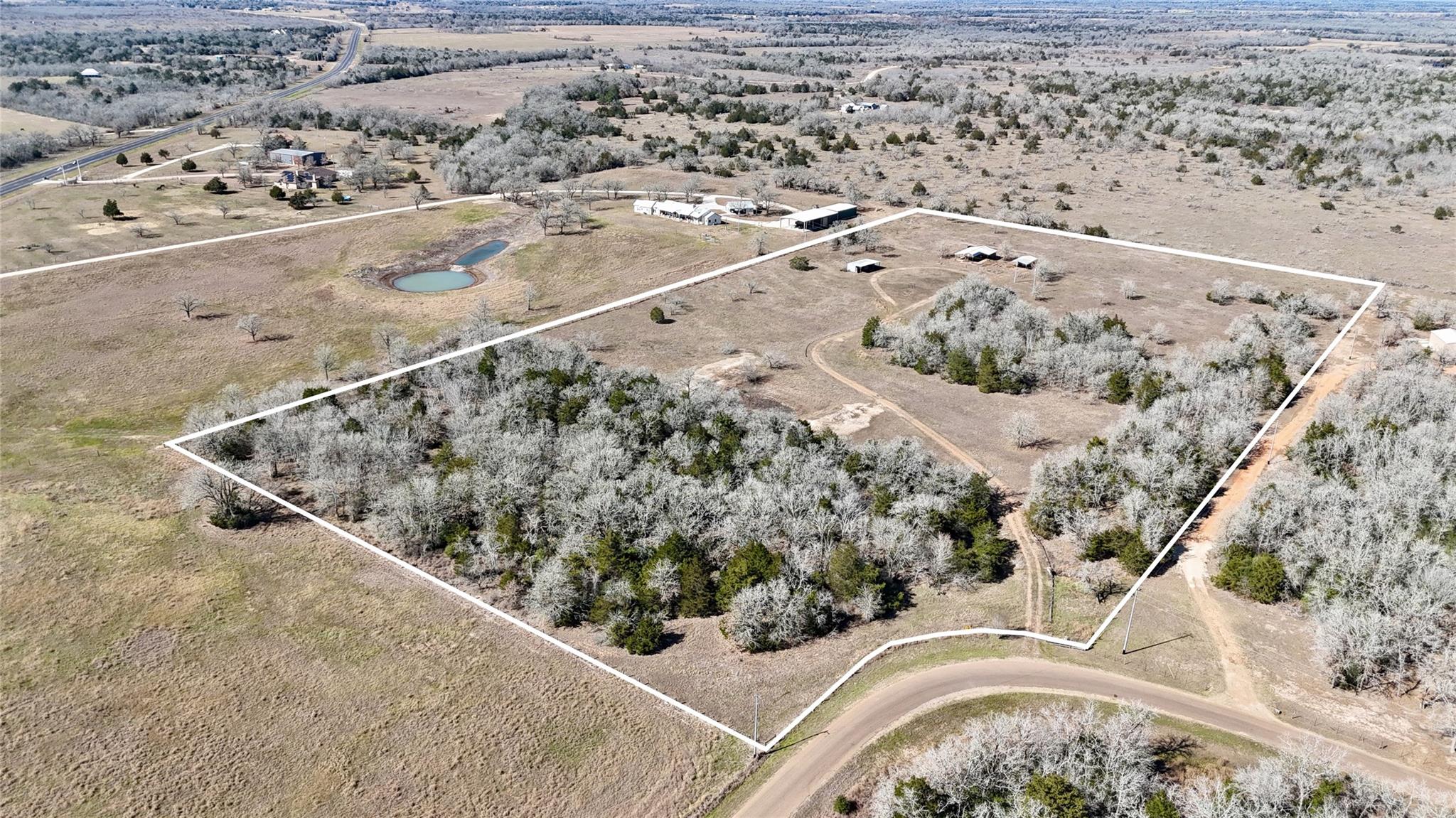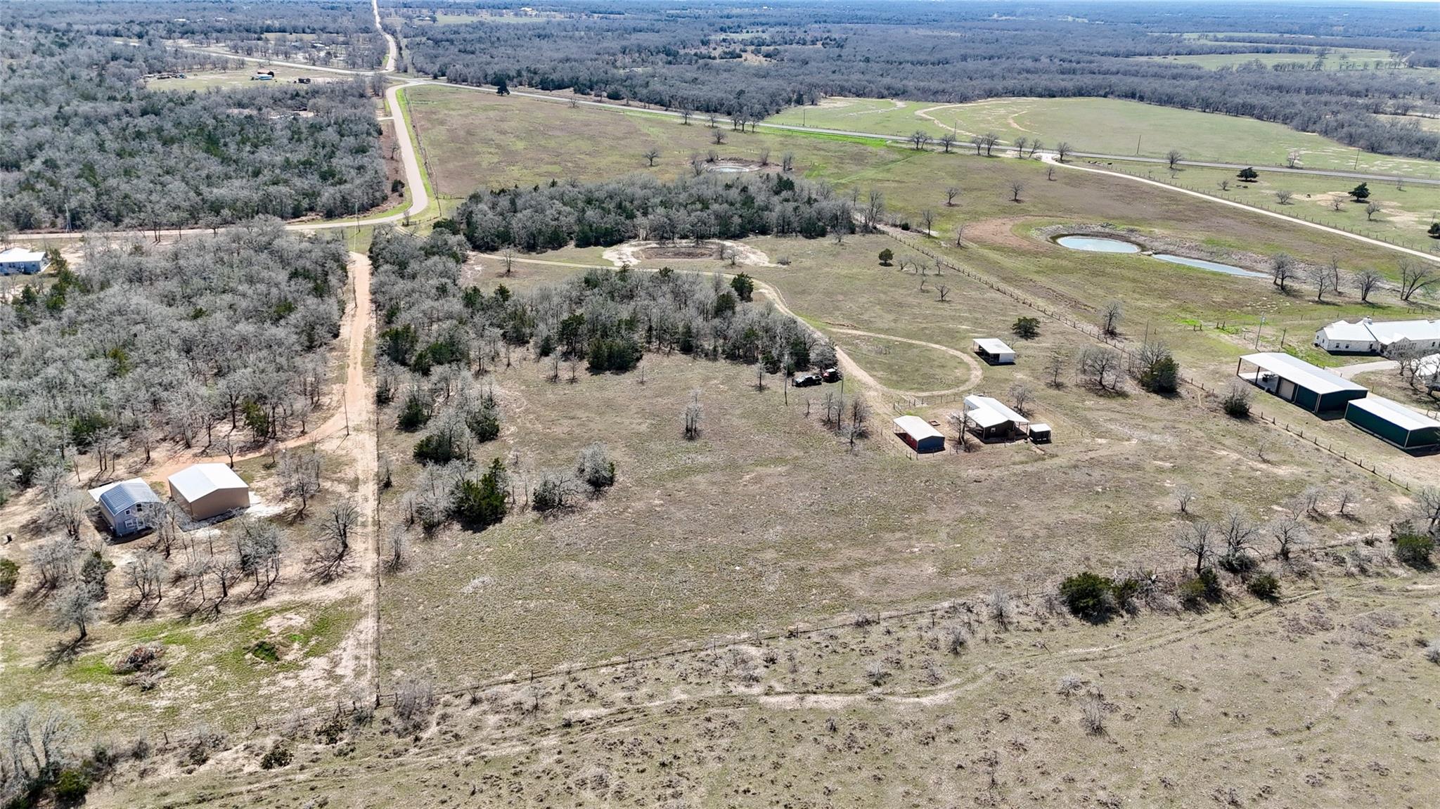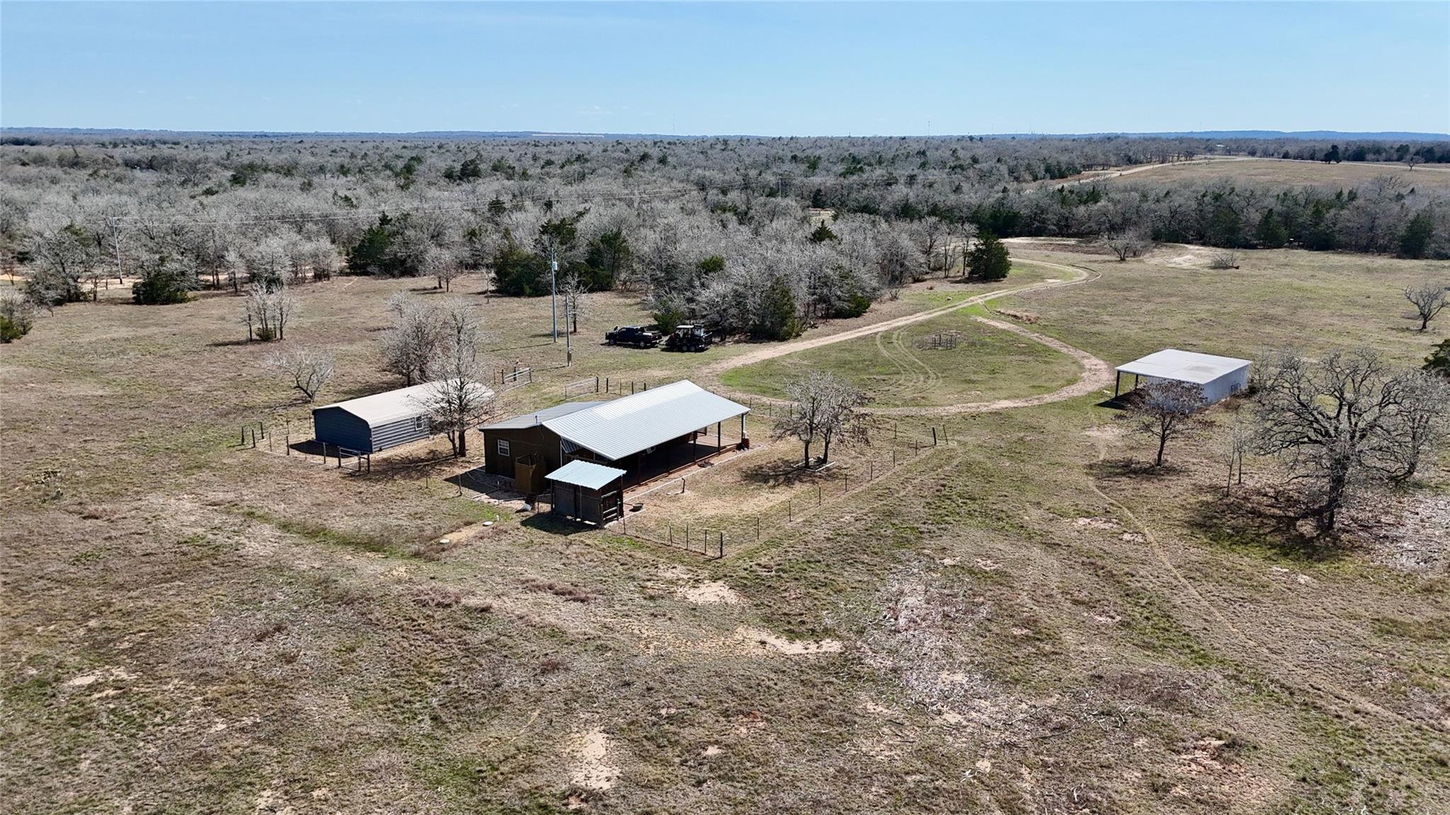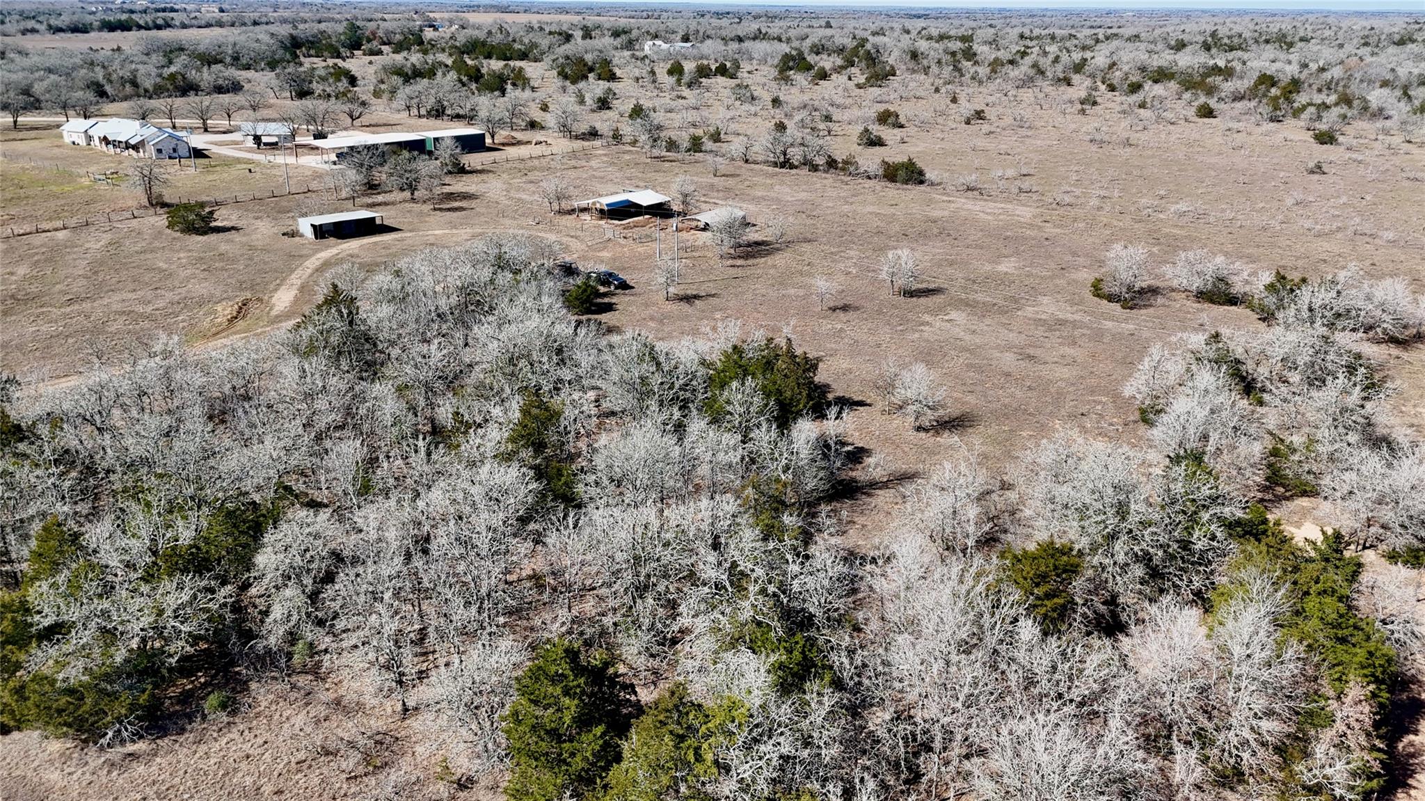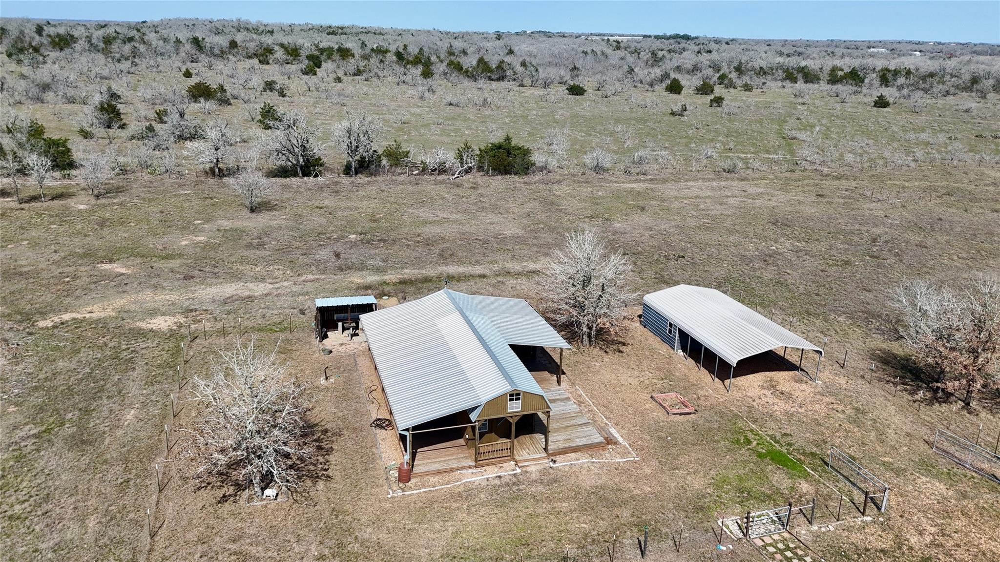 15 acres with a 1 bedroom, 1 bath cabin, 15x20 workshop, pole barn, seasonal Pin Oak Creek, and a pond on a paved road just 5 minutes North of I-10 in Flatonia, TX! The property has 2 heavily wooded areas, as well as open pasture that has been cleared of mesquite and huisache, allowing for multiple recreational activities. The cabin has an open concept, with plenty of overhead storage, a large bedroom, and kitchenette. Come enjoy as a weekend retreat, or a comfortable temporary house until you build your dream home! A large spacious porch sits along 3 sides, allowing for views of the country side and a great place to sit and watch both the sunrise and sunset! The west porch has a 3 bay sink and is a perfect place for outdoor cooking! The 35x20 pole barn can be used to house both livestock and equipment. Just a short drive north of I-10 this property is ideally located halfway between Houston and San Antonio and 1 hour 10 minutes to Austin Bergstrom International Airport.