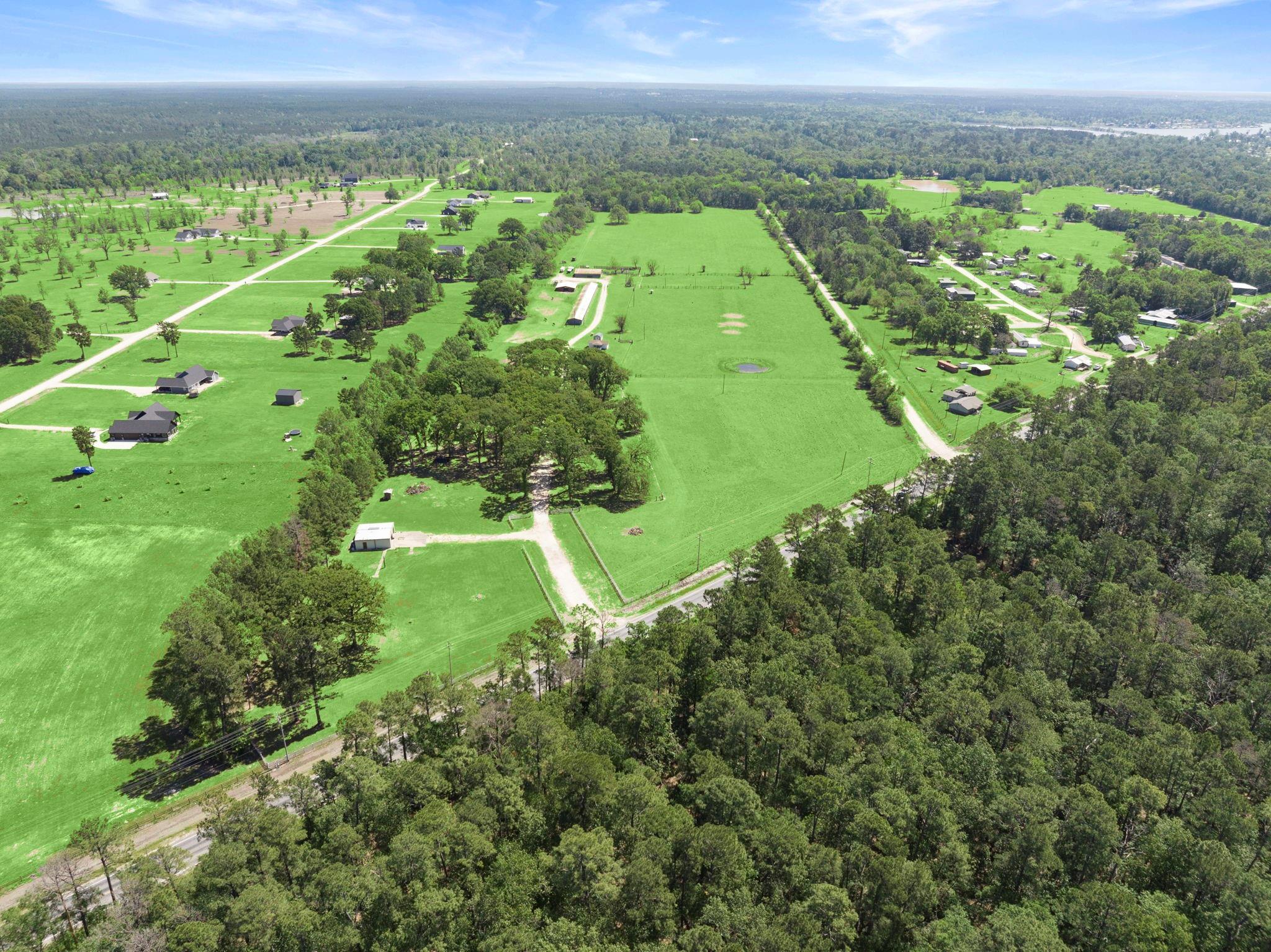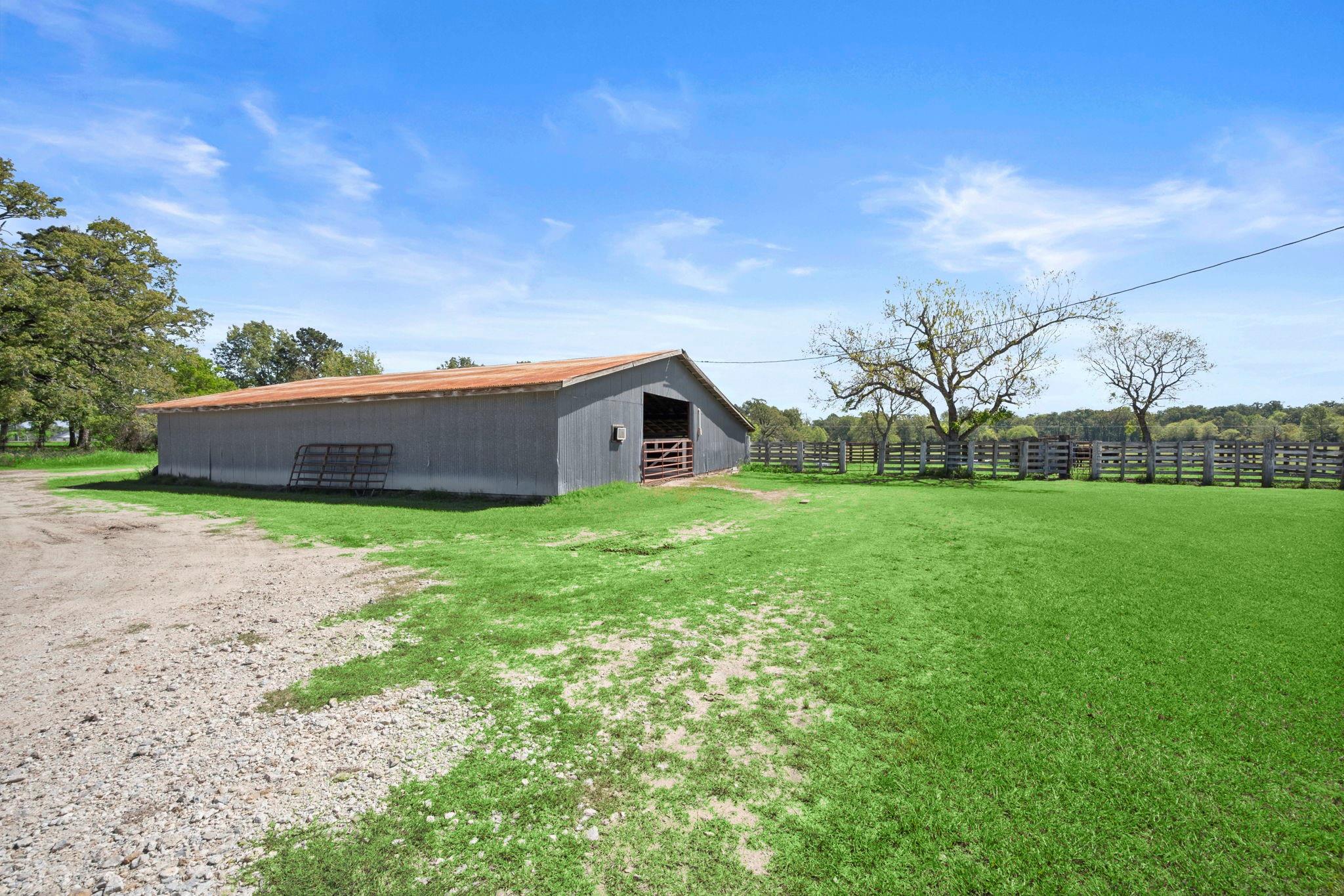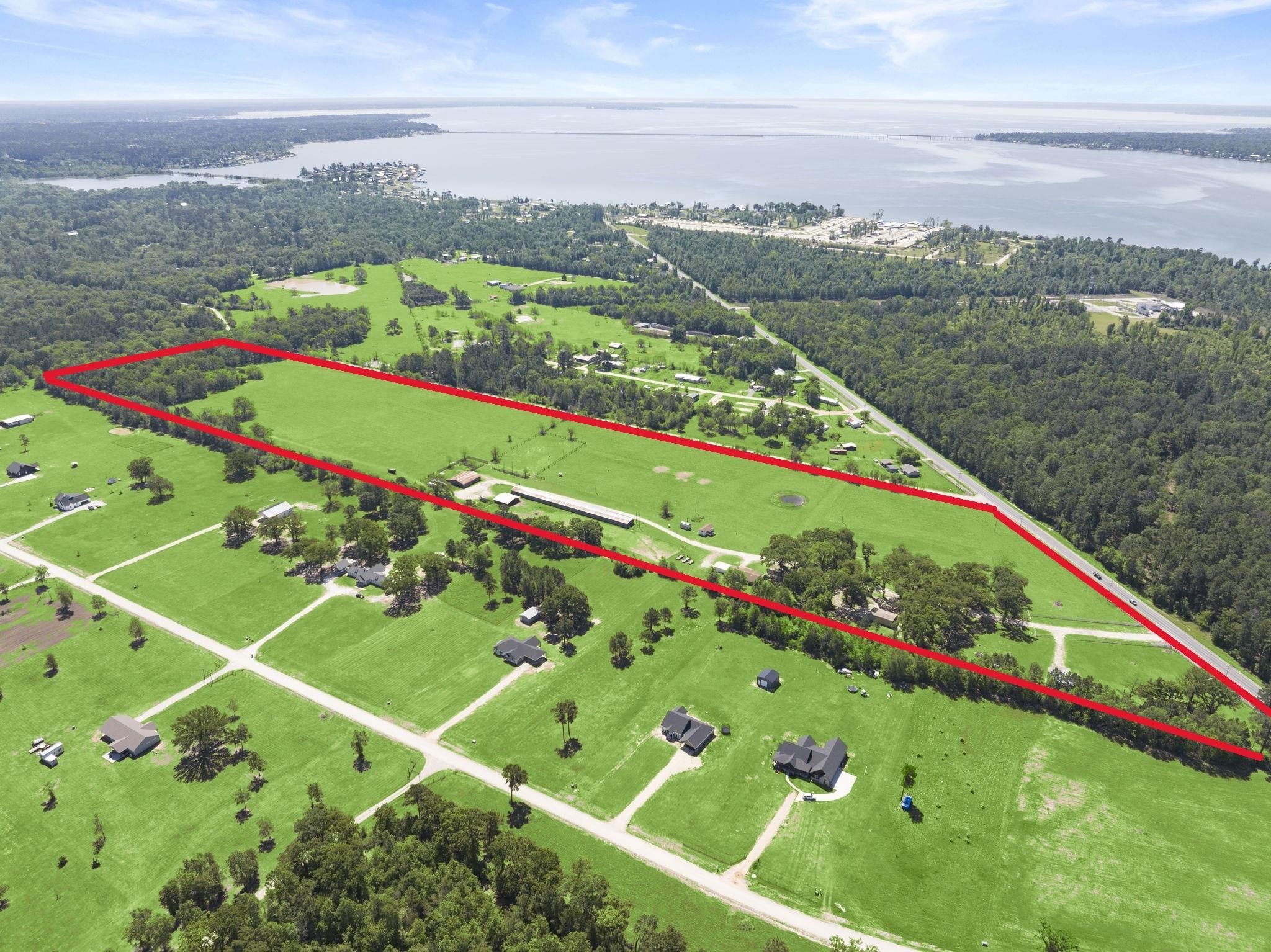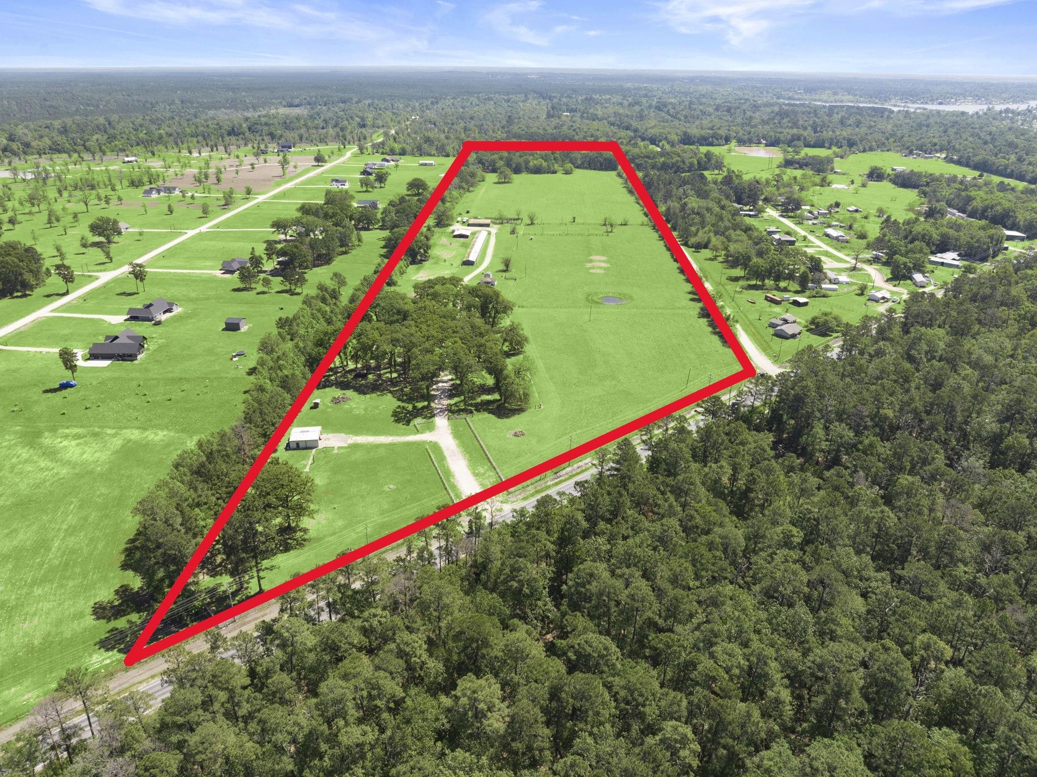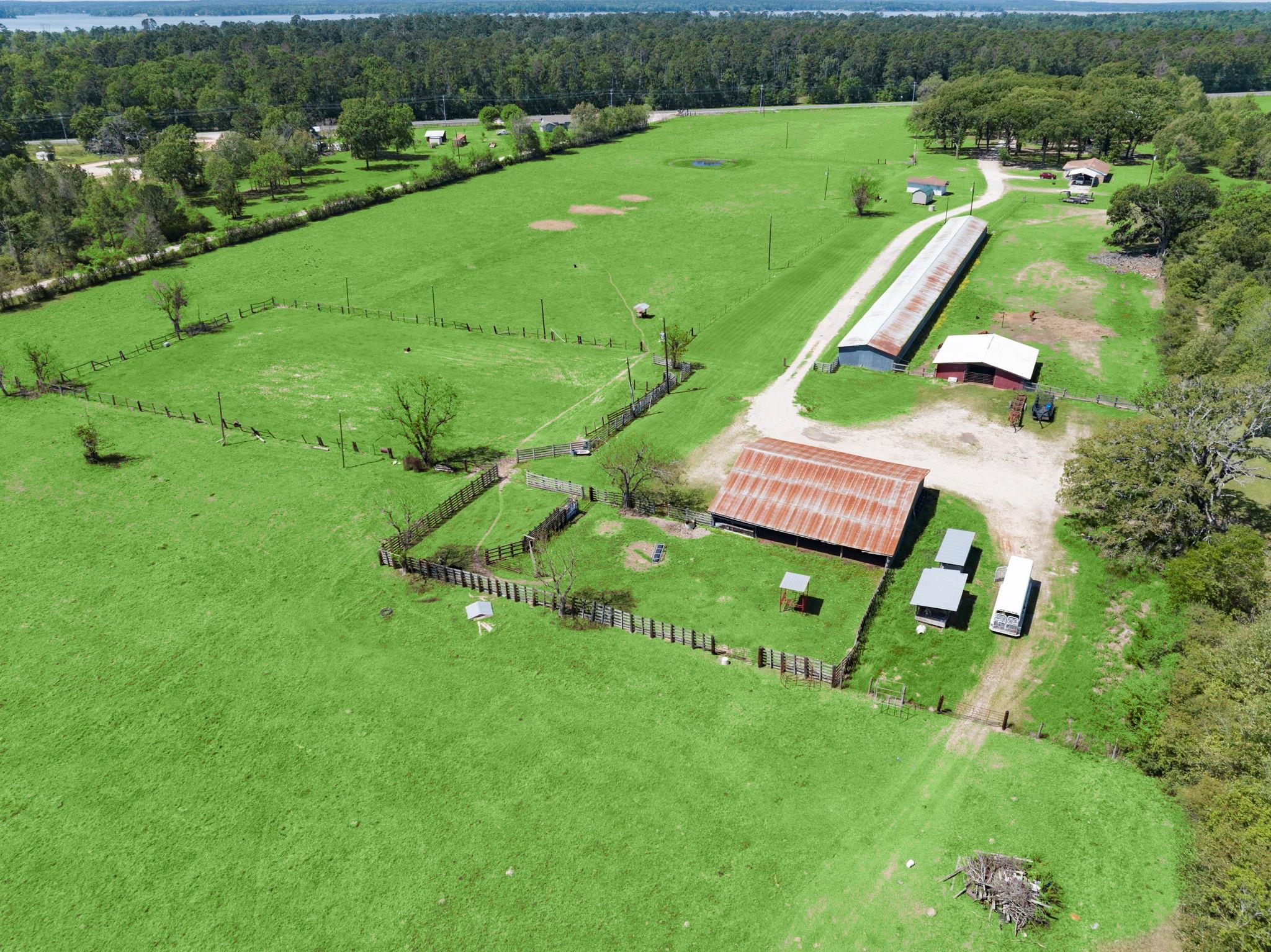 One of a kind property just minutes from Lake Livingston and Onalaska Texas. This property is setup for small ranching, farming or investment opportunities. 39+ acres of cleared pasture, complete with two barns, 1200+ square foot brick home, 24'x42' RV Cover with sewer system and hookups, large metal shop on a slab, 375+ square foot bunk house and working pens for livestock. Gravel driveway entering the property is shaded by large oaks that would be perfect for outside family and guest entertainment. Besides being setup for farm and ranch life this property could be an investors dream. Property has over 700 feet of road frontage along FM 356 and over 2500 feet of frontage along Frontier Dr., a county maintained road. Property has no restrictions and water and power available throughout the property.