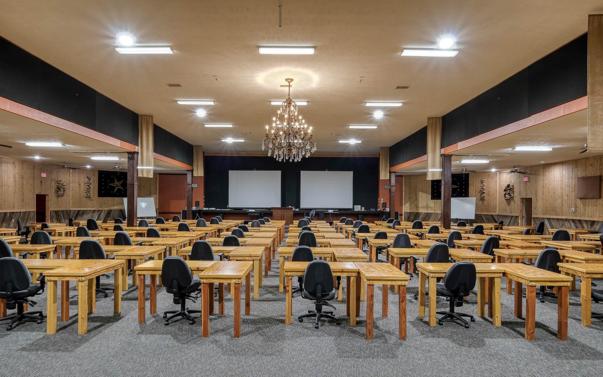 Exceptional opportunity to own 11.318 unrestricted acres featuring 2 apartments, 16,520 SF event center/ballroom built in 2009, ideal for weddings, private events, entertainment, or commercial ventures. The main room is approx. 80x80 & offers an open layout with a raised stage, 17 ft ceilings & concession serving area perfect for catering operations. The venue includes elegant finishes, his & hers restrooms, abundant ceiling fans, & thoughtfully designed layout to accommodate large gatherings with ease. The facility has ample central air & heat w/abundant lighting throughout to create an inviting atmosphere. Additional interior spaces include a 24x38 meeting room ideal for conferences or private events & a 24x27 meeting room perfect for smaller meetings or breakout use. Two on-site apartments provide convenient living quarters for owners, staff, or guests. Large stabilized parking lot out front. 7.8 acres w/wildlife exemption. Excess land for expansion. Easily accessible to major hwys.