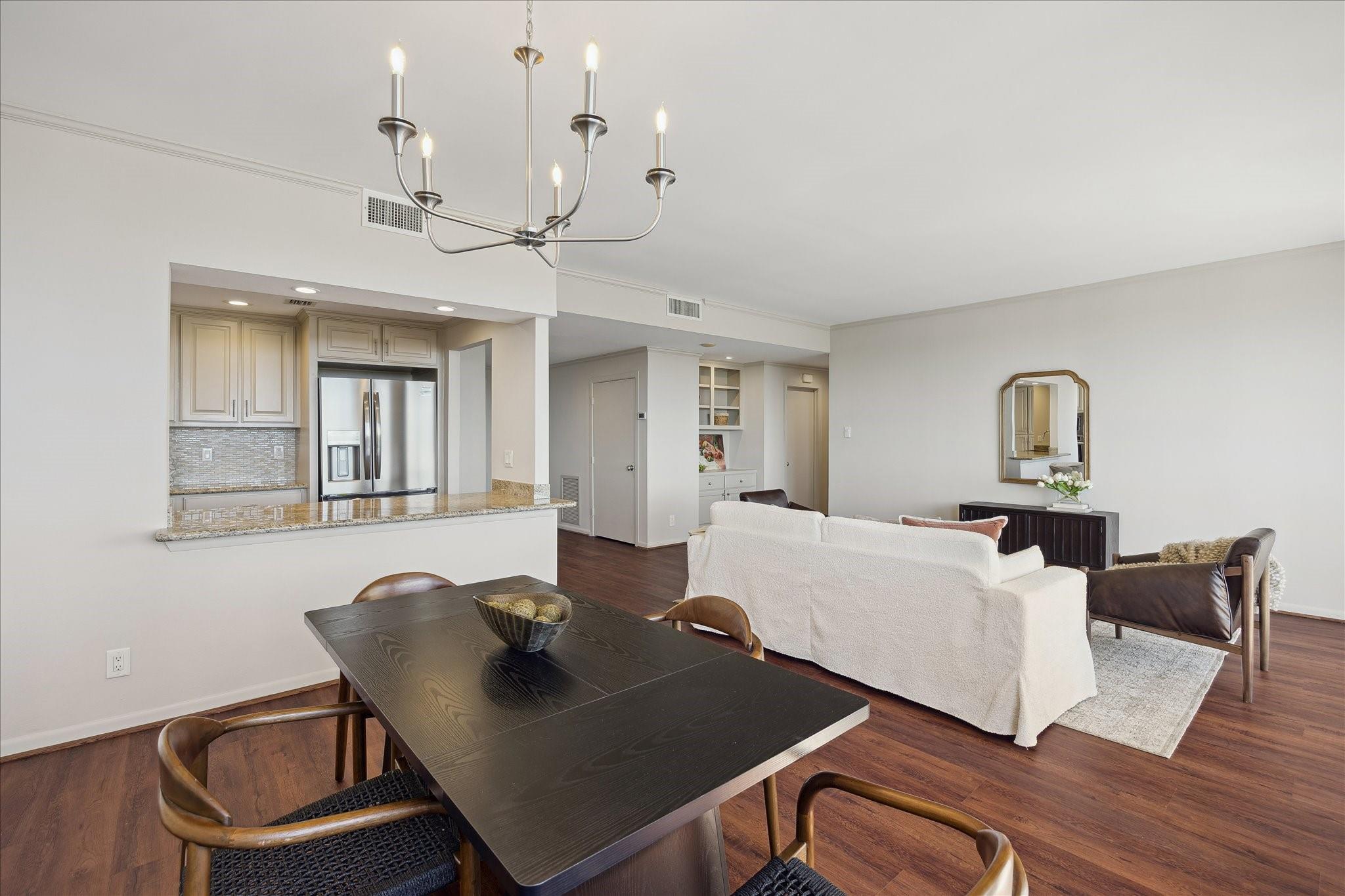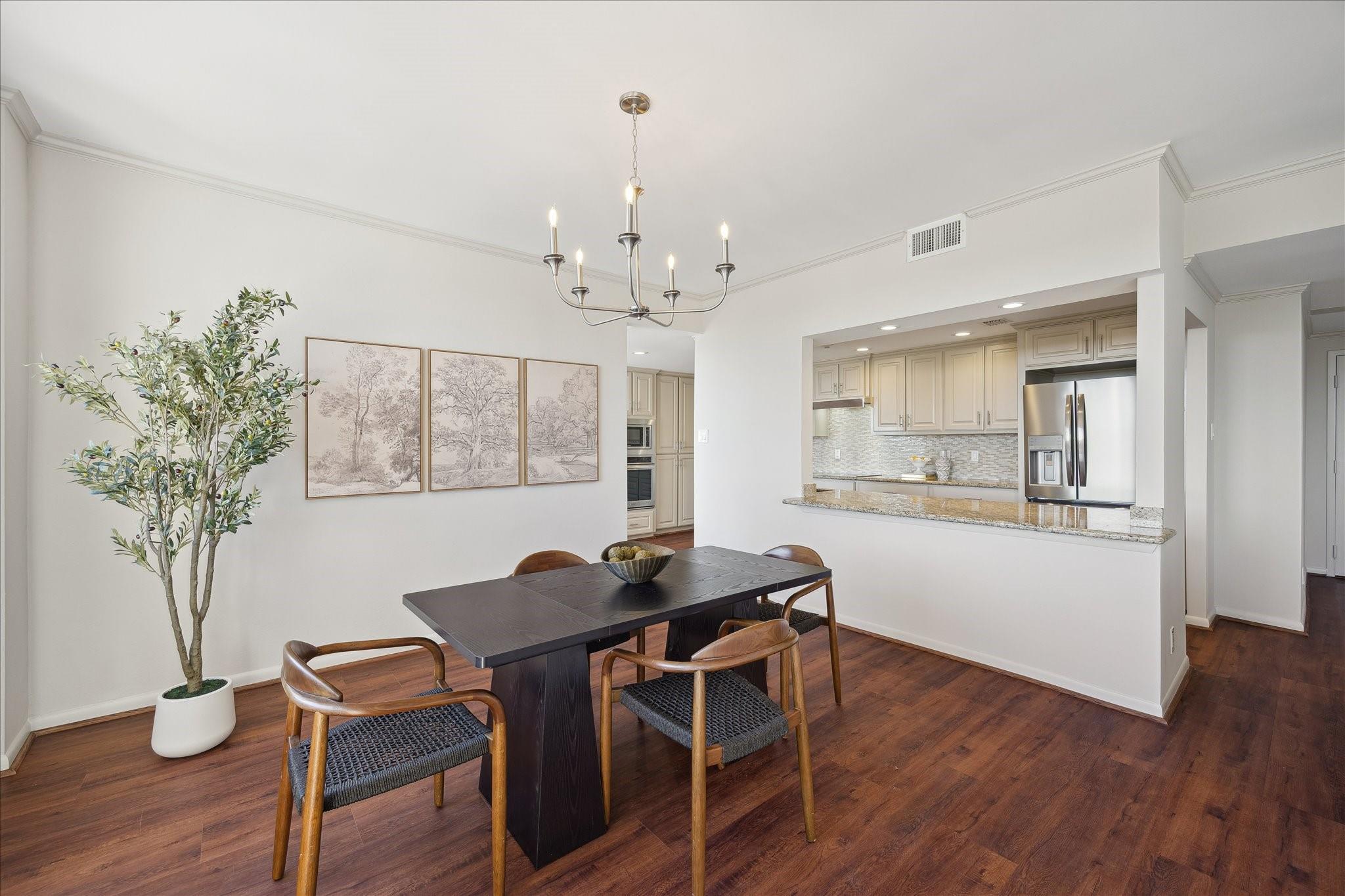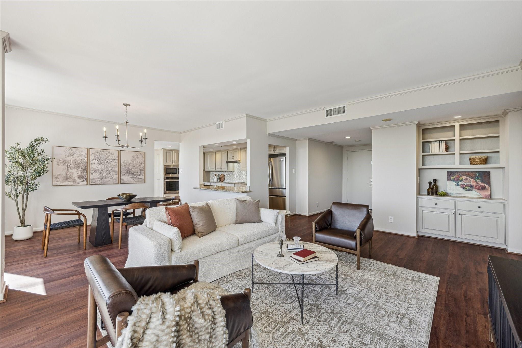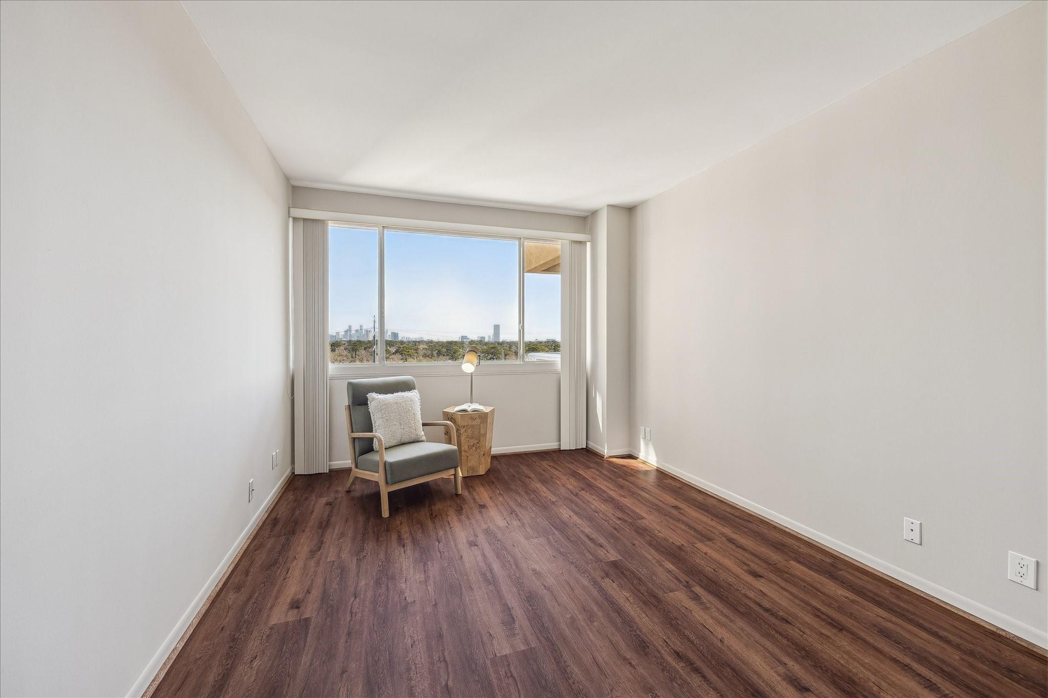 Welcome to one of the best views you could wish for in Houston! This wonderful 10th-floor residence offers gorgeous sunrise views overlooking Memorial Park and downtown Houston daily. Enjoy the magical scenery from your spacious private balcony while sipping on your money coffee. The floor to ceiling windows facing the East, let in plenty of welcoming natural light. Newly Painted, this spacious 1740 sq ft condo has 2 bedrooms, 2 baths, features an open concept living area, updated kitchen and appliances, and wood flooring throughout. There is built in storage cabinets throughout, closets, utility room, and a generously sized primary suite with an ensuite bath and large walk in closet. Bosch HVAC 3 yrs. Frigidaire refrigerator 2 yrs. Dishwasher 3 yrs. Residents enjoy a full-servie lifestyle with 24-hour concierge, security, tennis/pickleball courts, pool, fire pit, dog run, and even a spa, and a party room. Schedule your tour today!