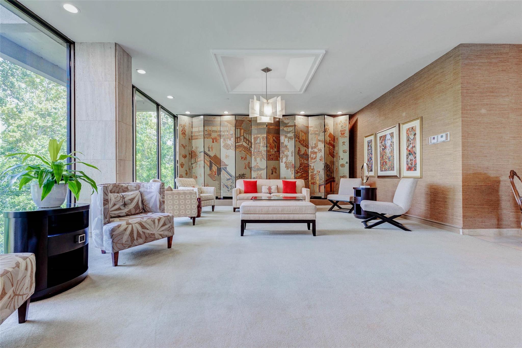 Discover high-rise living at its finest in this spacious 2-bed, 2-bath condo located in one of Houston’s most prestigious areas—just minutes from Memorial Park, River Oaks, and the Galleria. The elegant floor plan features formal living and dining rooms with built-ins. Generous family room offers more built-ins, wet bar, and direct access to your private covered balcony with breathtaking views. Enjoy effortless urban living with 24/7 manned gate entry, concierge services, valet parking, and controlled access. The HOA includes access to resort-style amenities such as a pool with sundeck and hot tub, fully equipped fitness center, sauna, tennis and pickleball courts, and electric car charging stations. Additional perks include a business center with Wi-Fi and conference space, a library room for quiet reading, an on-site kitchen and party room for entertaining, and attentive on-site management. Experience the perfect blend of luxury, location, and lifestyle in this exceptional reside