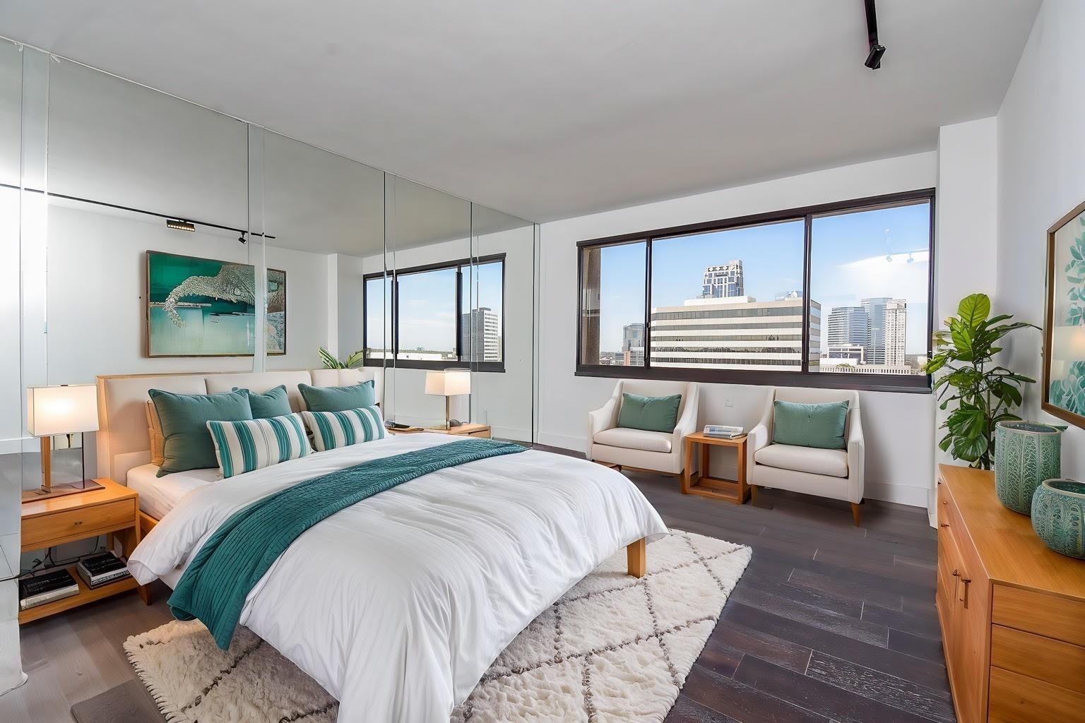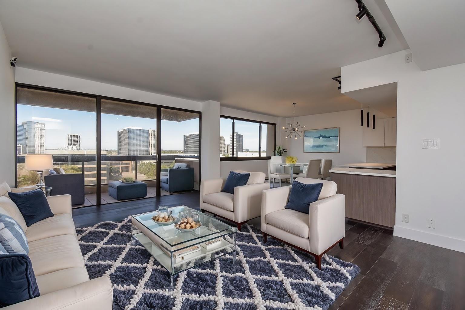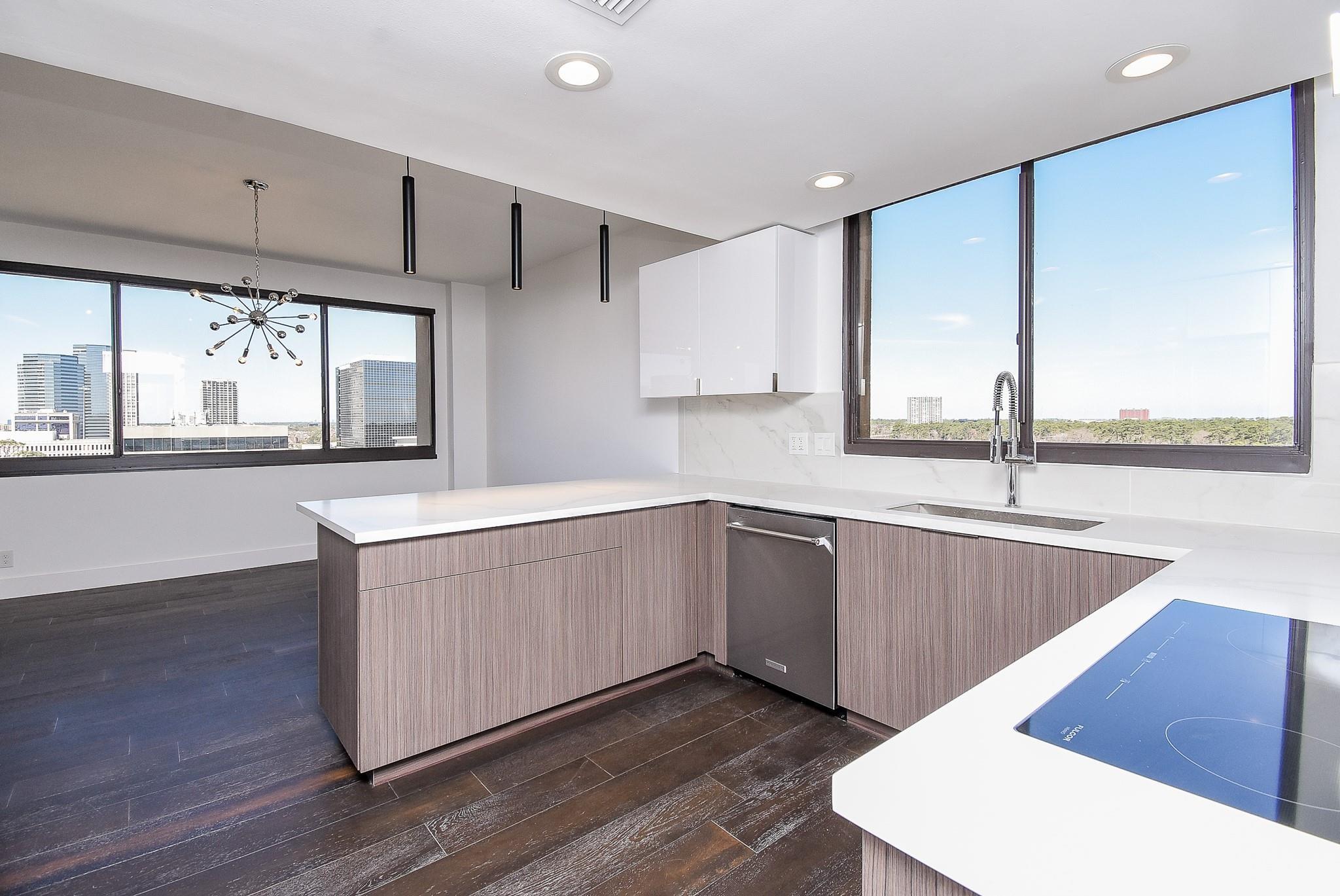 Step into luxury with this newly renovated 2-bedroom, 2-bathroom high-rise condo, offering modern elegance and breathtaking city views. Every detail has been meticulously crafted to create a stylish and comfortable living space. The open-concept design seamlessly blends the living, dining, and kitchen areas, perfect for both relaxing and entertaining. The gourmet kitchen features sleek quartz countertops, brand-new stainless steel appliances, and custom cabinetry for ample storage. Both bathrooms have been updated with contemporary fixtures and finishes, creating a spa-like atmosphere in your own home. With spacious bedrooms, expansive windows, and high-end engineered wood flooring throughout, this condo is the epitome of modern luxury. Located in a prime location, you'll have access to first-class amenities like tennis court, a sparkling pool w/outdoor grill, fitness center, relaxing fire pit, 24 hr manned entrance & so much more! Close proximity to shopping, dining & major highways.