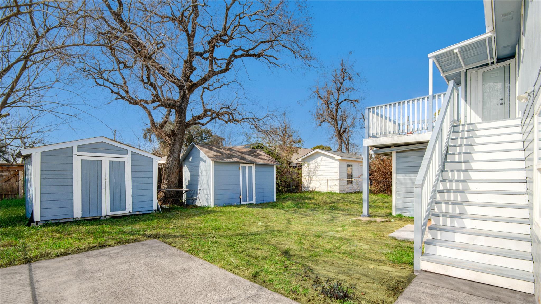 Fully renovated duplex on a large lot inside the 610 Loop, minutes from The Heights and Downtown Houston with quick access to I-610 and I-45 N. Each unit offers 2 bedrooms and 1 bath with modern, updated interiors. The downstairs unit features an open-concept layout, covered carport for 2+ vehicles, and a private fenced area. The upstairs unit includes private front and back balconies with ample parking. Both units have private entrances—downstairs access from the front and upstairs from the back—providing added privacy. The property sits on a spacious shared yard and includes a storage unit for each unit. Perfect for multi-generational living—ideal for parents with adult children, two families, or siblings purchasing together—offering privacy while staying close. Also a great house hack opportunity—live in one and rent the other. Low tax rate adds to the appeal. Hablo Español.