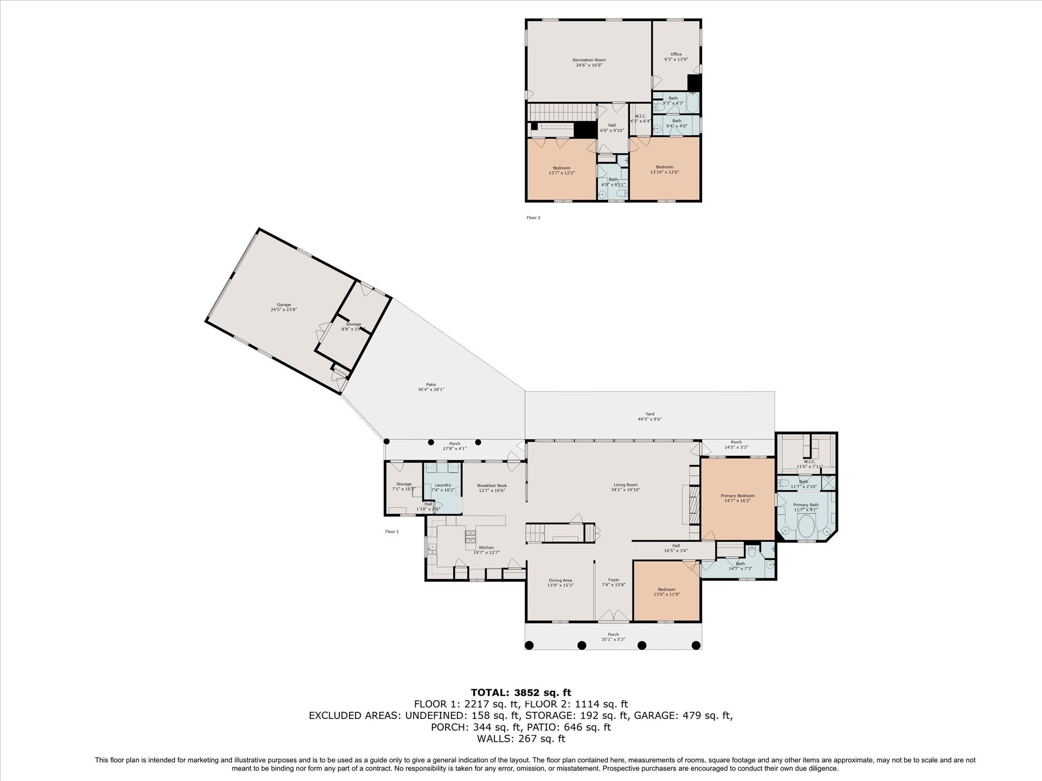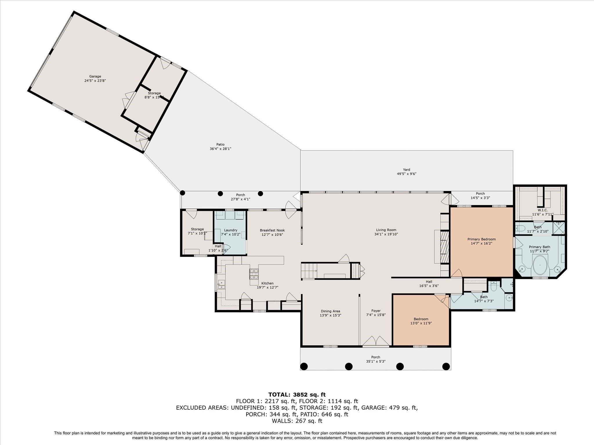 First FloorLiving:34x20Dining:15x14Primary Bedroom:15x16Bedroom:12x13