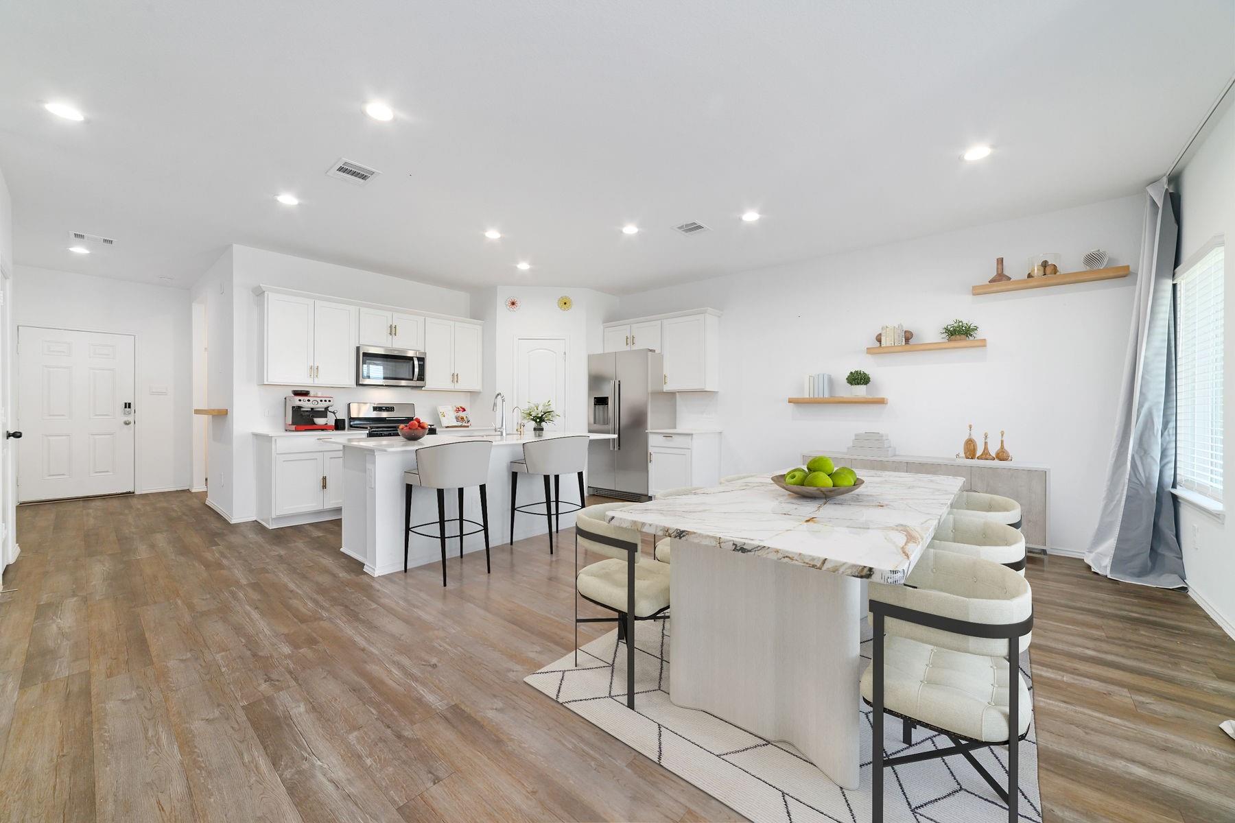 Stunning 2-story all-brick home with 4 beds and 3 full baths in the highly sought-after Sunterra community. Open-concept layout with island kitchen flowing into the family room and dining area—ideal for entertaining. Primary suite features dual sinks and a walk-in closet. Upstairs offers two bedrooms, a full bath, and a versatile game room. Sunterra, just north of I-10 and west of Grand Parkway, is a 1,039-acre master-planned community with Crystal Lagoons®, lakes, parks, playgrounds, and a resort-style Amenity Village. This home is near the model park and beautifully maintained entrance. Barely lived in and priced below similar floor plans. Sits on a 50' well proportioned lot next to other 50' lots, with long driveway for front parking and generous backyard for outdoor activities or gardening. Includes tankless water heater and transferable warranties on electrical, plumbing, and HVAC through Dec 2026