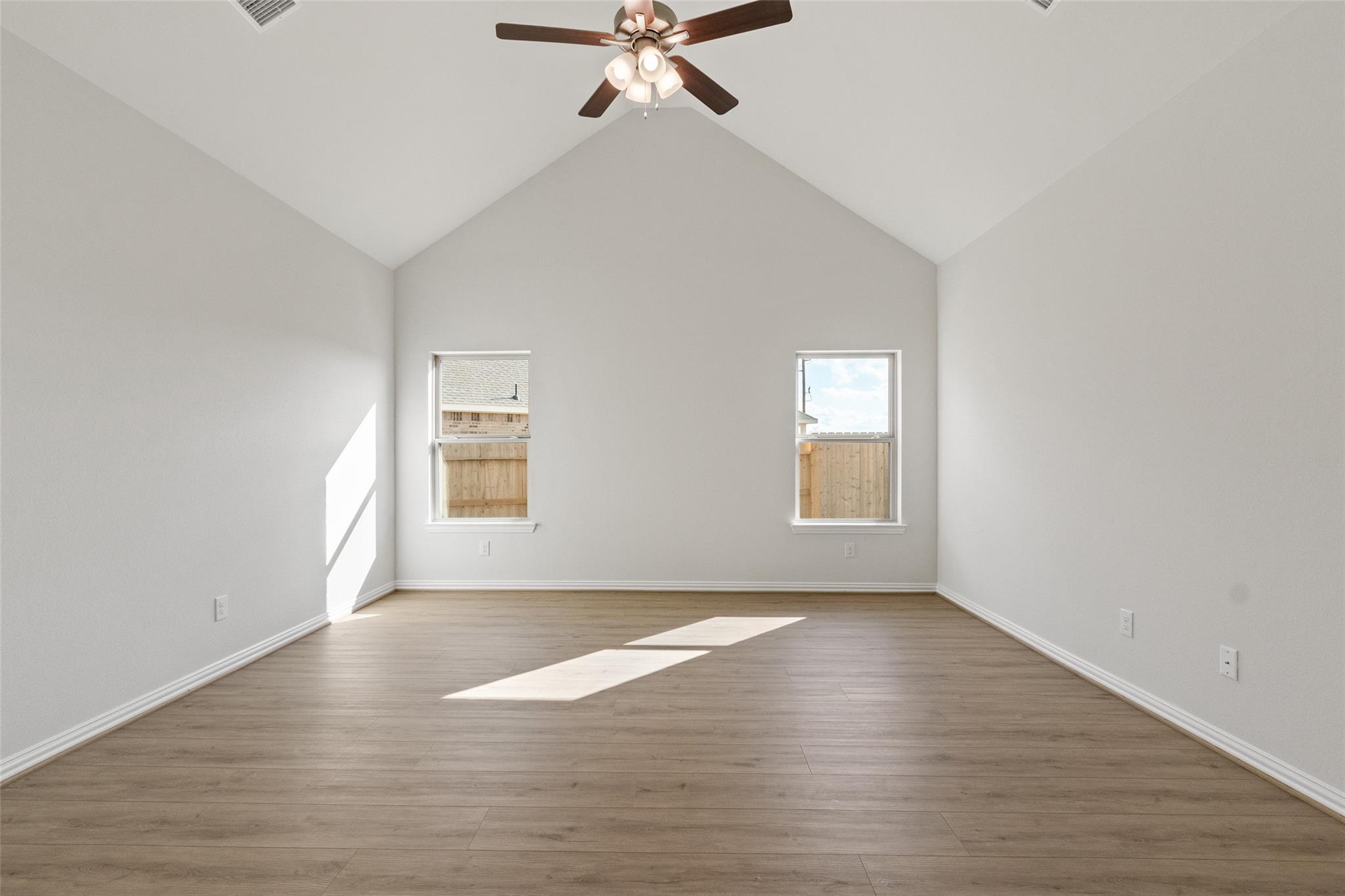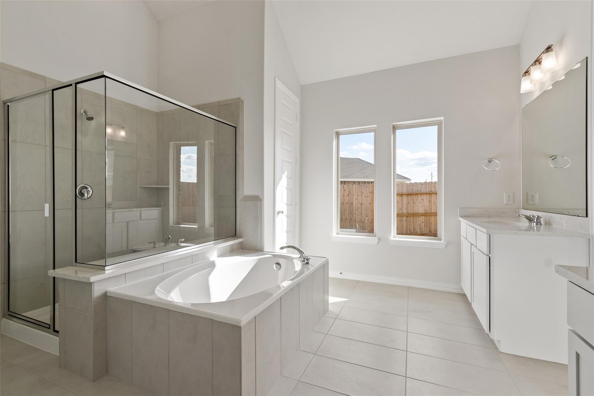 This stunning Willow plan sits on a prime corner homesite and showcases designer details throughout, offering 4 bedrooms, 3 full bathrooms, and a spacious game room ideal for everyday living and entertaining. The kitchen features stainless steel appliances, sleek omega stone countertops, modern grey cabinetry, and durable vinyl plank flooring throughout the main living areas. The primary suite is a true retreat with soaring ceilings, striking tile accents, a glass-enclosed shower, relaxing soaking tub & an oversized closet. Enjoy outdoor living on the covered patio with a fully sodded front and backyard and built-in sprinkler system, all within Coastal Point, a master-planned community in League City, TX, offering scenic walking trails, neighborhood parks, a picturesque pond, and a resort-style pool, just minutes from shopping, dining, and top-rated schools. Move-in ready August 2026, make this stunning home yours!