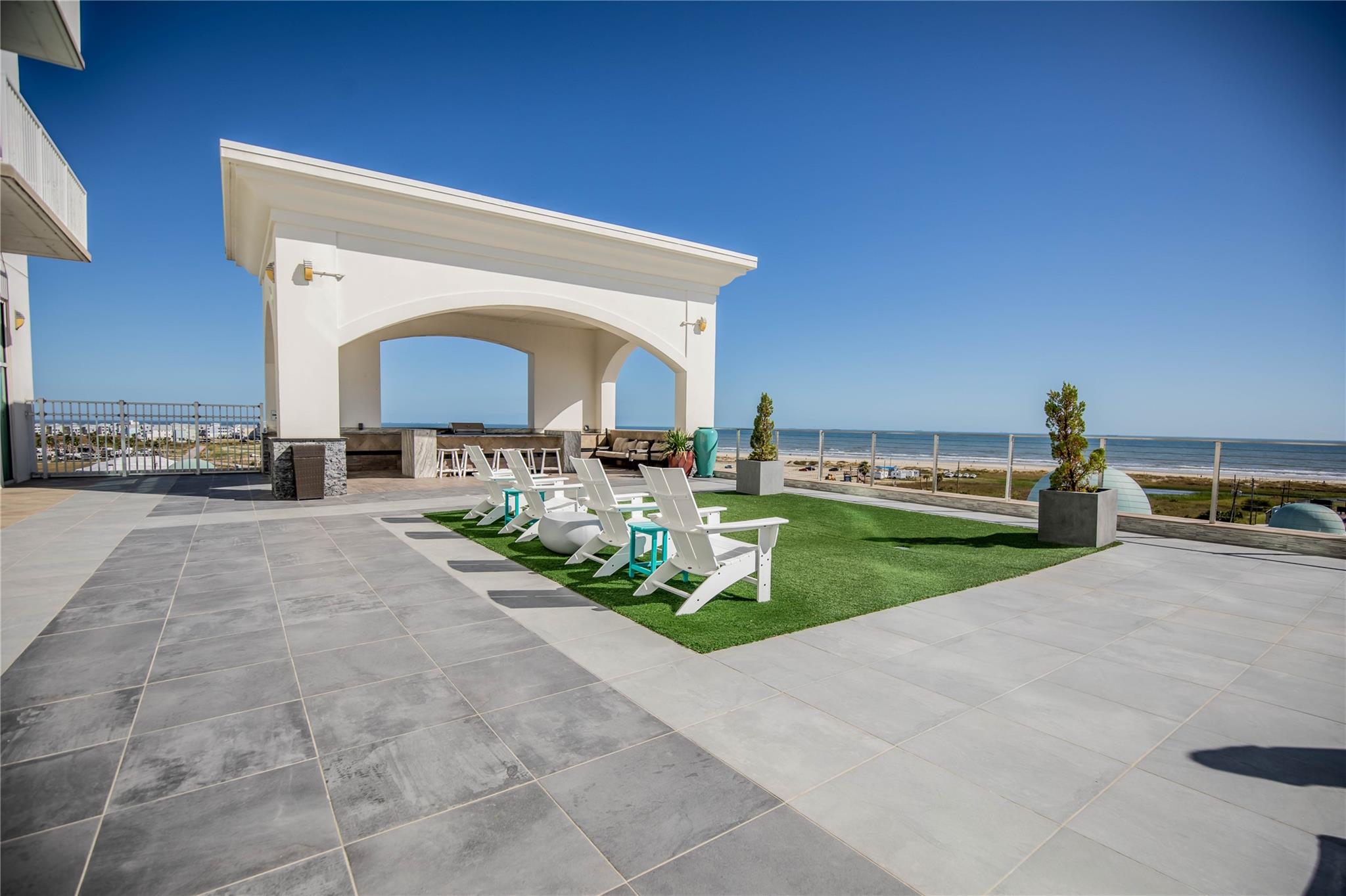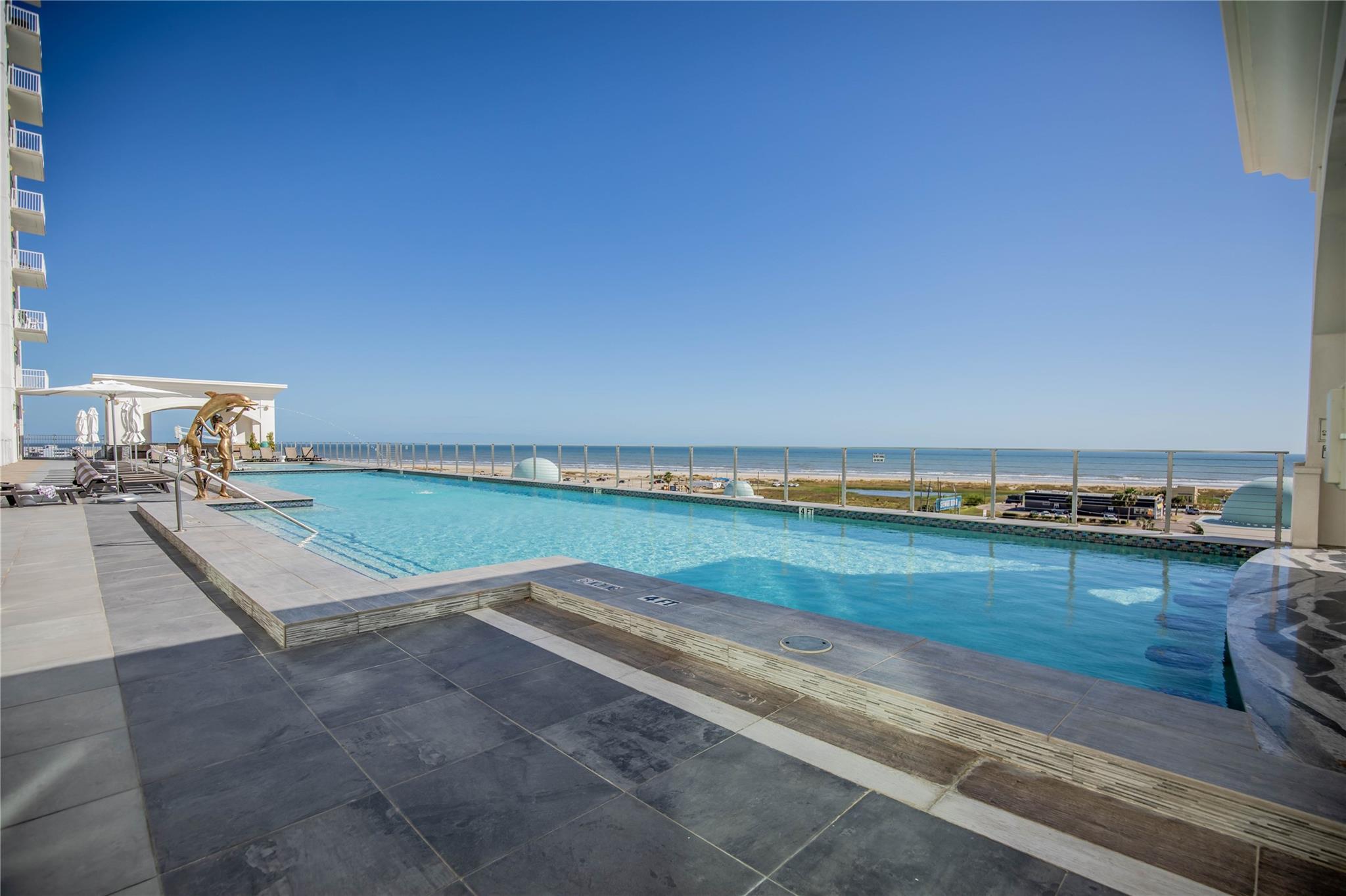 Your serene retreat—a rare end unit overlooking the glistening horizon of East Beach. Imagine sipping morning coffee on the private balcony as the gentle ocean breeze brushes your skin & the waves whisper below. This thoughtfully designed condo offers comfort & convenience: in-unit washer & dryer, refrigerator, & most furnishings negotiable for a move-in ready experience. Large windows fill the space w/ natural light, framing panoramic water views. The amenities feel like a resort. Whether you’re hosting friends, grilling w/ family, or simply unwinding, the expansive pool deck offers 4 fully-equipped outdoor kitchens & year-round heated pool. Additional perks include a modern fitness center, inviting media room, lively game room, & private dining room for special occasions. That’s not all — you’re just steps away from the vibrant downtown scene, top restaurants, & the campus of UTMB. Don’t miss this extraordinary opportunity to let this spectacular view become your everyday