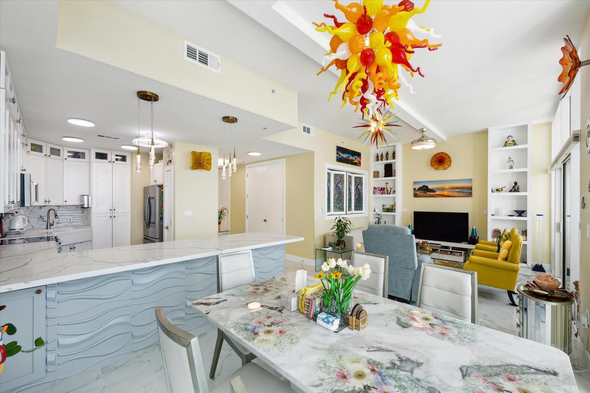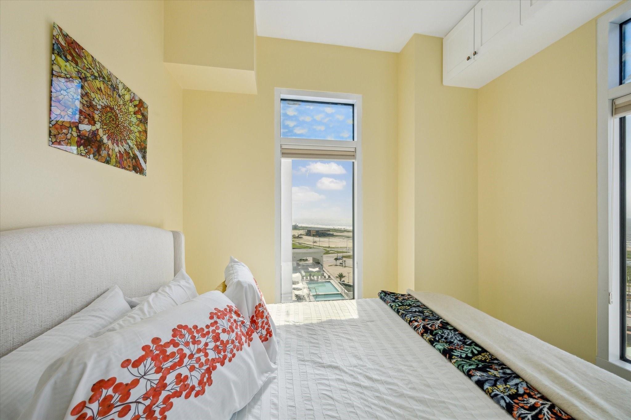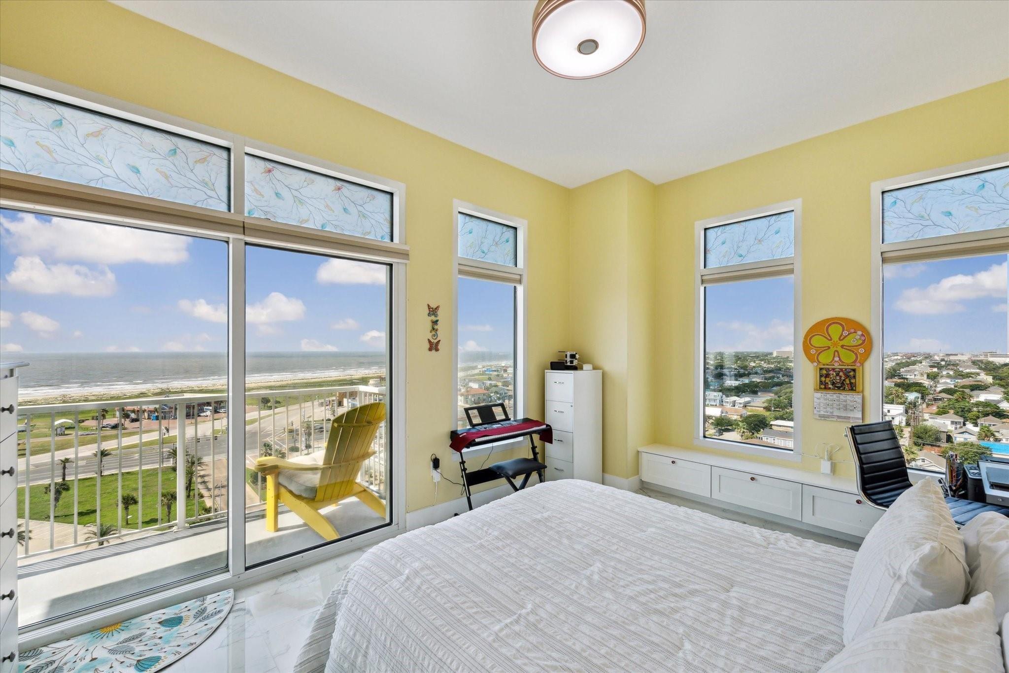 Entering the door you are met with the wonderful breathtaking views of the Gulf of Mexico. Going into the open concept living area with walls of windows and more breathtaking views of the Gulf. The Kitchen and Bathrooms are renovated with Quartz countertops and sink. Renovated floors with ceramic tiles. From another wall of windows you can see the Pleasure pier. The spacious master bedroom, with one of 2 balconies'. Imagine having coffee every morning looking at the Gulf from your balcony. This exquisite Emerald floor plan is a Large spacious floor plan facing the Gulf with unbelievable views come with a climate controlled storage unit.. The Emerald is near all of Galveston's activities including cruise ships, Pleasure Pier, beach, Strand, Post office with its restaurants & shopping. The complex itself offers a heated pool(year round), fitness center, theater, game room, yoga room & onsite management.
