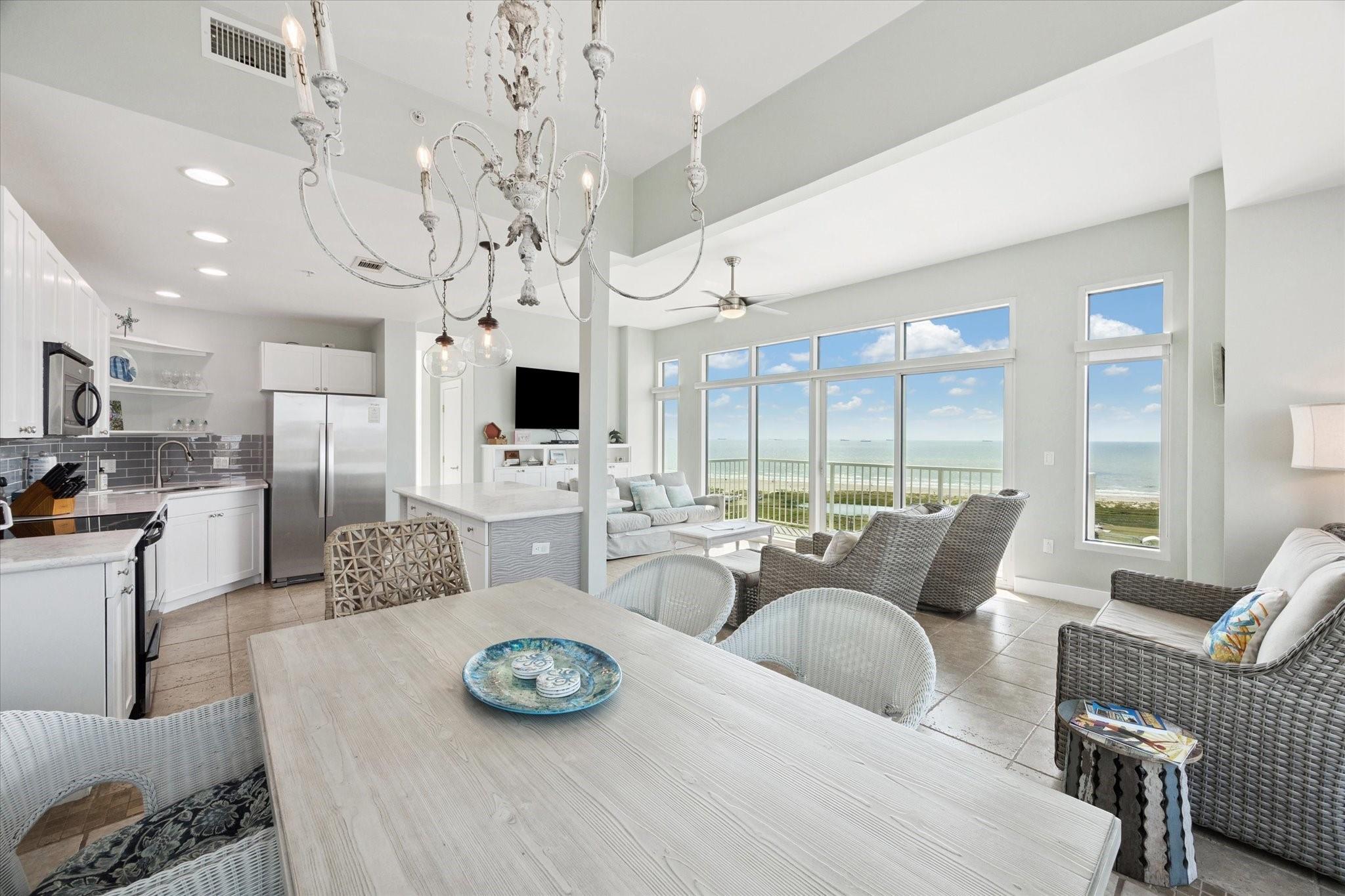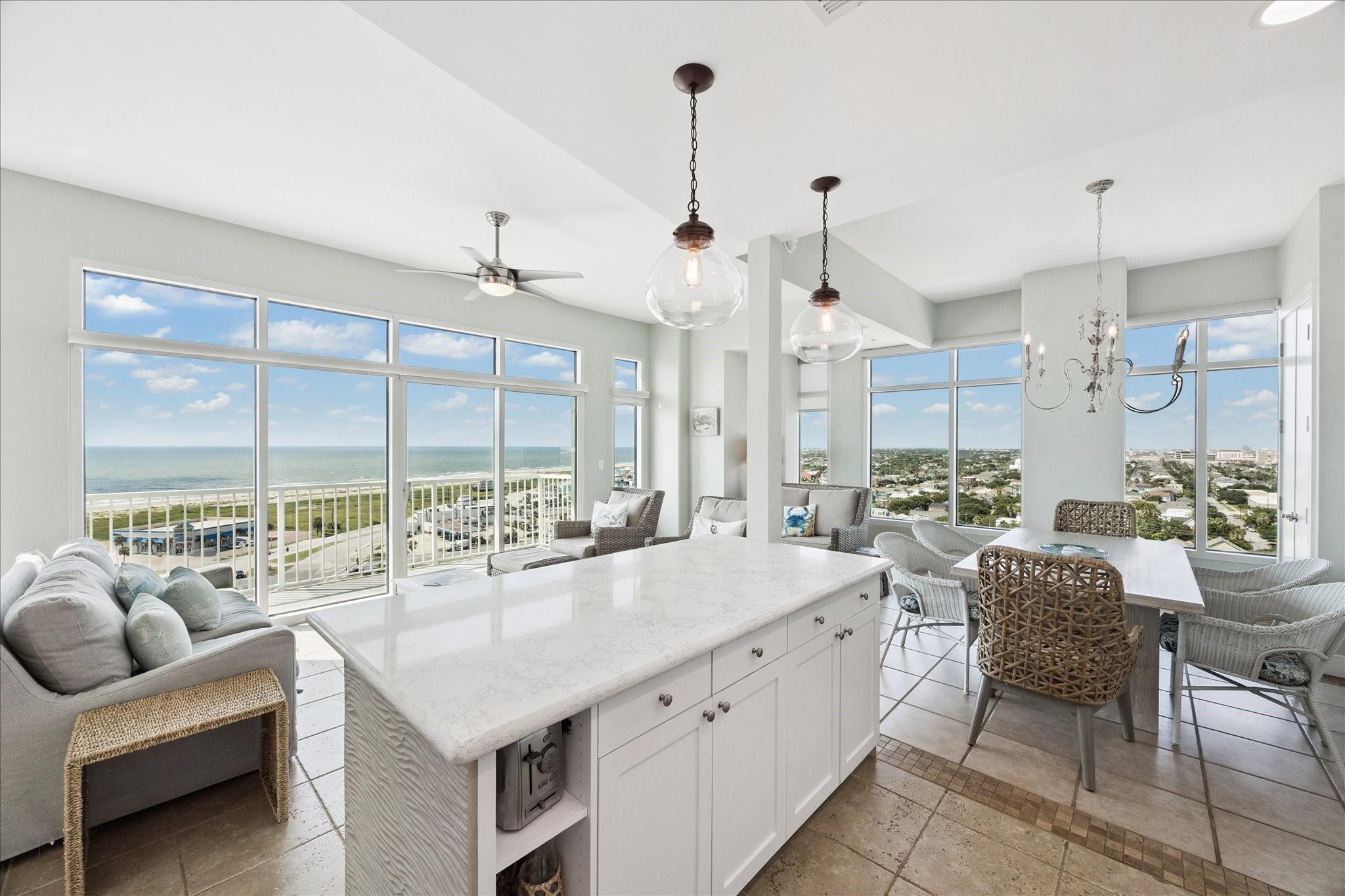 Entering the door you are met with the wonderful view of the Gulf of Mexico. Going into the open concept living area with walls of windows and more breathtaking views of the Gulf. The Kitchen and dining area are renovated with Quartz counter tops and Subway tile. From another wall of windows you can see the Pleasure pier and the cruise terminal. The spacious master bedroom has a private balcony.Imagine having coffee every morning looking at the Gulf from YOUR PRIVATE BALCONY. The master bath has been renovated with a large shower. This exquisite Emerald floor plan is a Large spacious floor plan facing the Gulf with unbelievable views. The Emerald is near all of Galveston's activities including cruise ships, Pleasure Pier, beach, Strand, Post office with its restaurants & shopping. The complex itself offers a heated pool, fitness center, theater, game room, yoga room & onsite management.
