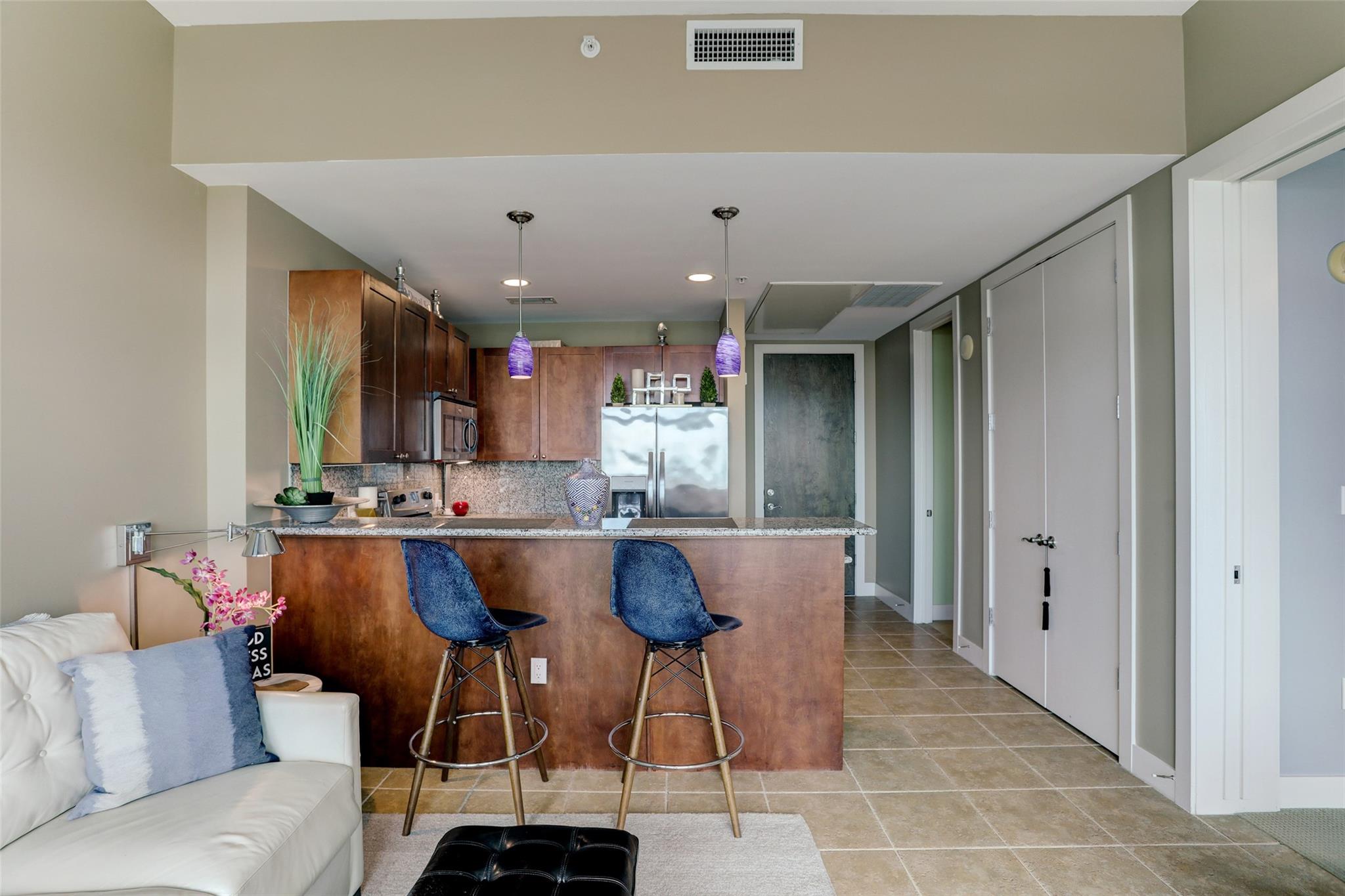 This could be your home, 2nd home or vacation rental. PERFECT FOR A MEDICAL STUDENT. Great location with walking distances to restaurants, drug store, convenience stores, hair salon, liquor store, grocery store, & UTMB. Also short distance to the Post Office and Strand & The Pleasure pier. Amenities include theater, gym, game room and banquet space. Come see the Pool deck with 4 kitchens for your family to enjoy, WITH A YEAR ROUND HEATED POOL