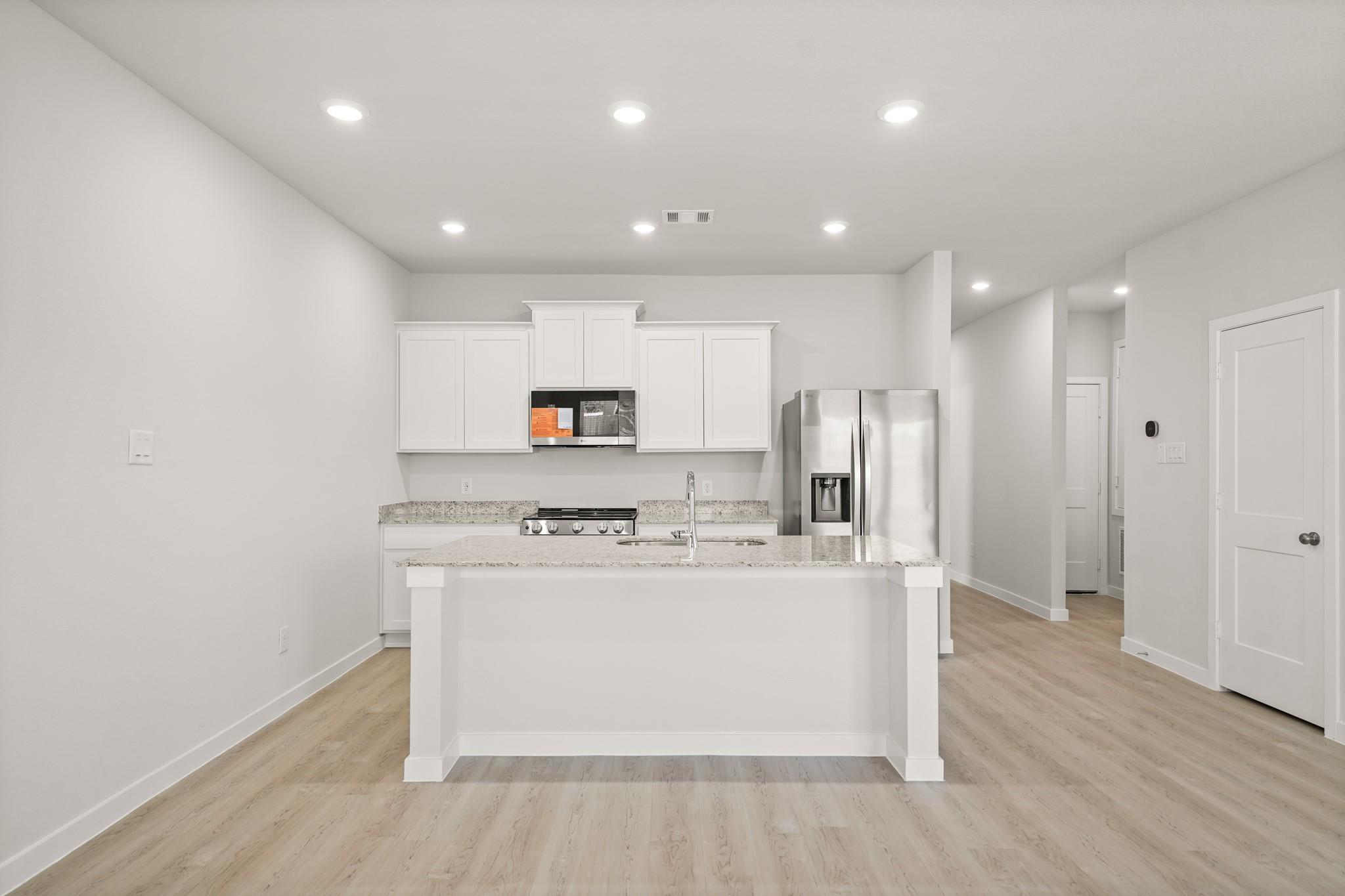 The attractive Barnett plan centers around a large open kitchen, complete with an island and a walk-in pantry. An airy great room—ideal for relaxing and entertaining—is steps away, as is a dining area. The primary suite is secluded toward the back of the home, offering a walk-in closet and a private bath with a walk-in shower. Toward the front of the home, two bedrooms share a full hall bath. Completing the home, a delightful covered patio provides a great place to relax in the fresh outdoor air.