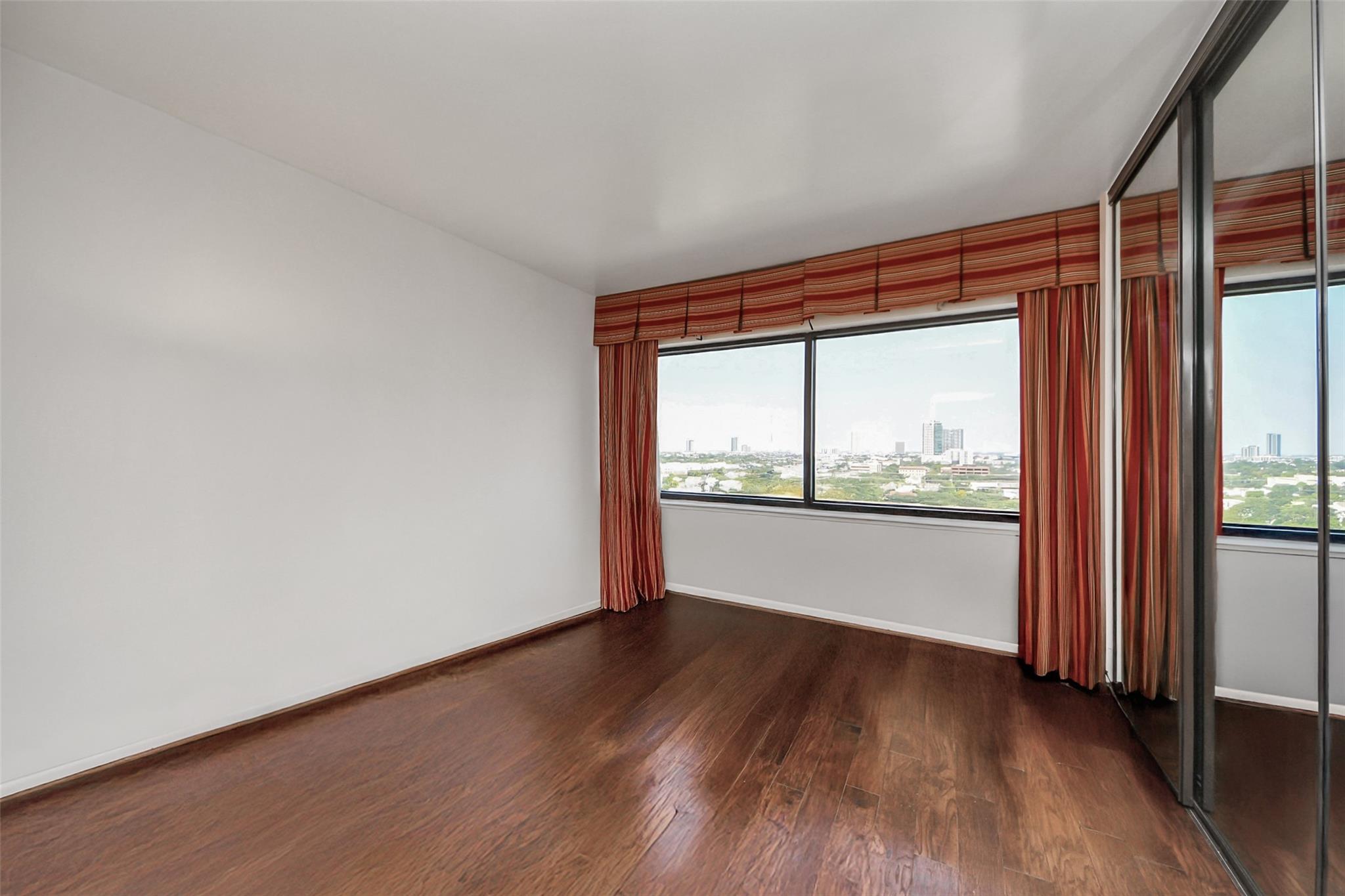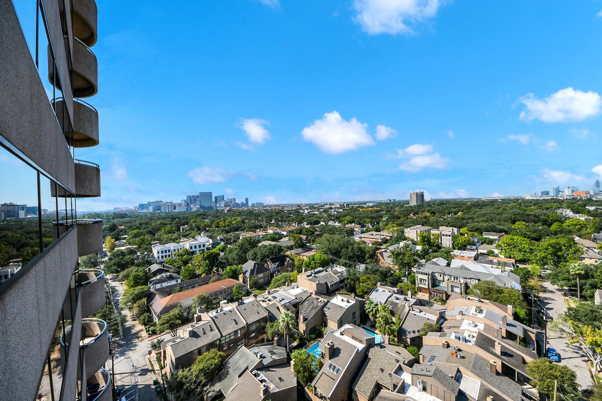 Luxury high-rise living in the heart of the Museum District! This 2-bedroom, 2-bath condo on the 14th floor of 5000 Montrose offers stunning panoramic views of the city skyline and Hermann Park. The open layout features floor-to-ceiling windows, hardwood floors, and a spacious living/dining area filled with natural light. Enjoy resort-style amenities including 24-hour concierge, fitness center, rooftop pool, outdoor lounge, and secure parking. The private balcony offers spectacular views of the city skyline! Perfectly situated near the Medical Center, museums including MoFA and HMNS, Hermann Park and the Houston Zoo. The condo fee covers more than standard upkeep—it includes strong reserves for future maintenance and replacement of elevators, HVAC systems, hot water tanks, and common area furnishings and décor. Thanks to this proactive management, special assessments have been rare—just one in the past 20 years.
