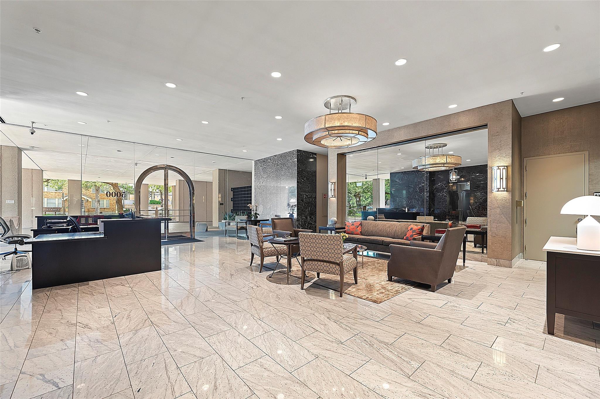 This amazing opportunity in the prestigious & sought after 5000 Montrose. Wonderful 2/2 Exceptional light-filled home with incredible UNOBSTRUCTED view. This 1-bedroom 1 bath in one of Houston's most desirable buildings, Unobstructed views from every room. Stained concrete floors and new neutral paint. Kitchen offers updated kitchen, concrete counters, all appliances. Spacious Primary Suite with full wall of closet. The Private balcony with amazing unobstructed 16th floor views has entry from living. Unbeatable location, in the heart of the Museum District. Owner paid Elevator Assessmt. Just steps from Houston Museum of Fine Arts, Contemporary Arts Museum, Jung Center, Glassell School of Art, Rice, Texas Medical Center. Gated parking. 24/7 CONCIERGE/ Porter/Valet, swimming pool/hot tub, area w/grills,Fitness center,party room,large pet-friendly area, ONSUTE EV CHARGING AVAILABLE, SEE VIRTUAL TOUR, info per Seller.