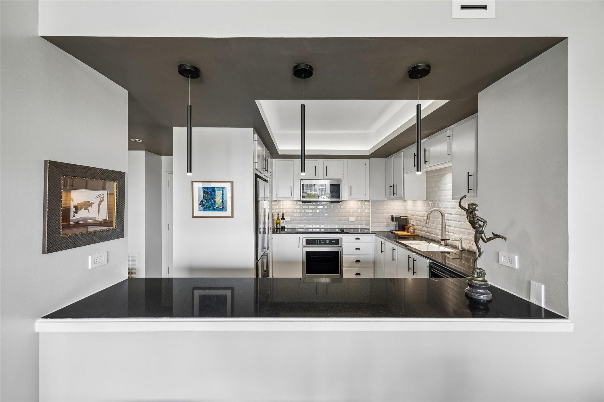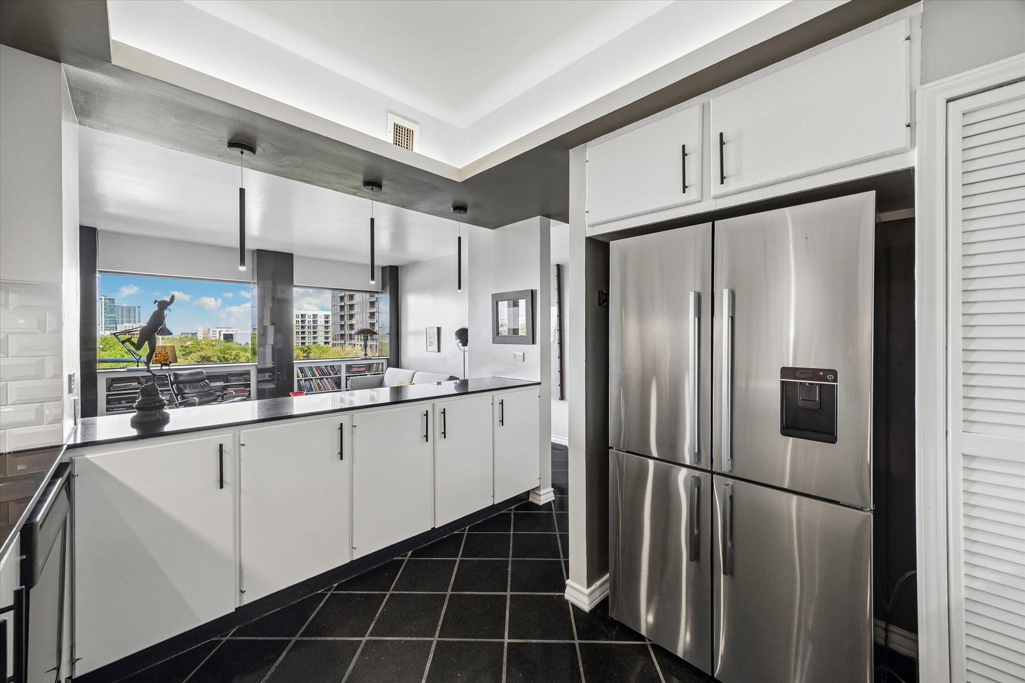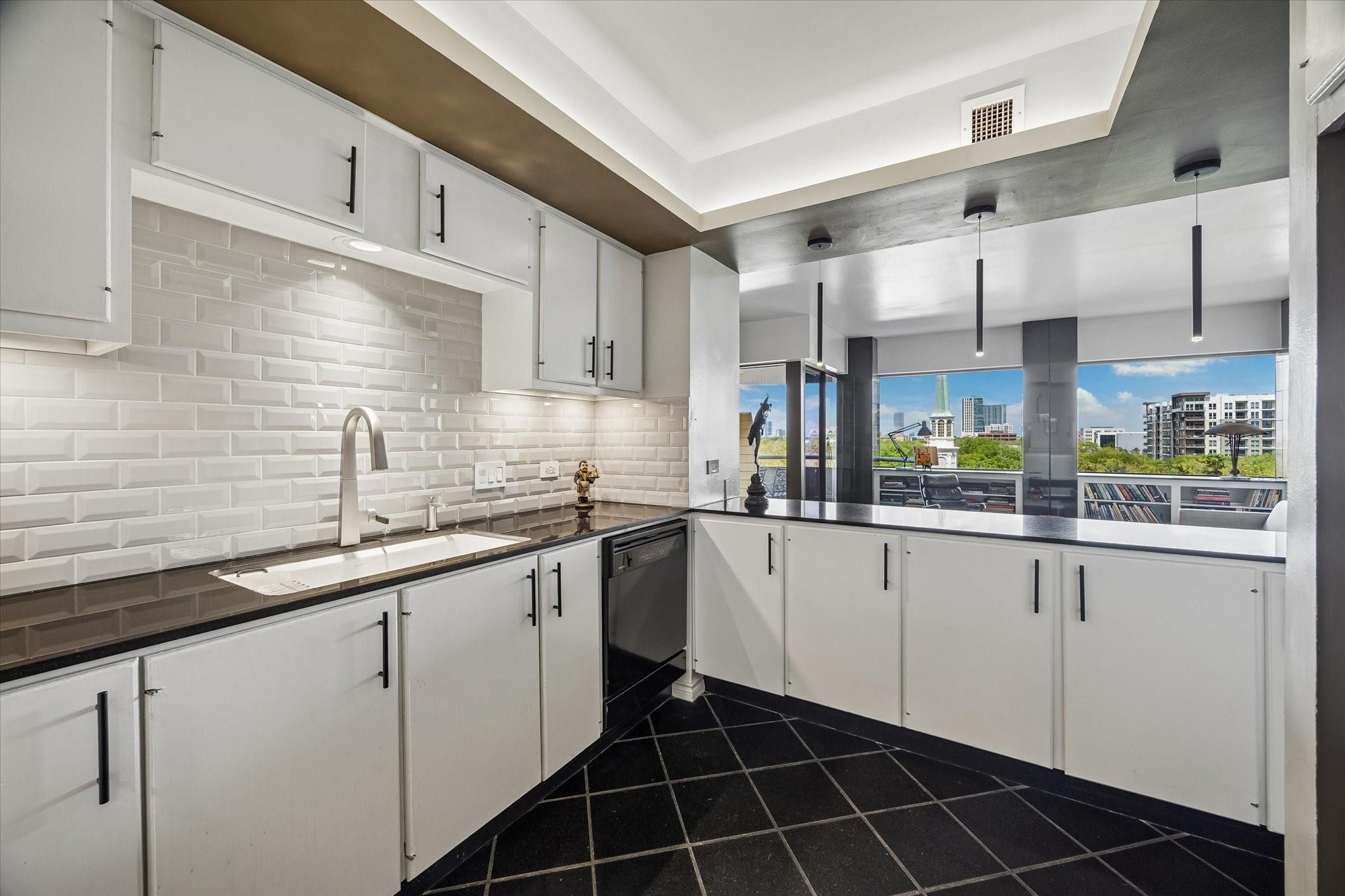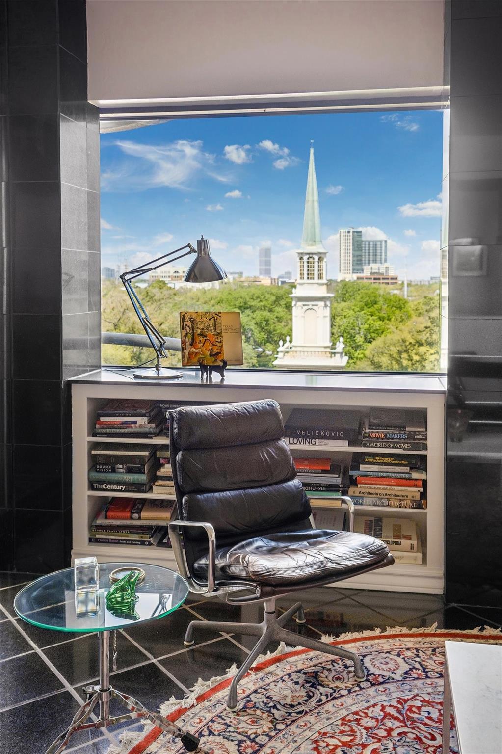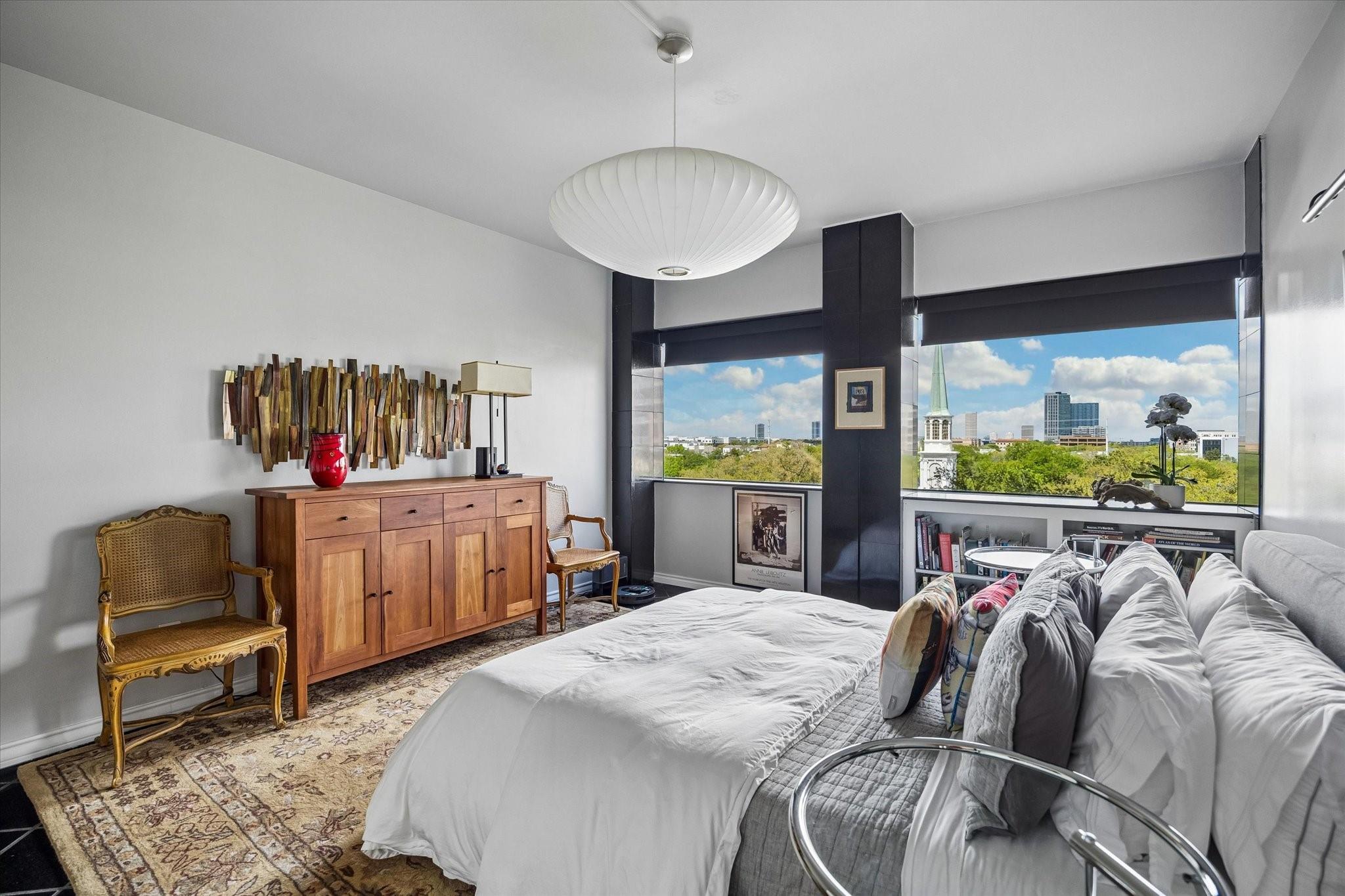 Extensively updated one-bedroom, one-bath residence on the 6th-floor amenities level at 5000 Montrose at The Museum, just steps from the rooftop pool and outdoor entertaining areas. This north-facing unit features polished granite flooring, fresh custom paint, and upgraded LED lighting throughout. The open kitchen offers granite countertops, subway tile backsplash, LED under-cabinet lighting, and new stainless-steel appliances. Custom built-ins with granite tops enhance both the living area and bedroom, while California Closets provide exceptional storage, including a spacious walk-in closet. Additional highlights include motorized blackout shades, updated bath with granite finishes, new full-size washer and dryer, and updated hardware throughout. Full-service building with concierge, porter, controlled access, and assigned garage parking. Prime Museum District location near the Medical Center, Rice University, Hermann Park, and more.