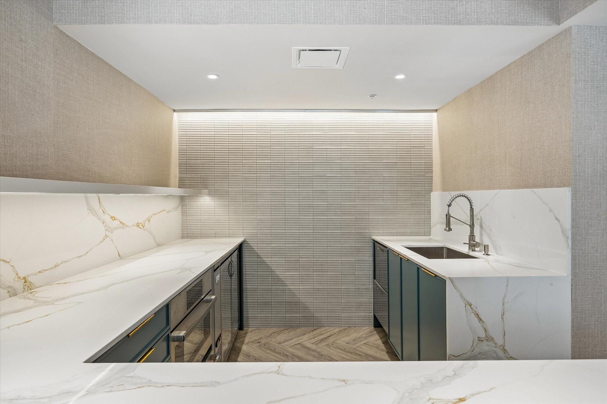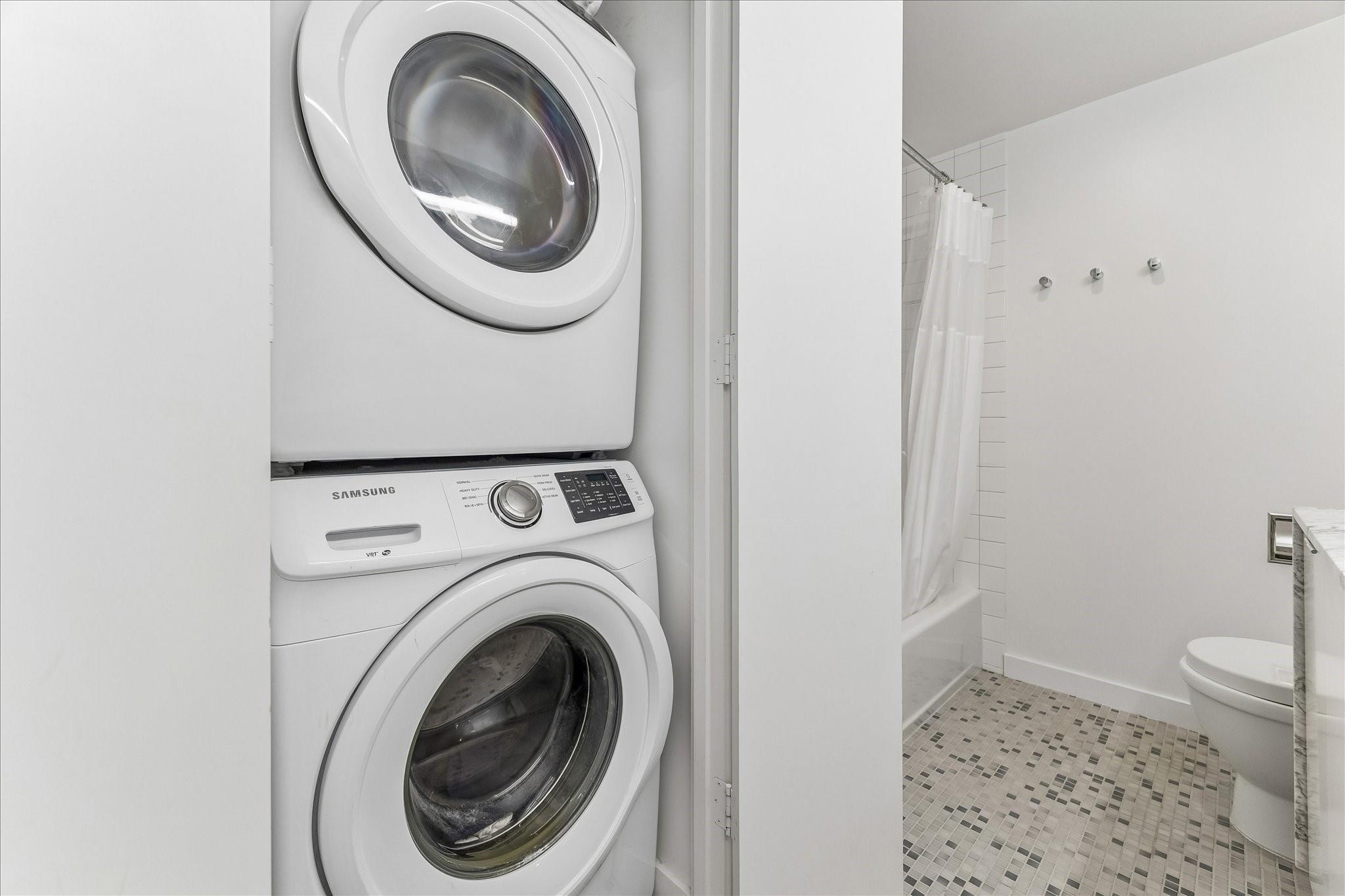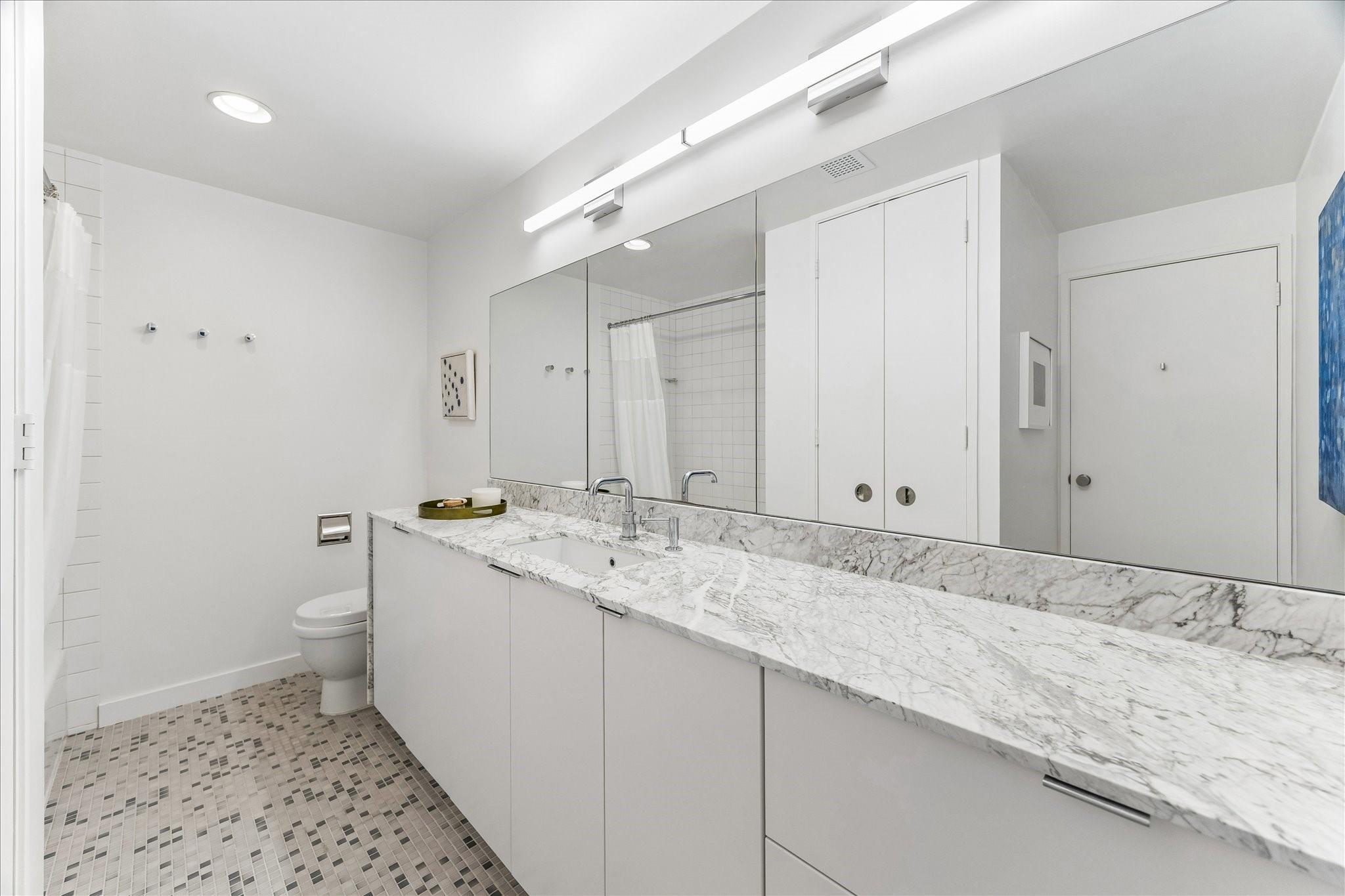 Fully renovated to the studs in 2019, this exceptional 1-bedroom, 1-bath residence at sought-after 5000 Montrose at the Museum blends modern design with refined functionality. Upgrades include new electrical and plumbing, dimmable commercial-grade lighting, and white oak hardwood floors with a low sheen finish. The kitchen and bath feature white marble surfaces, with mosaic tile flooring and a new tub in the bath. Thoughtfully designed with a built-in office workstation and gallery-style layout, the space offers a minimalist aesthetic with expansive wall space for art and a north-facing orientation. Highlights include solid core doors with cast stainless hardware, a walk-in closet, European-style storage drawers and extra deep stainless sink in the kitchen, custom air condition registers, an Italian porcelain sink in the bathroom, a stacked washer/dryer, a wifi-enabled Nest thermostat, and sweeping views from the wall to wall windows and retiled balcony.